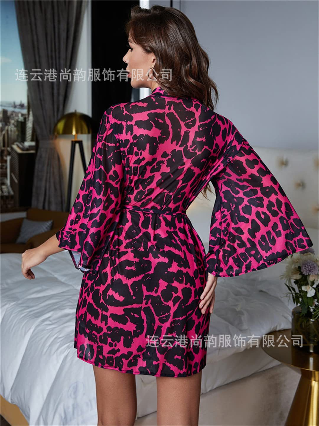 여름 여성 크로스보더 패션 홈웨어, 야외에서 착용 가능한 편안한 잠옷, 유럽 및 미국 여성의 레오파드 프린트 잠옷, 가벼운 럭셔리스토어 가기