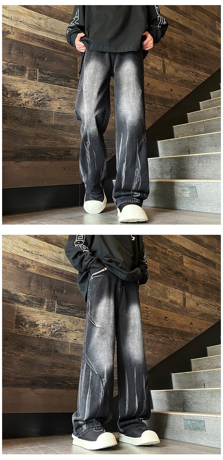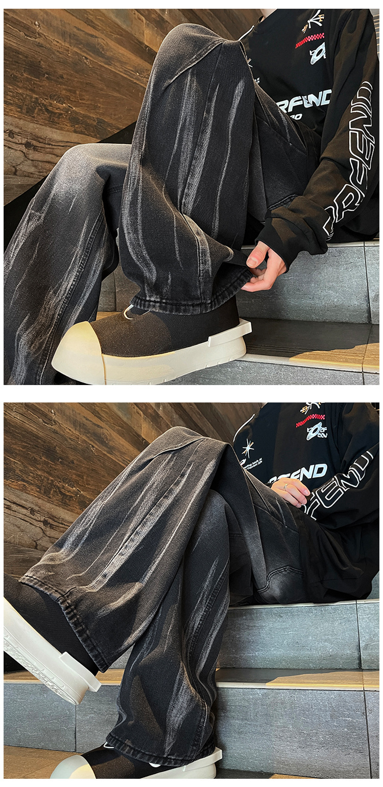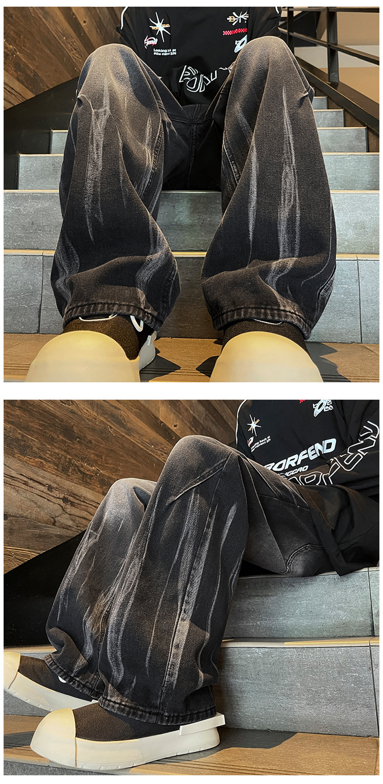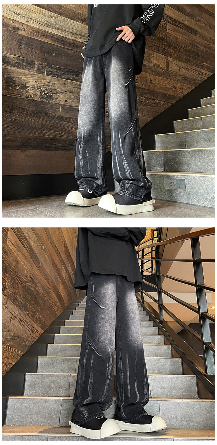 아메리칸 스타일 하이 스트리트 HIPHOP 바지 트렌디 브랜드 디자인 센스 타이 다이 그라디언트 와이드 레그 팬츠 남성용 루즈 스트레이트 청바지스토어 가기