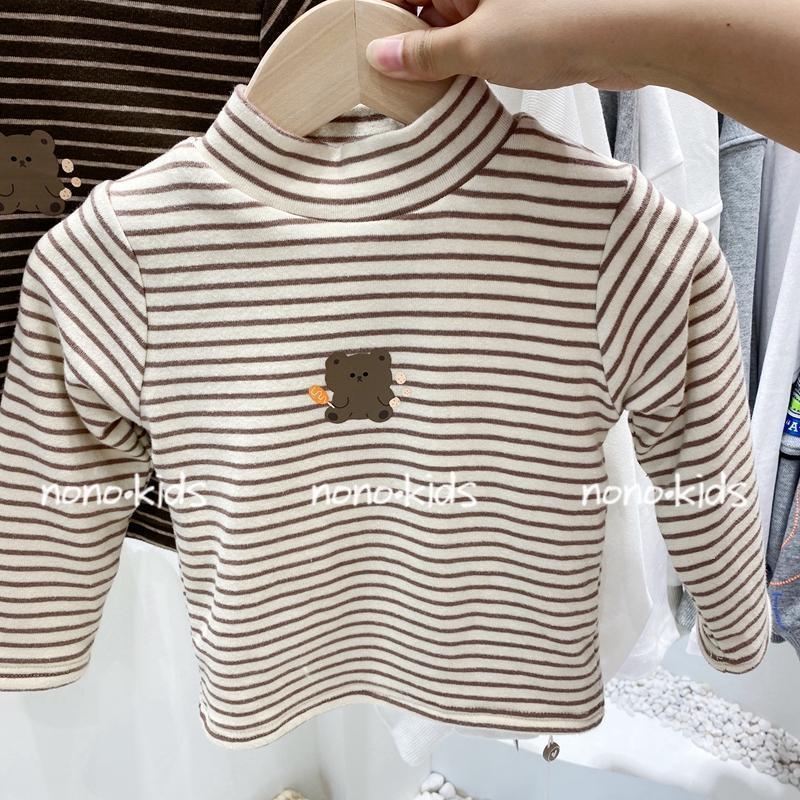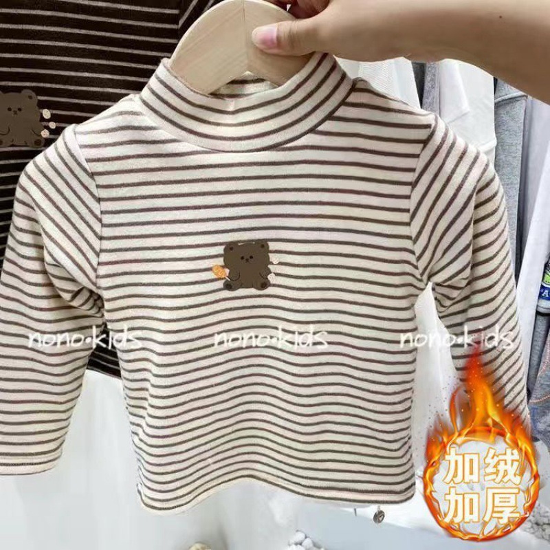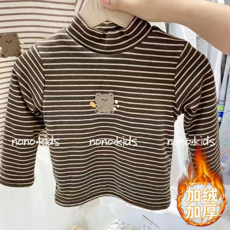 소년 소녀 가을과 겨울 아기의 기모 기지 셔츠 어린이 반 높이 칼라 티셔츠 두꺼운 따뜻한 탑 웨스턴 스타일스토어 가기