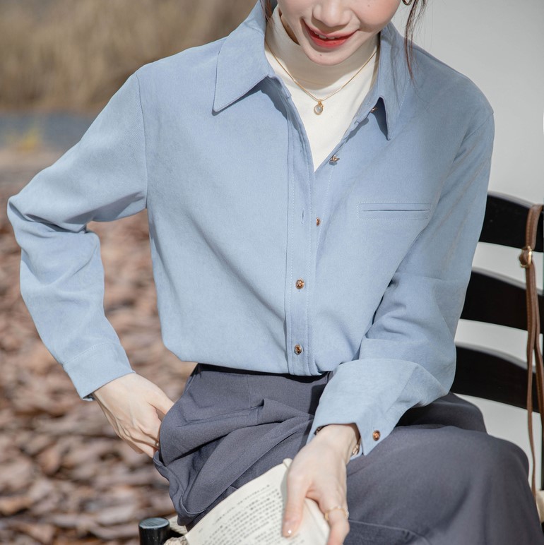 두꺼운 샌딩 셔츠 여성의 가을 및 겨울 프로 올 매치 스택 긴 소매 탑 디자인 틈새 셔츠 재킷