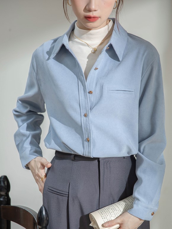 두꺼운 샌딩 셔츠 여성의 가을 및 겨울 프로 올 매치 스택 긴 소매 탑 디자인 틈새 셔츠 재킷스토어 가기