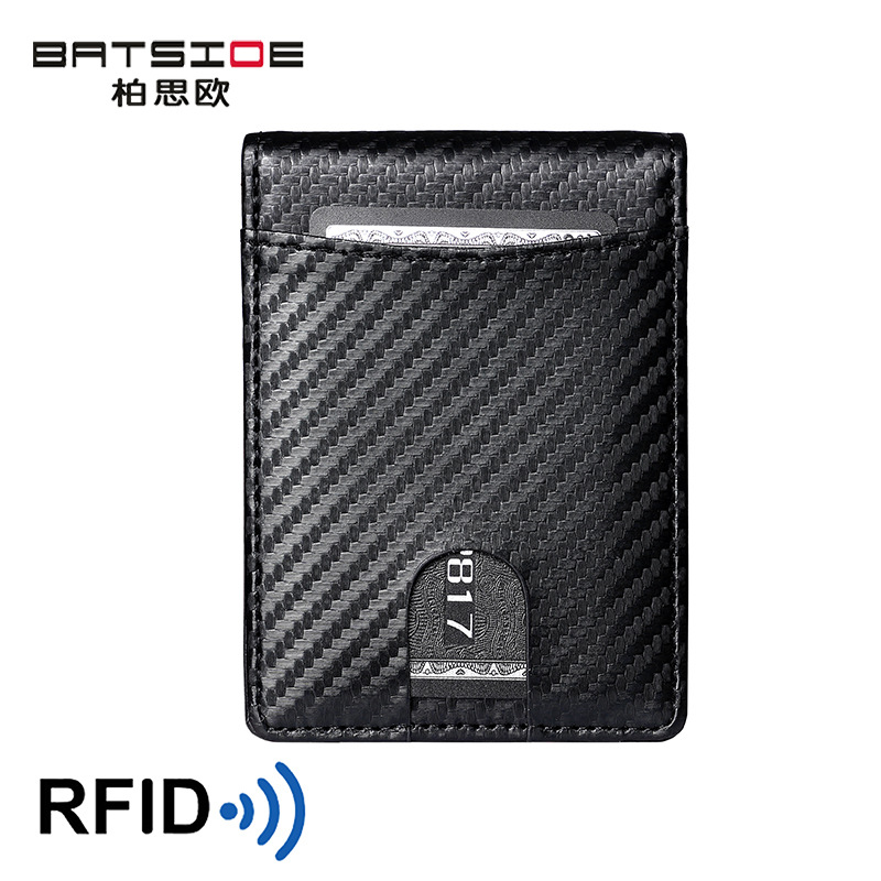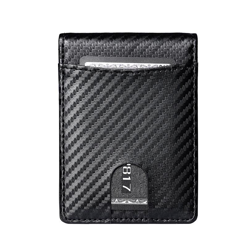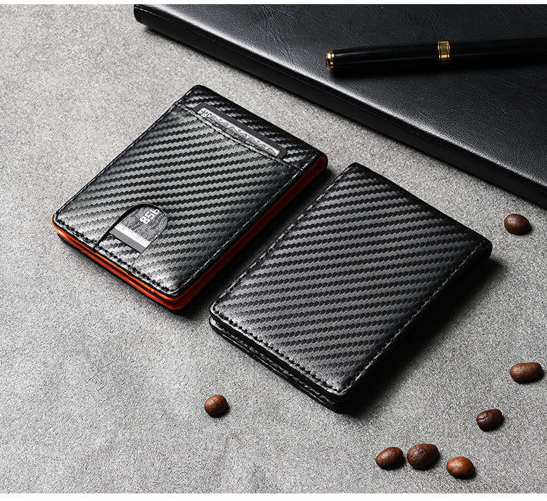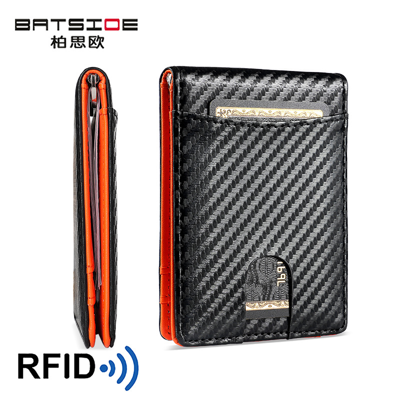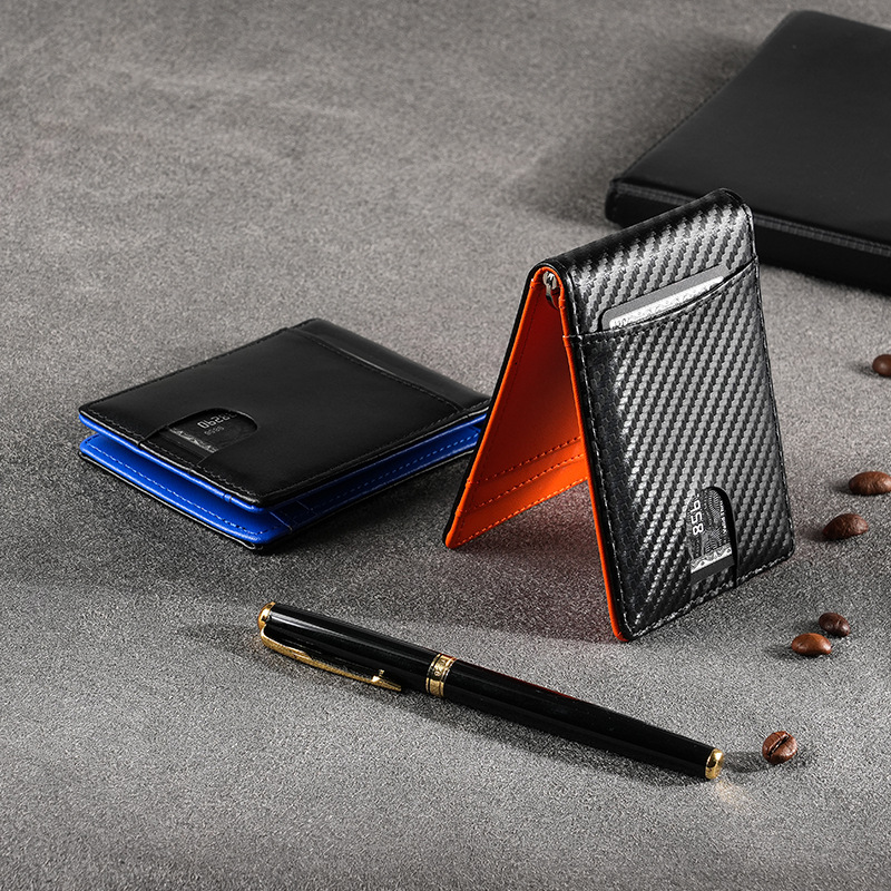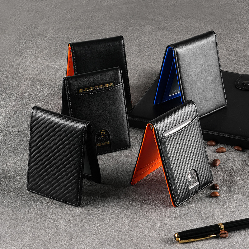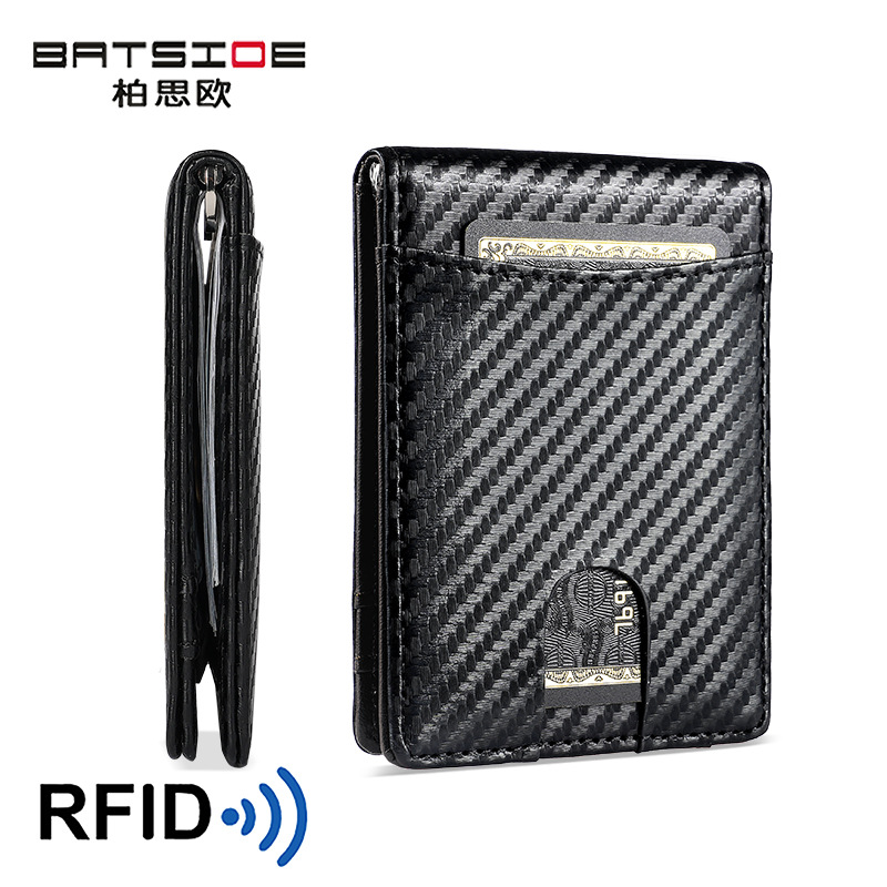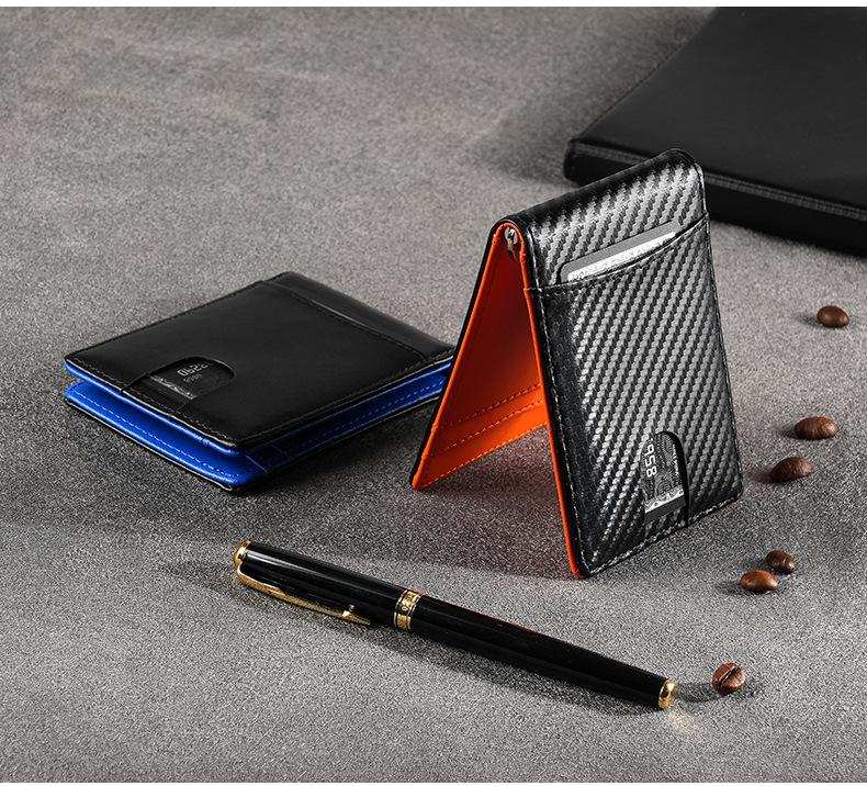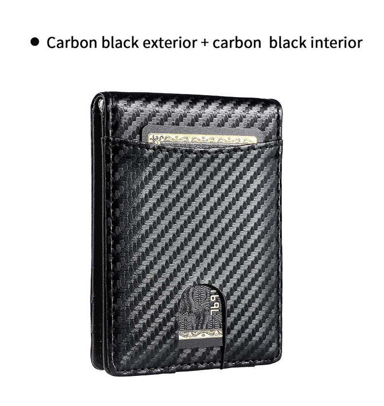 전체 마이크로 화이버 가죽 뜨거운 판매 RFID 도난 방지 브러시 지갑 국경 새로운 남성 탄소 섬유 일반 패턴 골드 클립