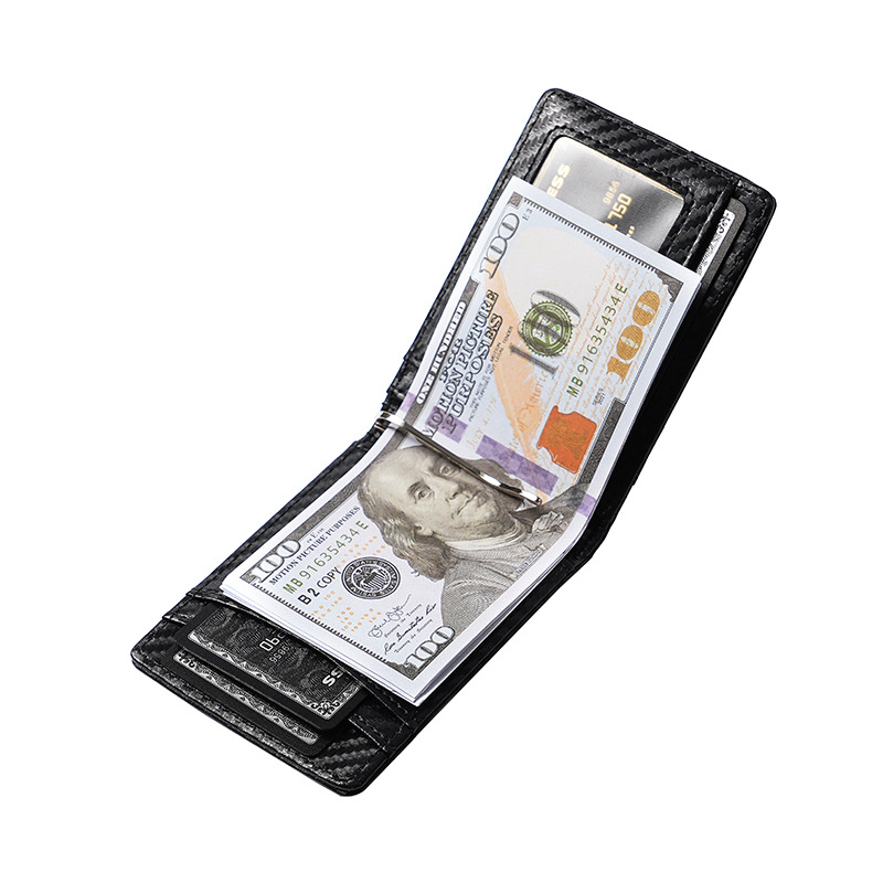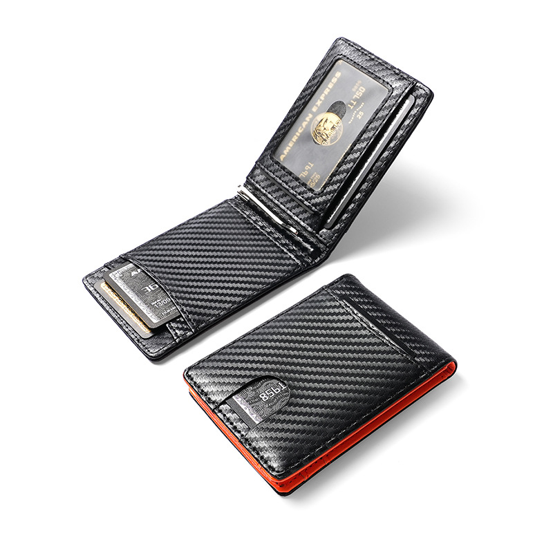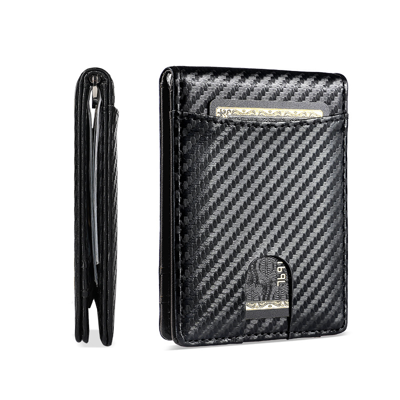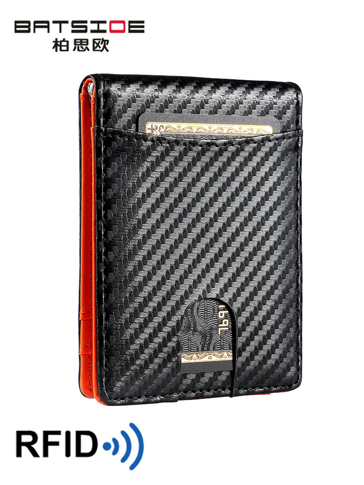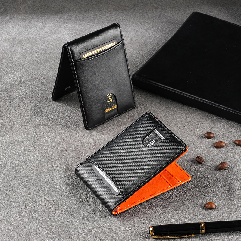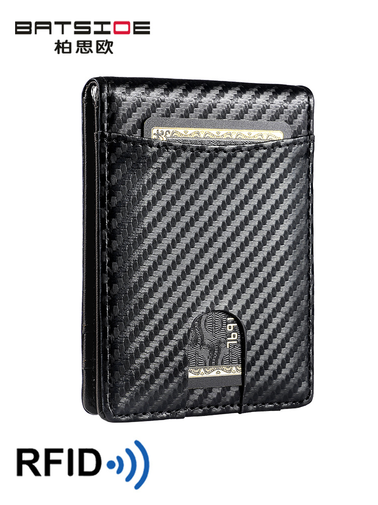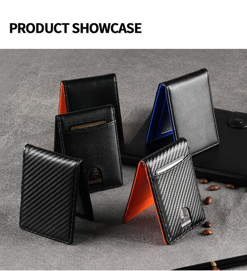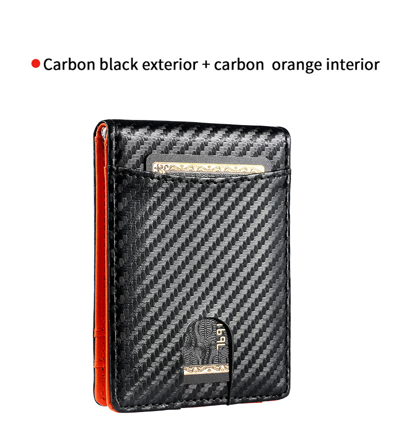 전체 마이크로 화이버 가죽 뜨거운 판매 RFID 도난 방지 브러시 지갑 국경 새로운 남성 탄소 섬유 일반 패턴 골드 클립
