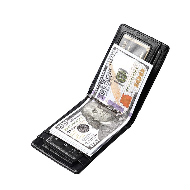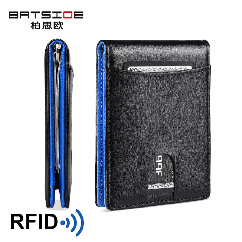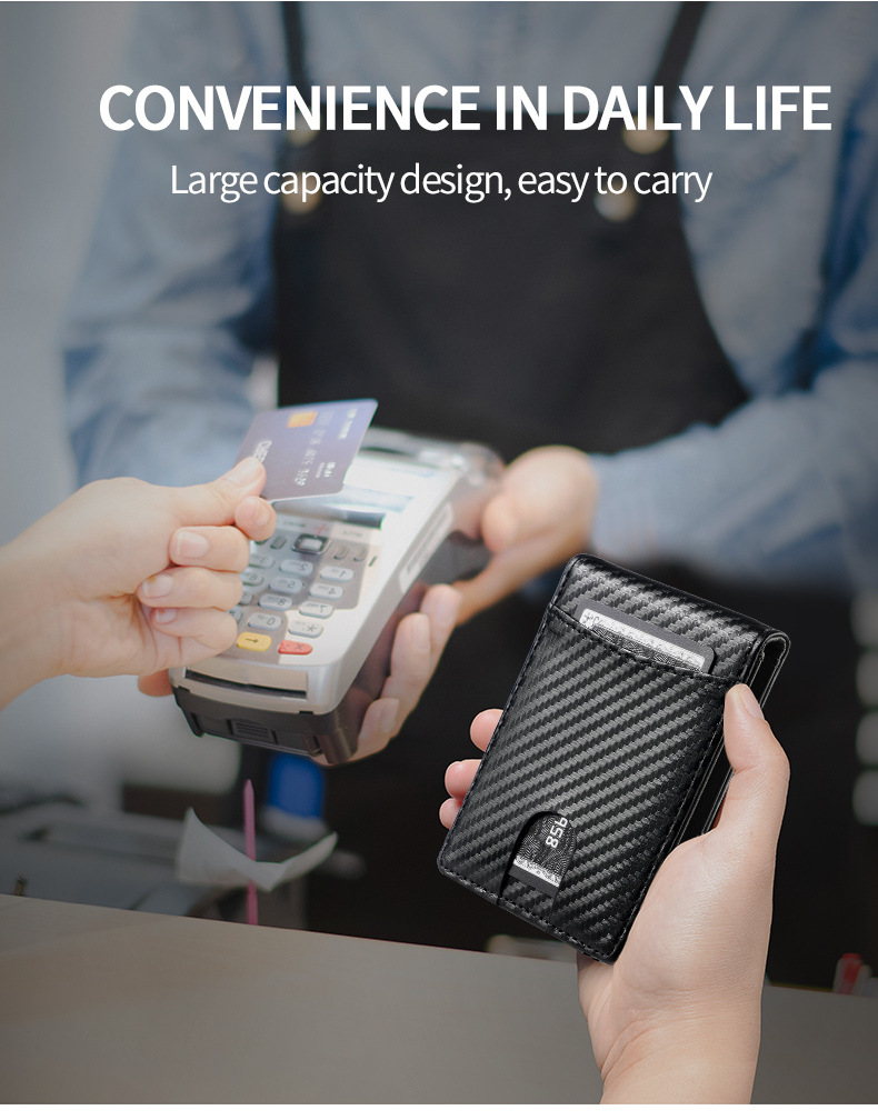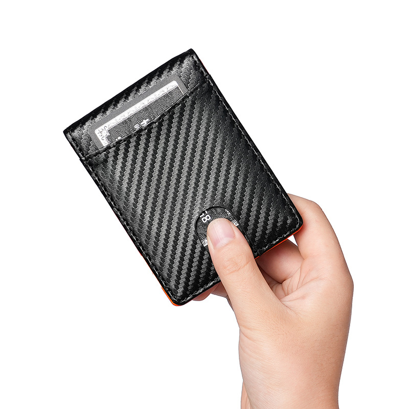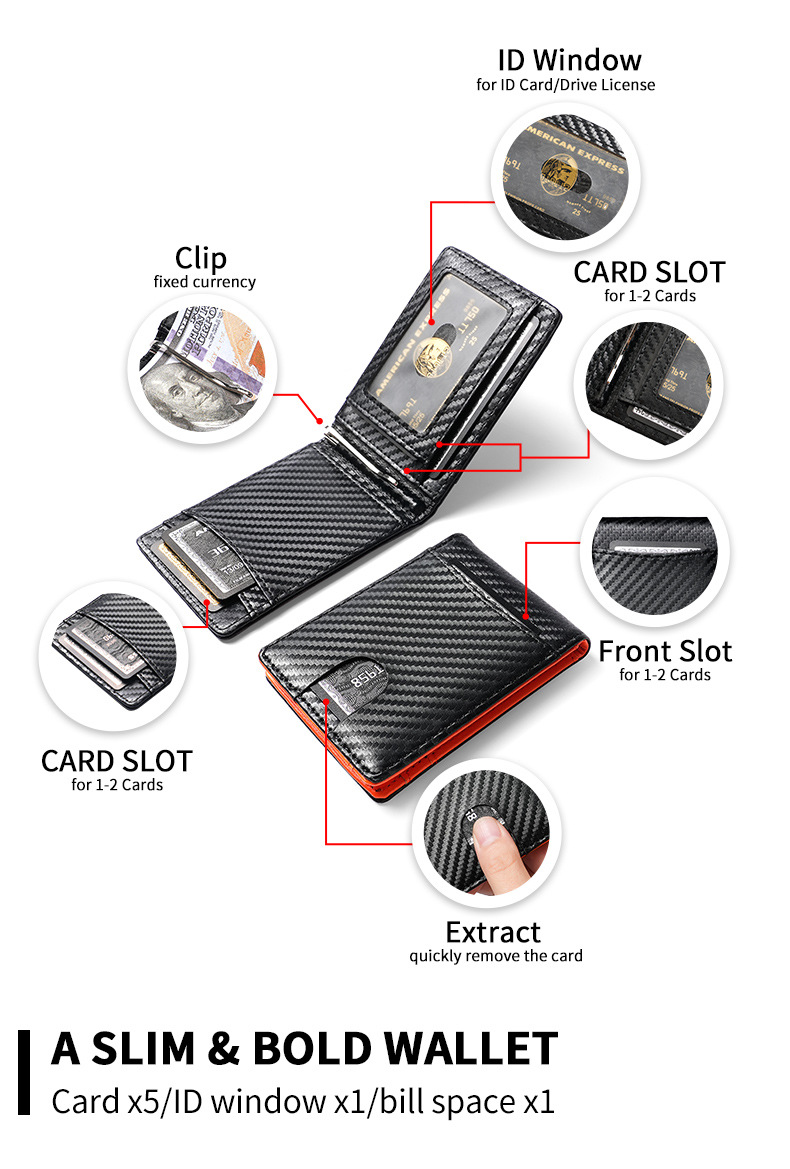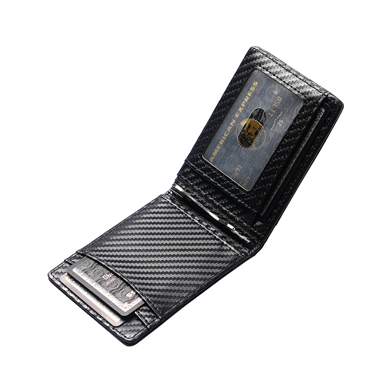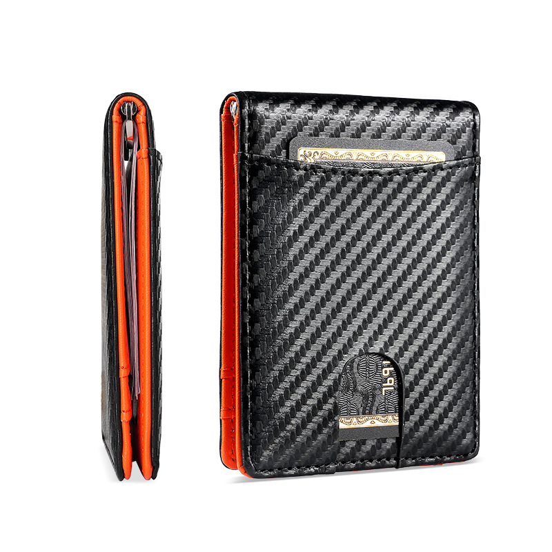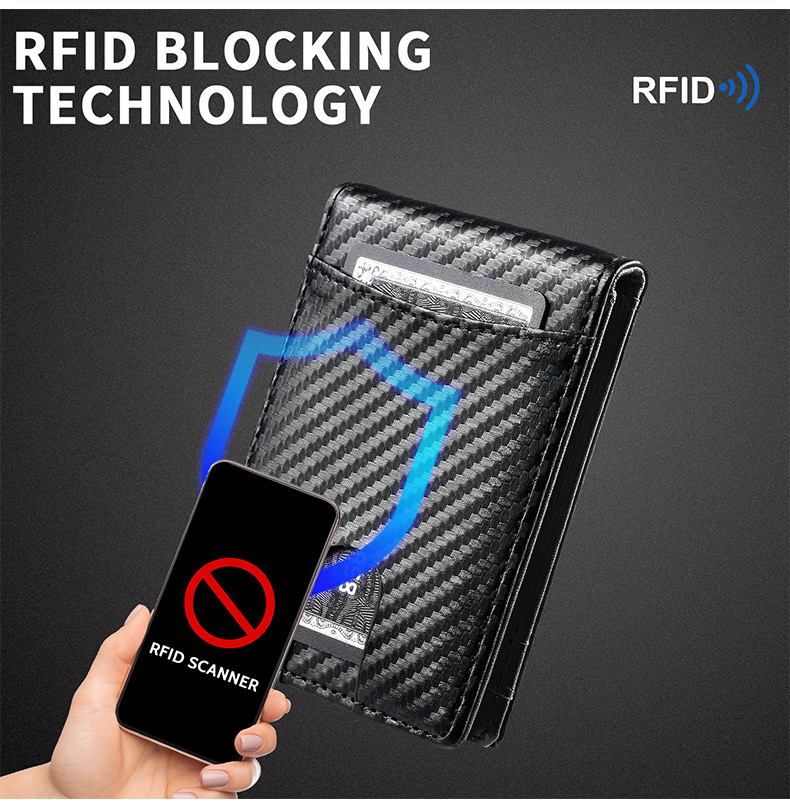전체 마이크로 화이버 가죽 뜨거운 판매 RFID 도난 방지 브러시 지갑 국경 새로운 남성 탄소 섬유 일반 패턴 골드 클립