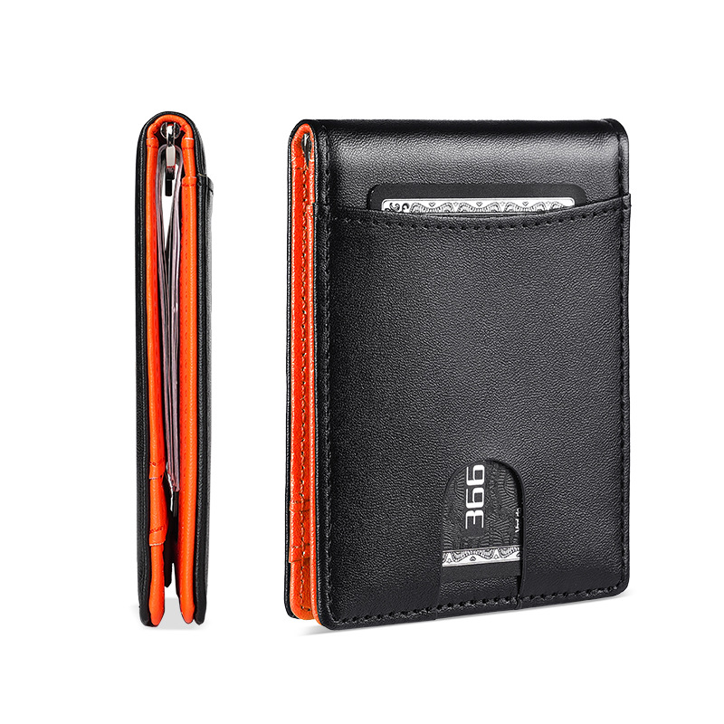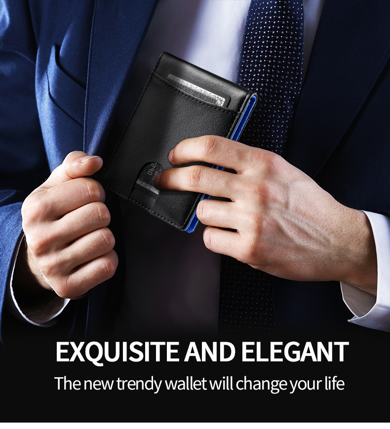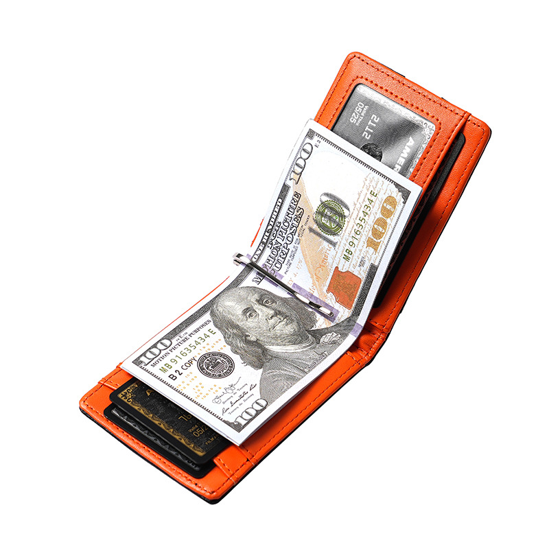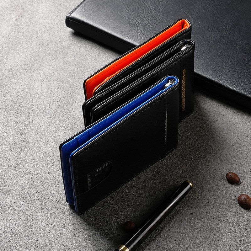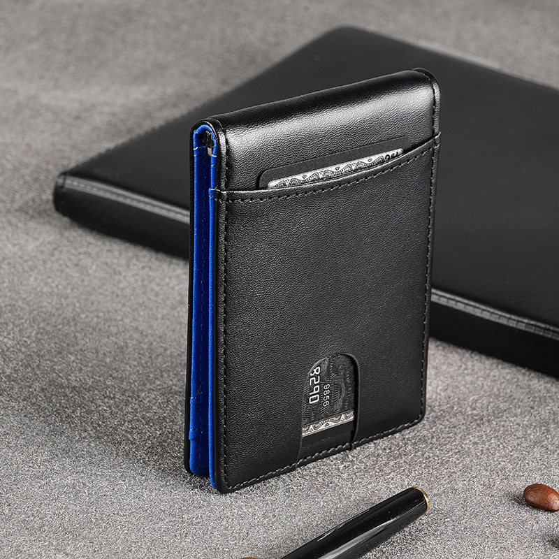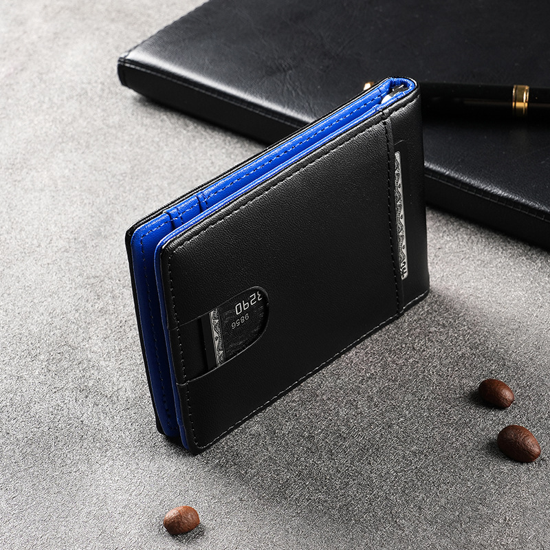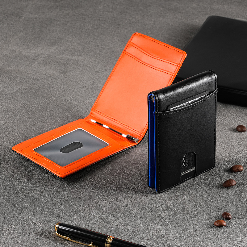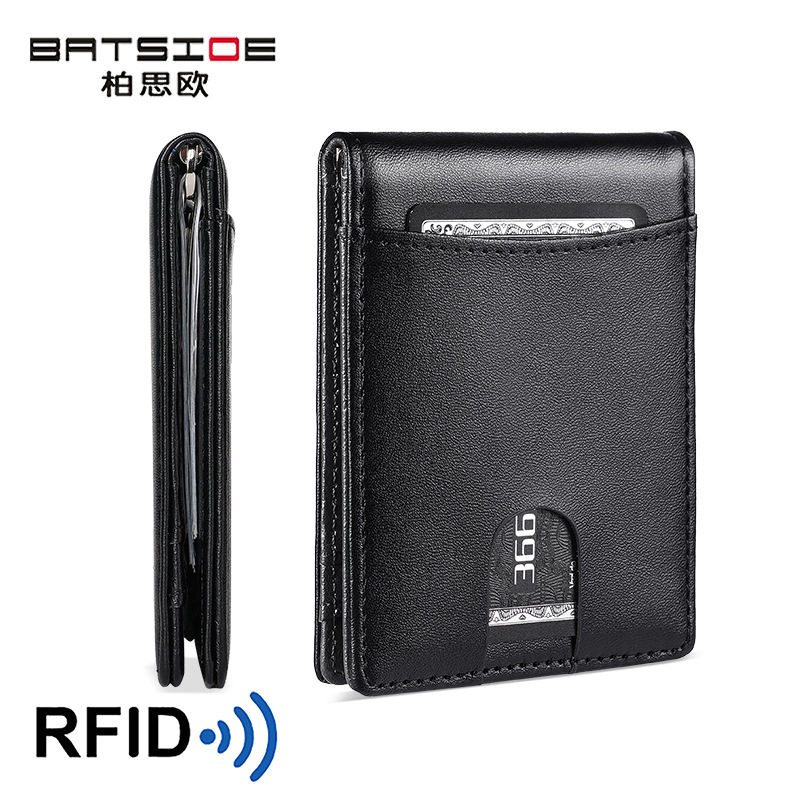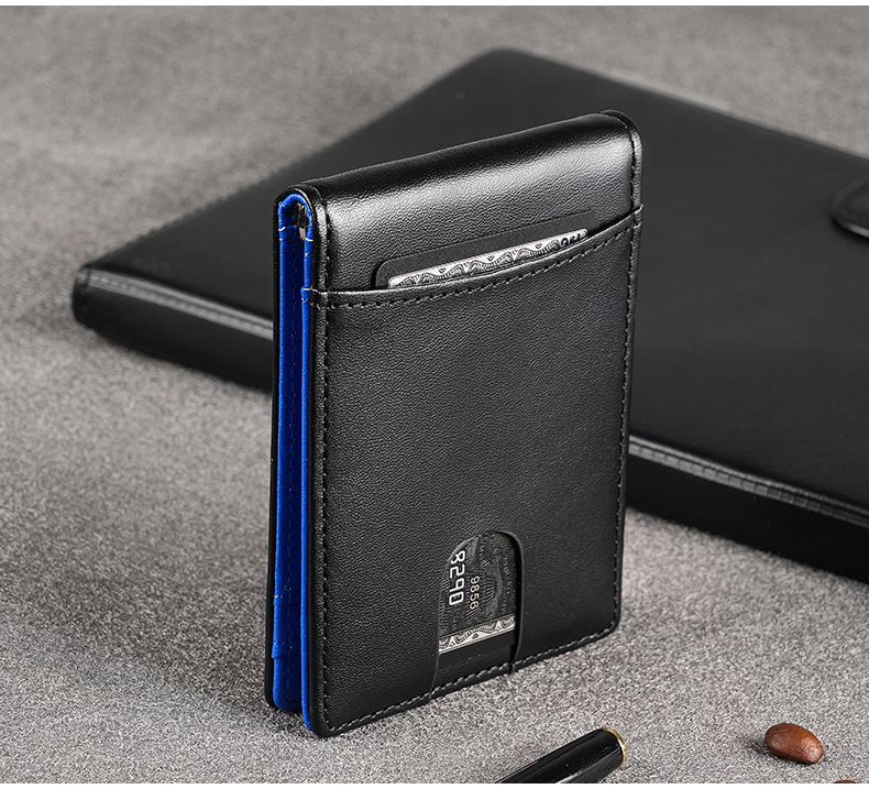 전체 마이크로 화이버 가죽 뜨거운 판매 RFID 도난 방지 브러시 지갑 국경 새로운 남성 탄소 섬유 일반 패턴 골드 클립