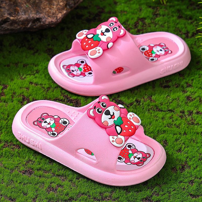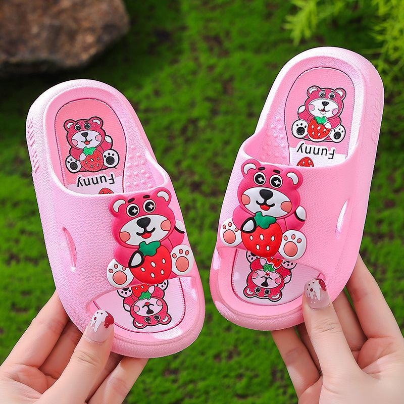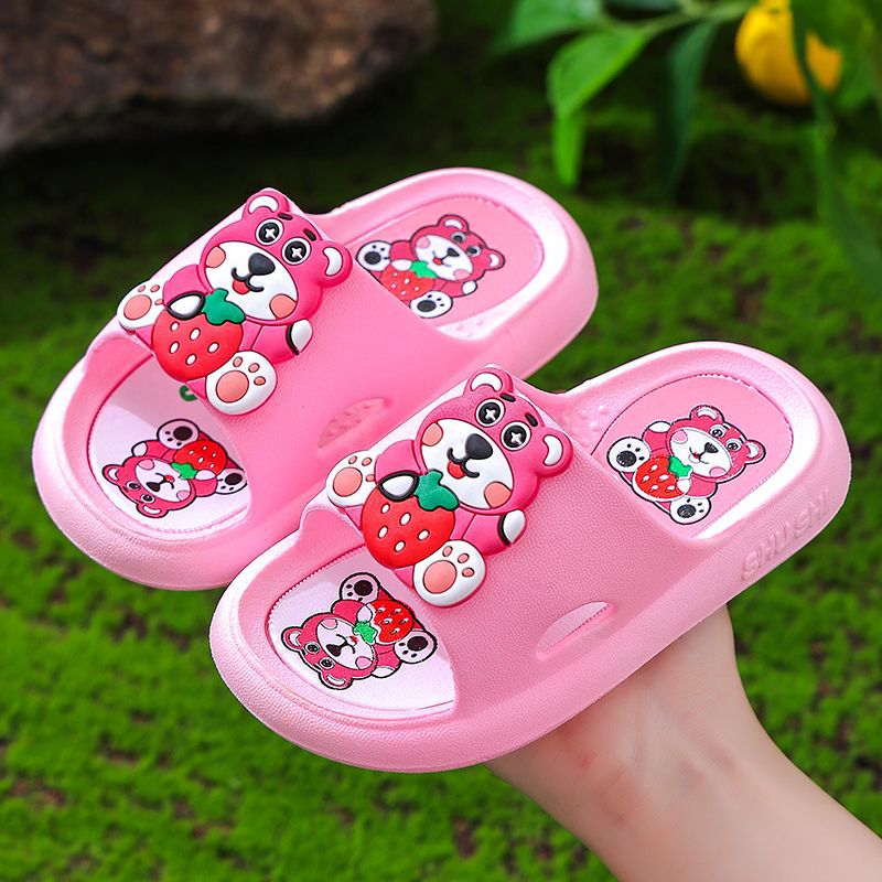 딸기 곰 어린이 슬리퍼 소녀 홈 미끄럼 방지 목욕 부드러운 소녀 소년 귀여운 아기 여름