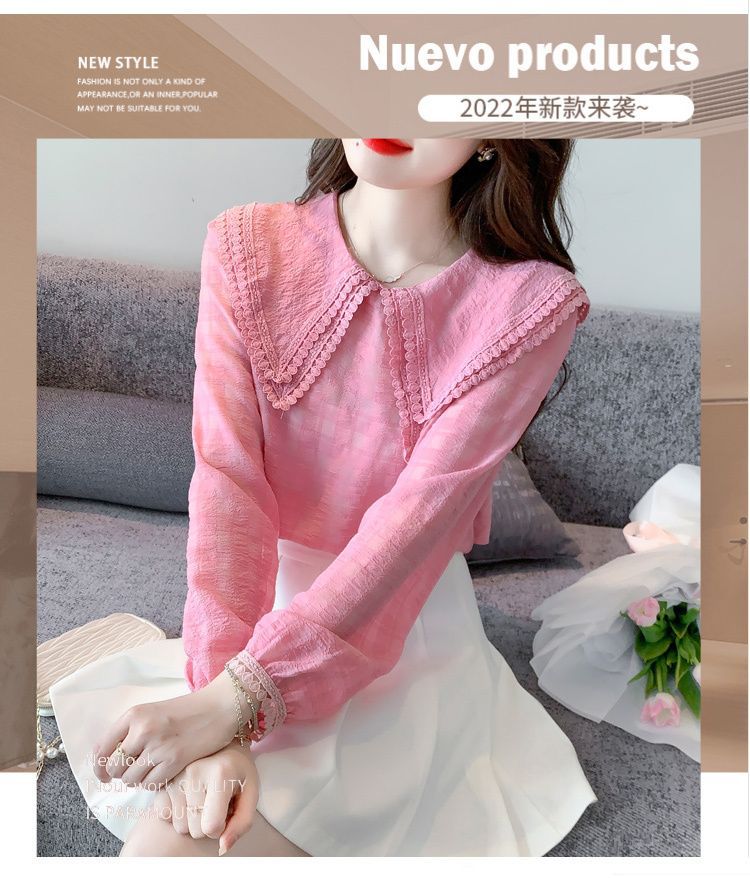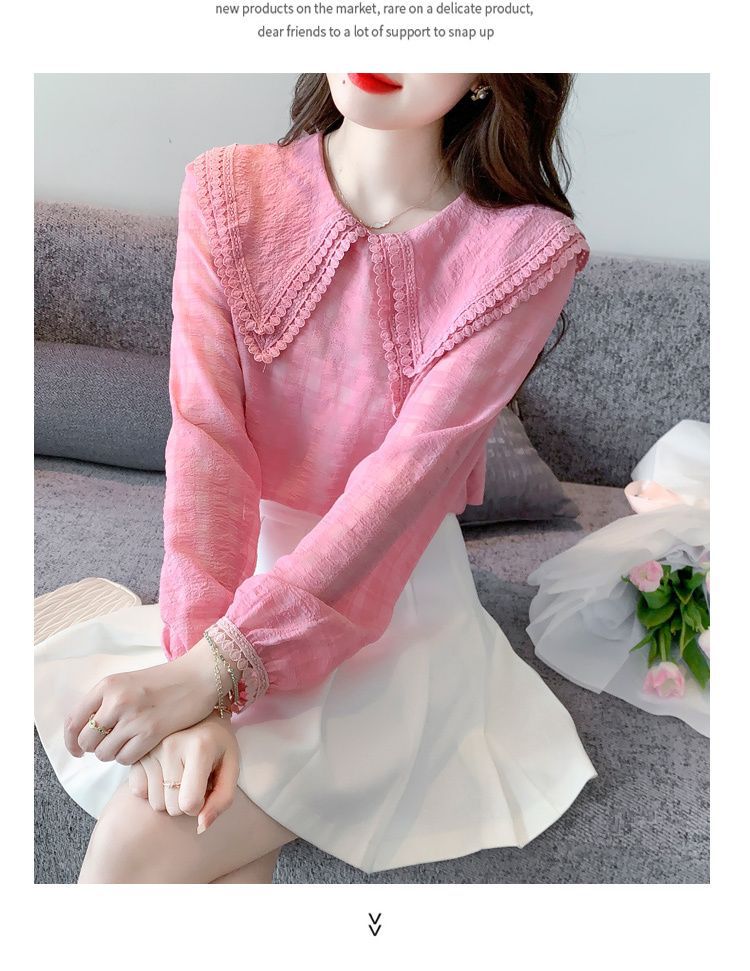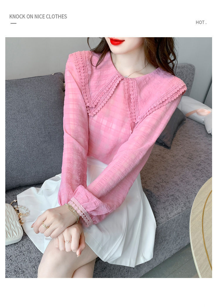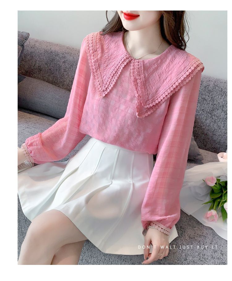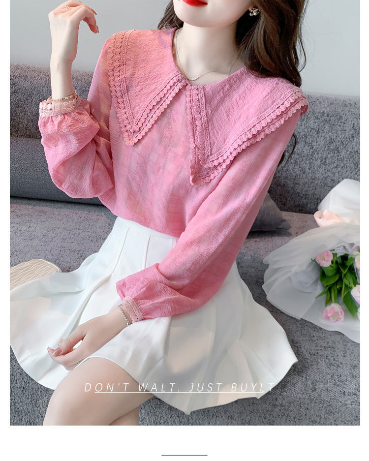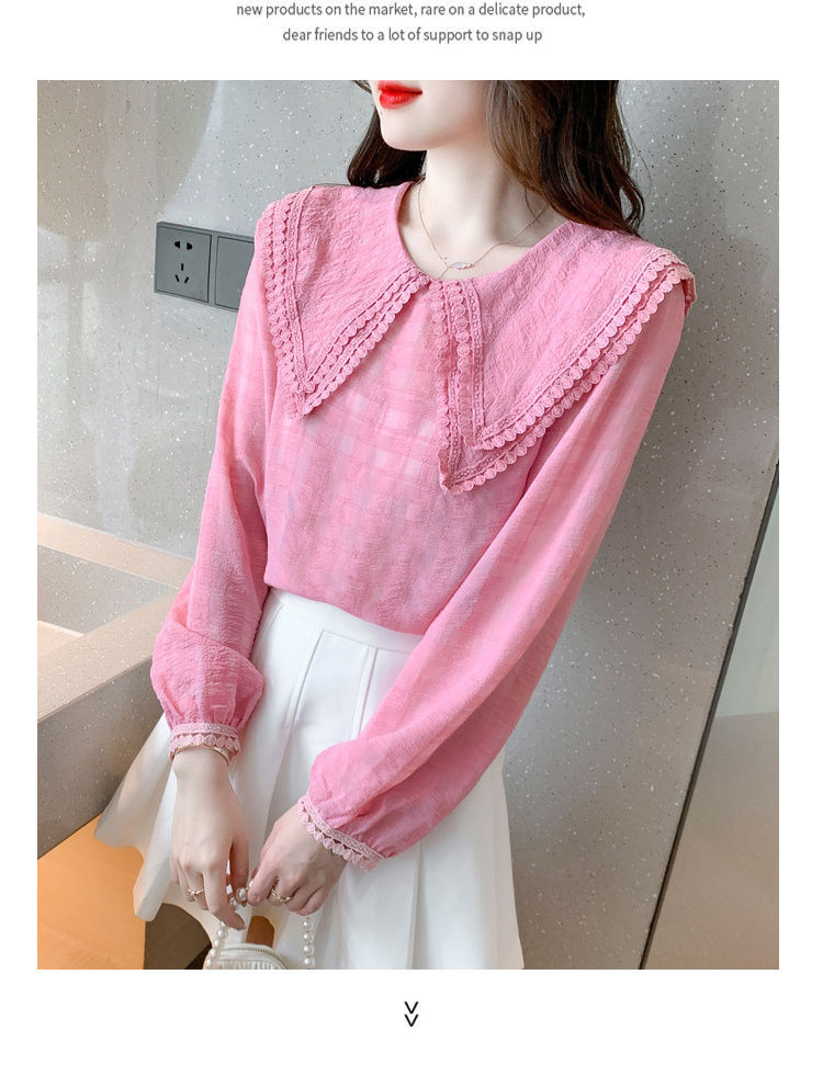 2024 가을 뉴 에이지 감소 프랑스 인형 칼라 셔츠 여성용 긴팔 우아한 쉬폰 트렌디 작은 셔츠 탑스토어 가기