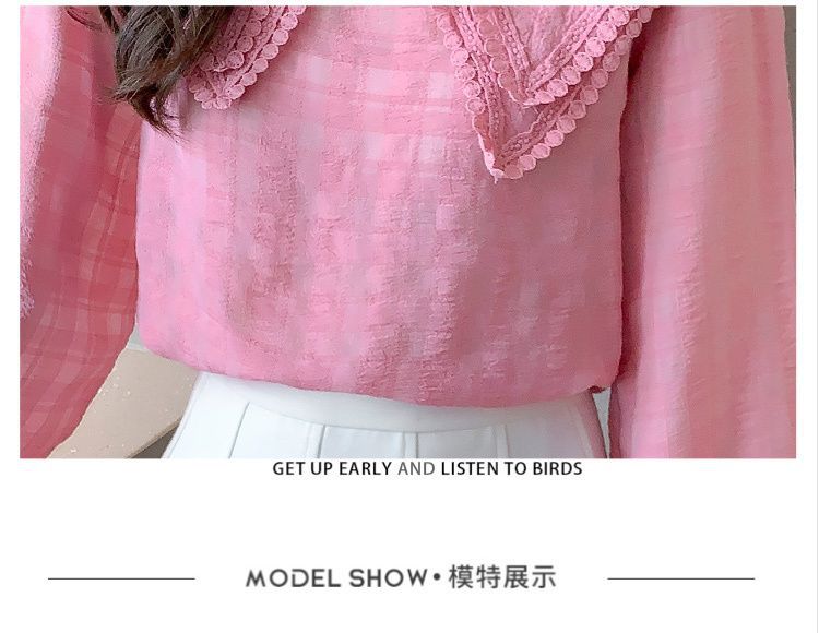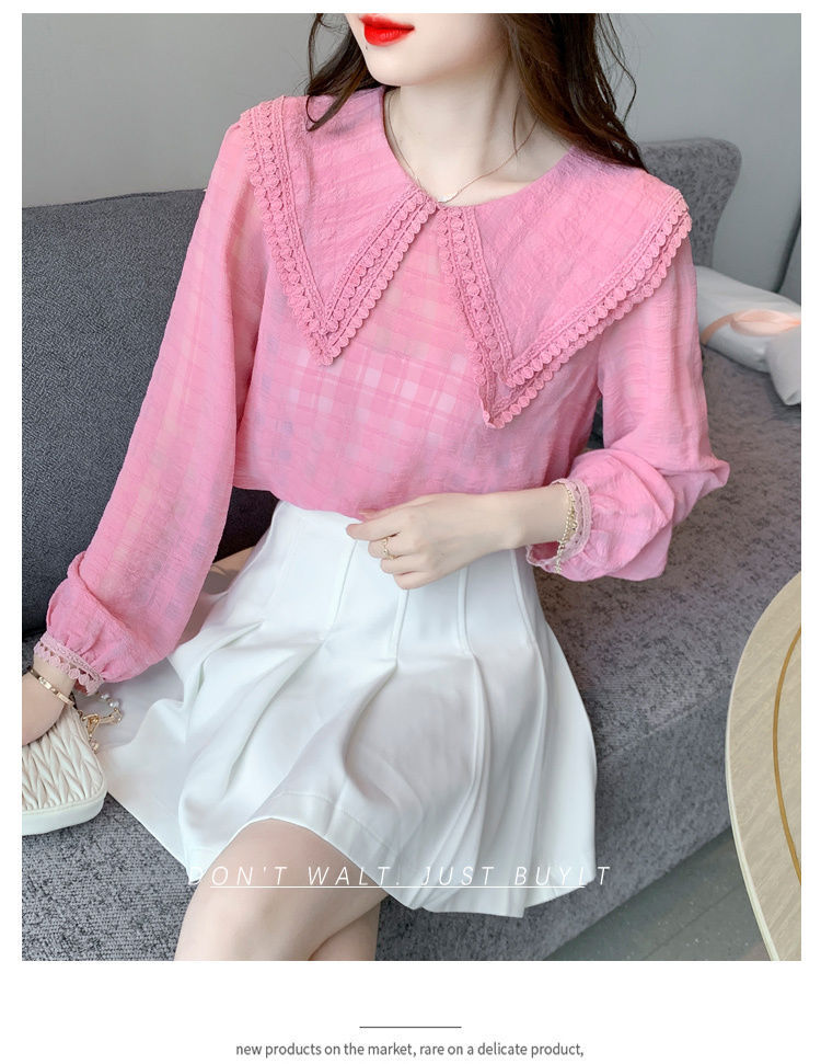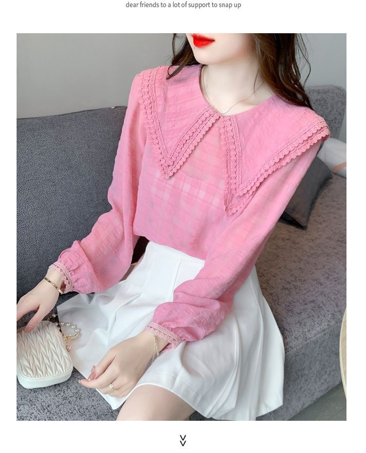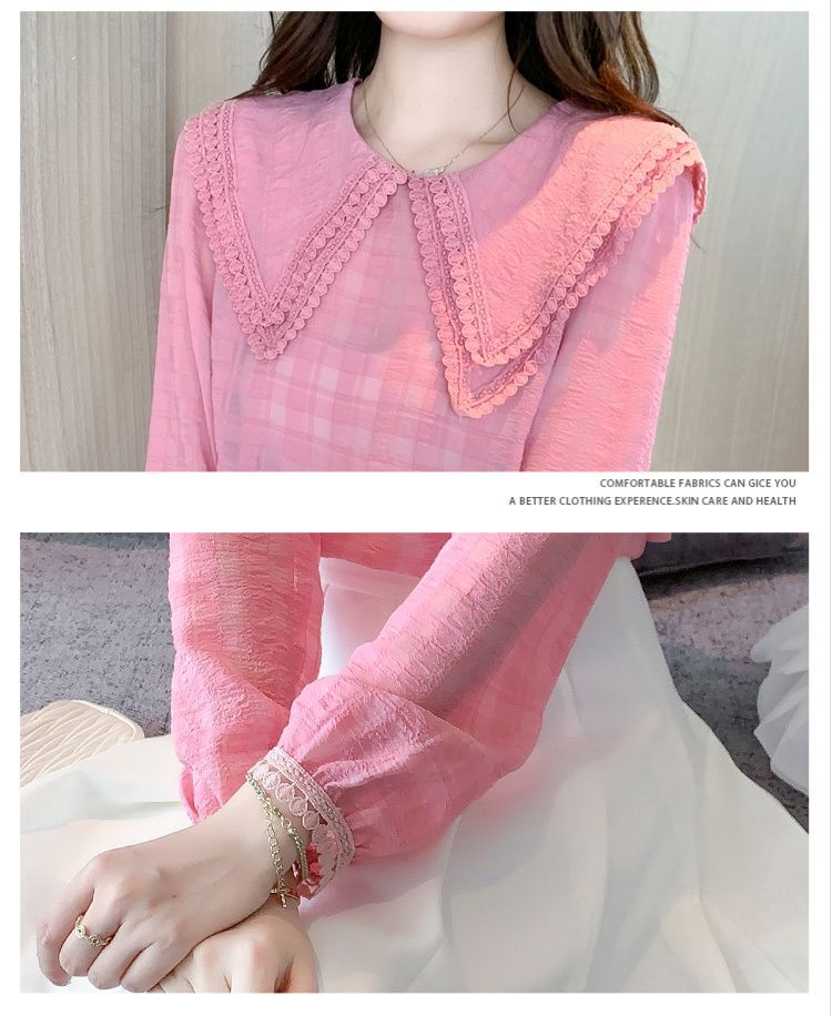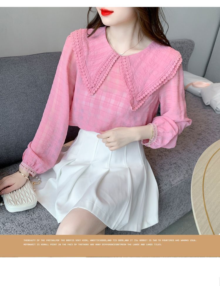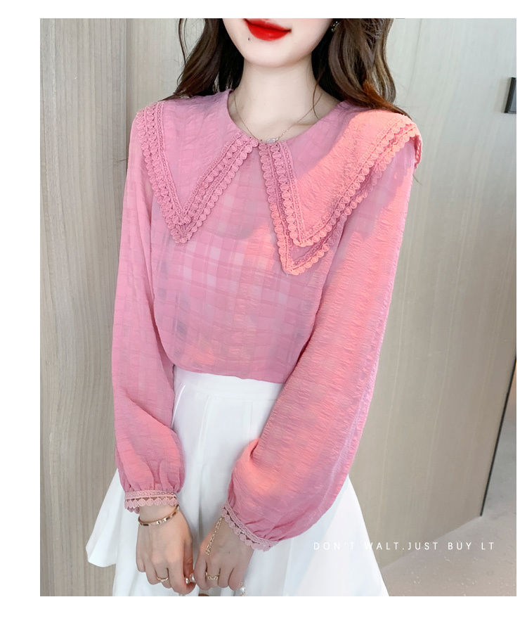2024 가을 뉴 에이지 감소 프랑스 인형 칼라 셔츠 여성용 긴팔 우아한 쉬폰 트렌디 작은 셔츠 탑스토어 가기