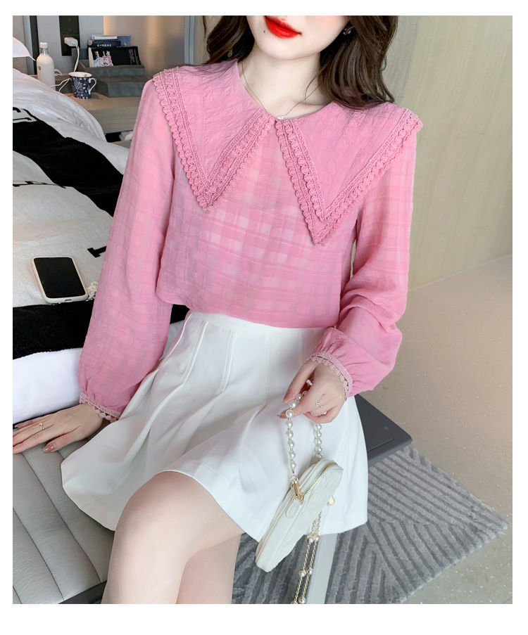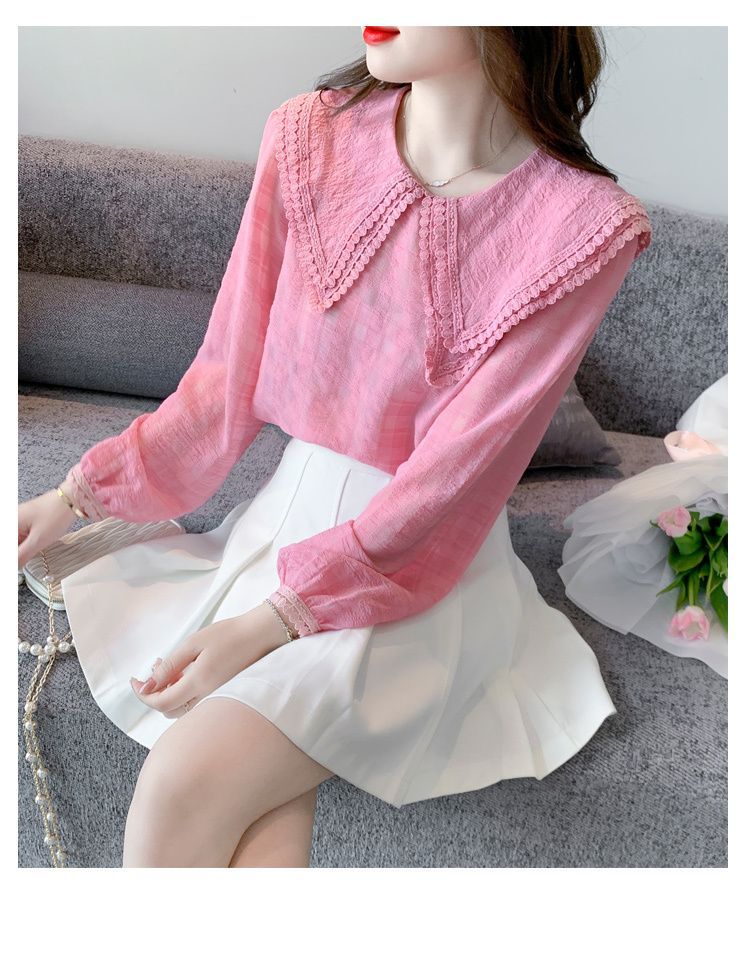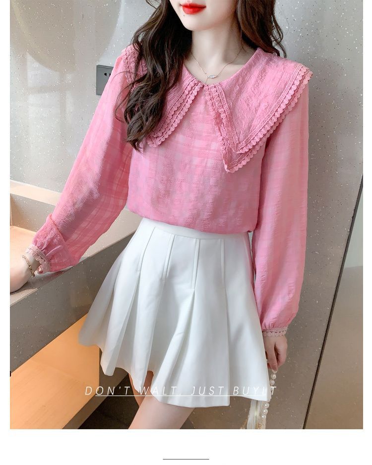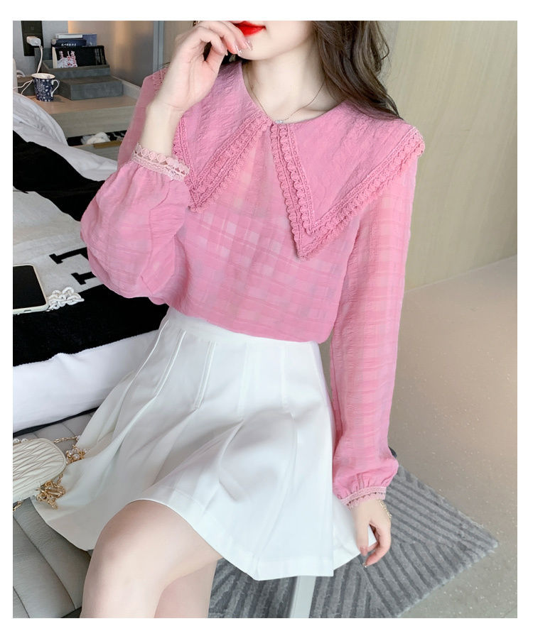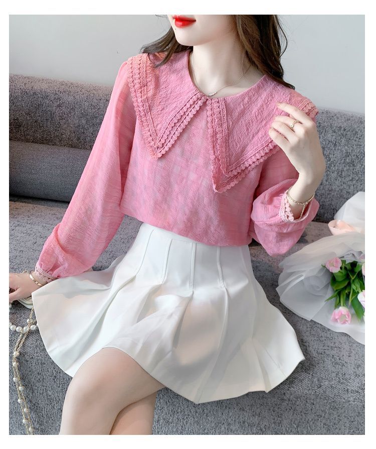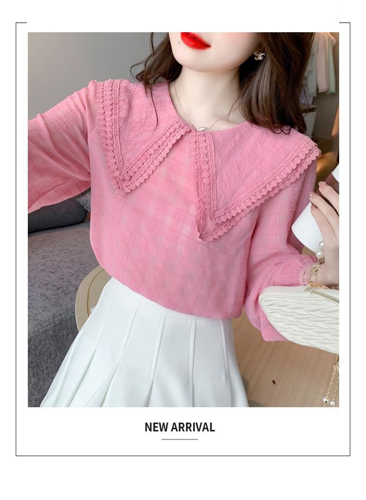 2024 가을 뉴 에이지 감소 프랑스 인형 칼라 셔츠 여성용 긴팔 우아한 쉬폰 트렌디 작은 셔츠 탑