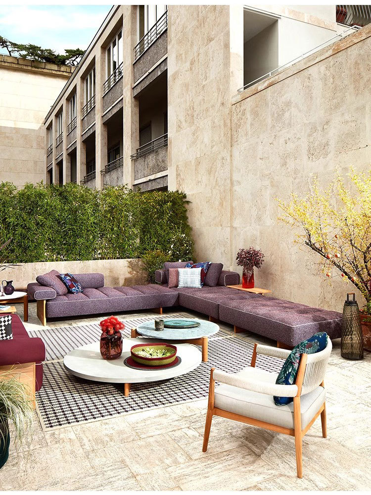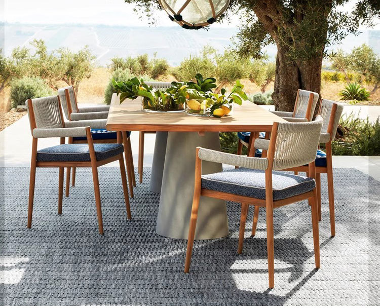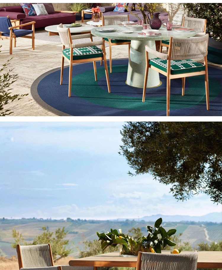 야외 식탁 및 의자 티크 짠 방수 선 스크린 대리석 테이블 등나무 의자 야외 정원 안뜰 레저 가구스토어 가기