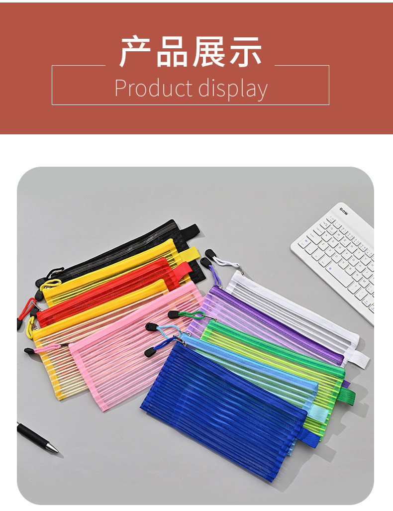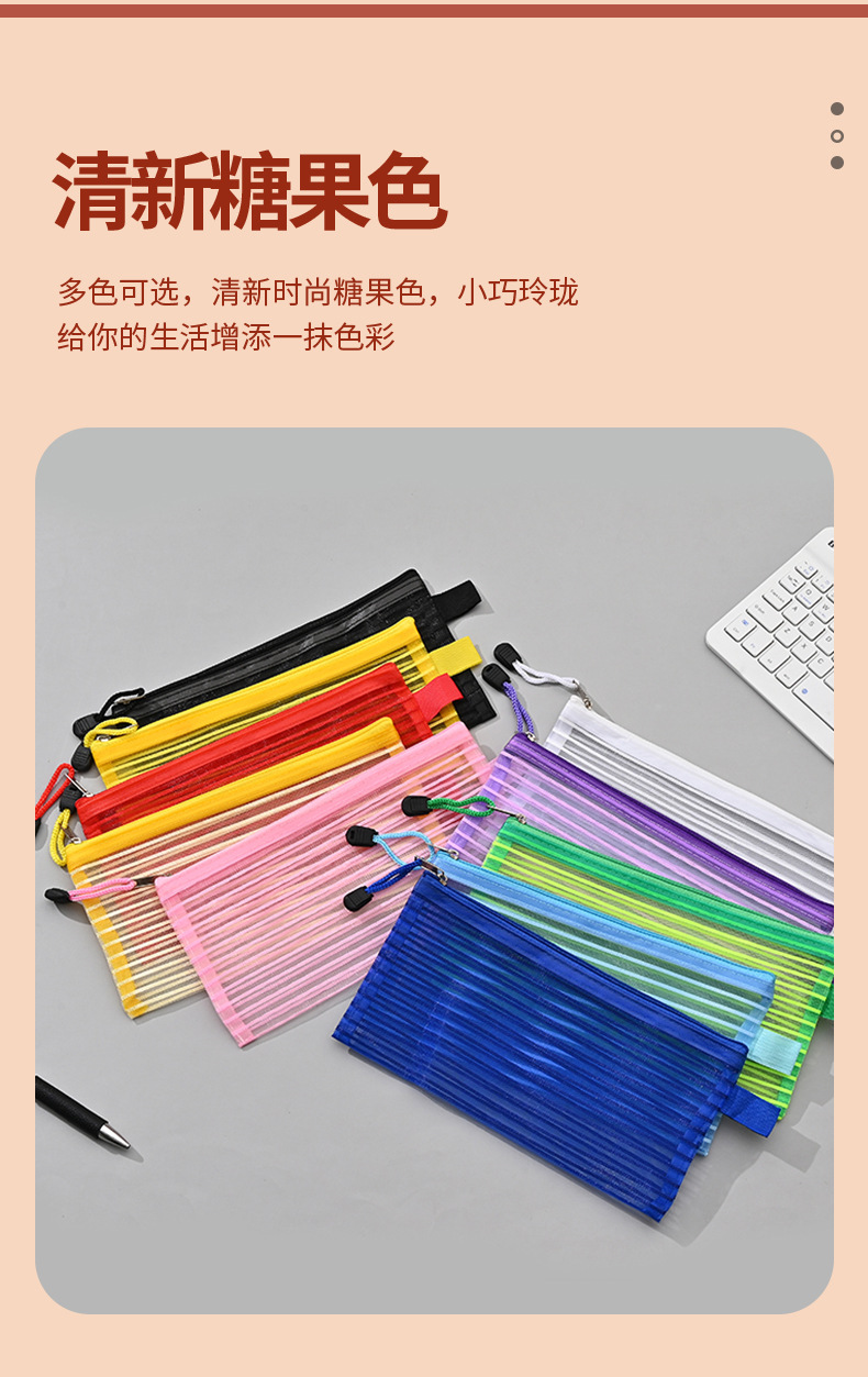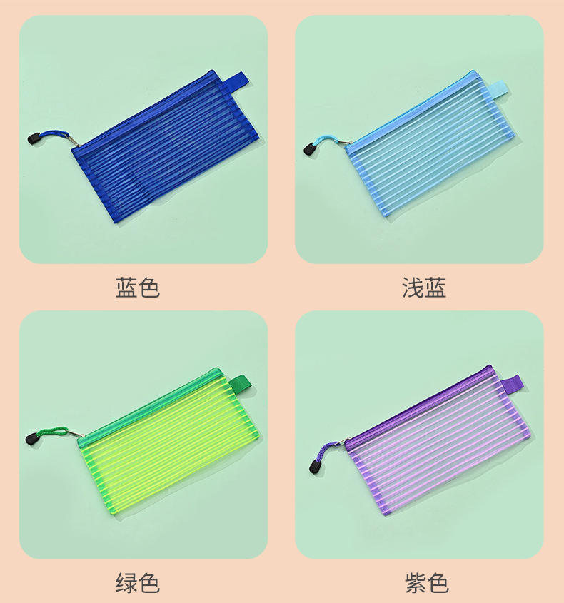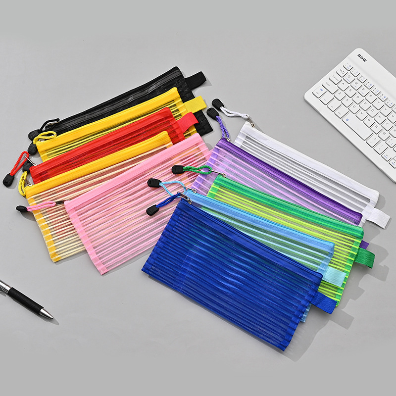 국경 간 아마존 메쉬 문구 가방 문서 가방 학생 영수증 연필 가방 보관 가방 검사 스트레이트 스트라이프 가장자리 가방스토어 가기