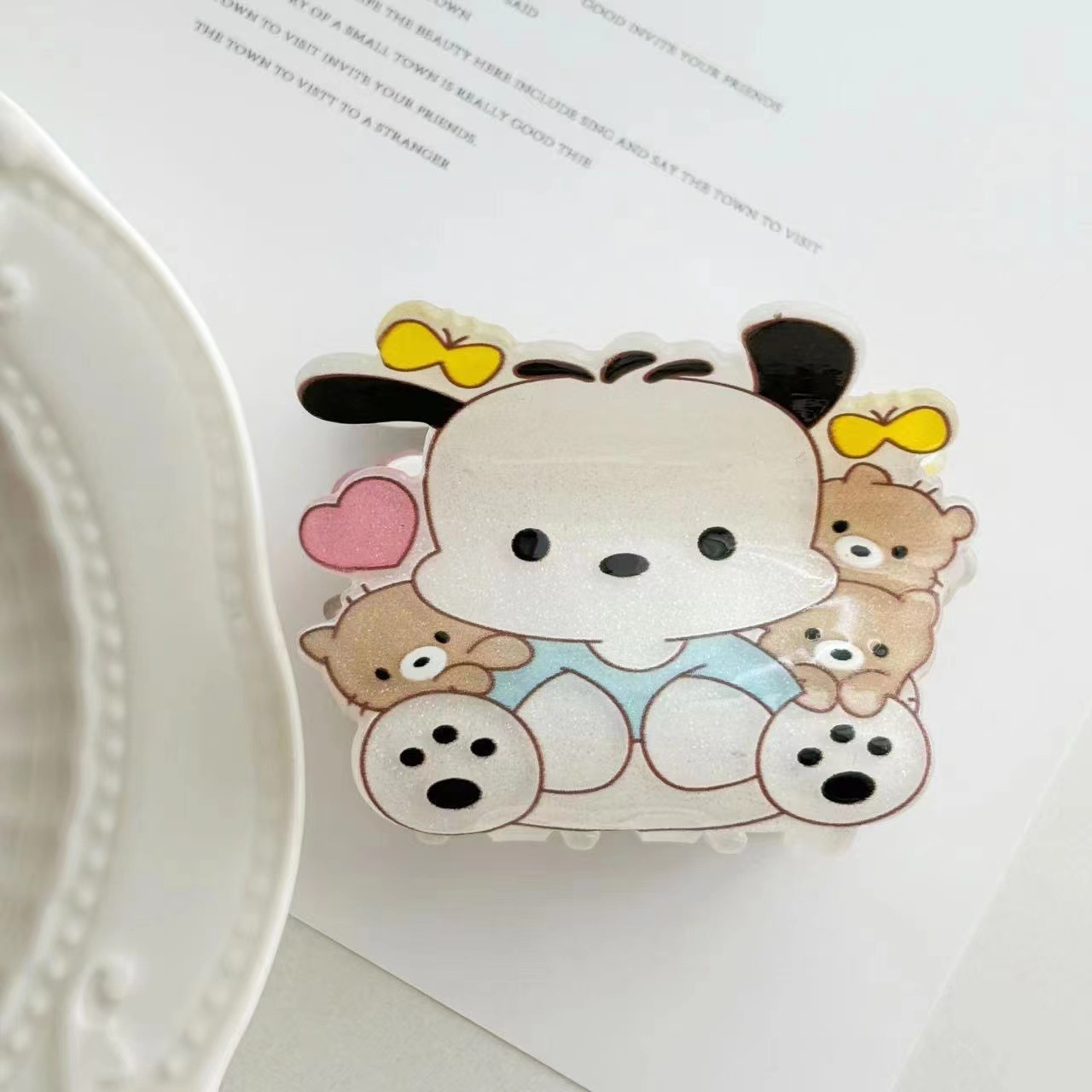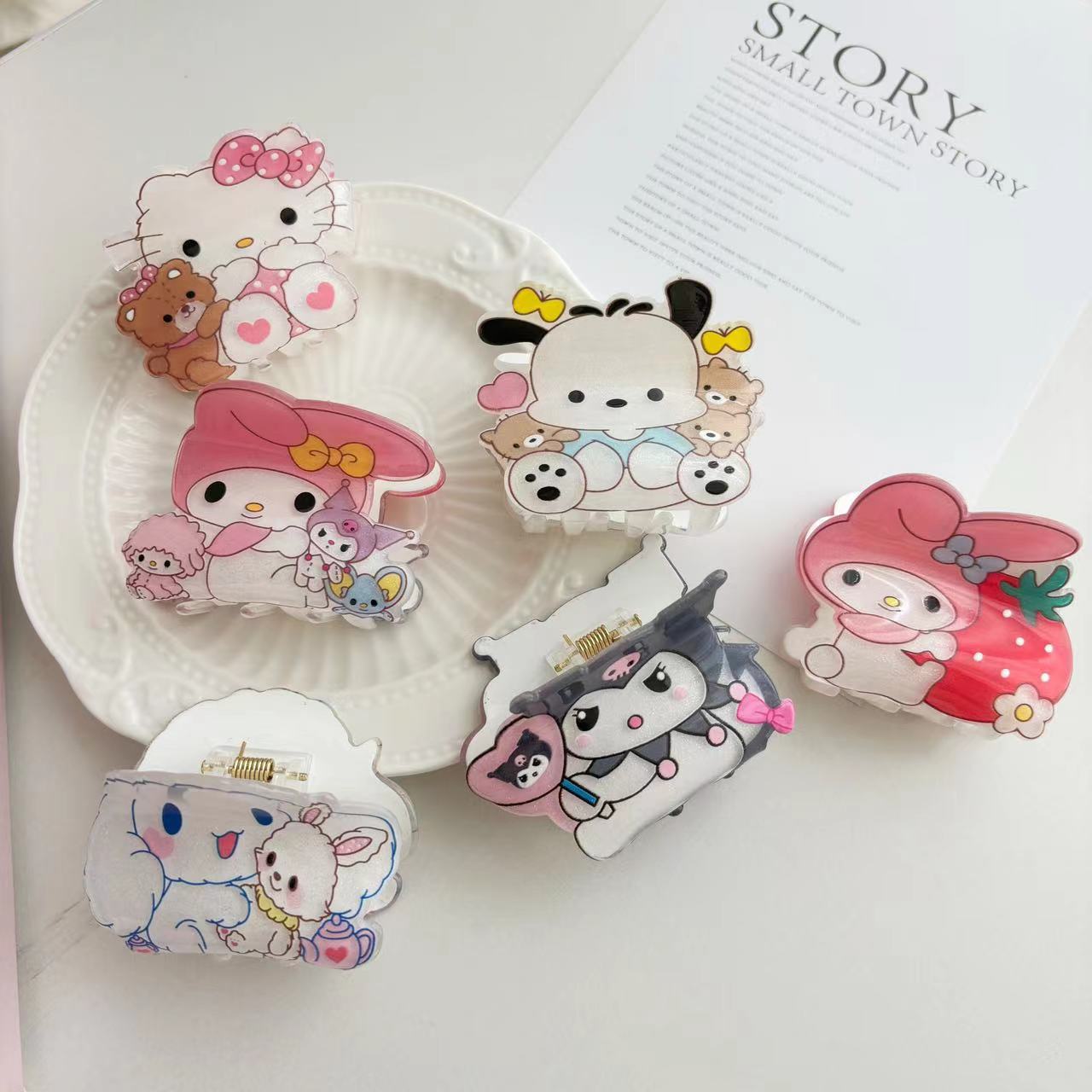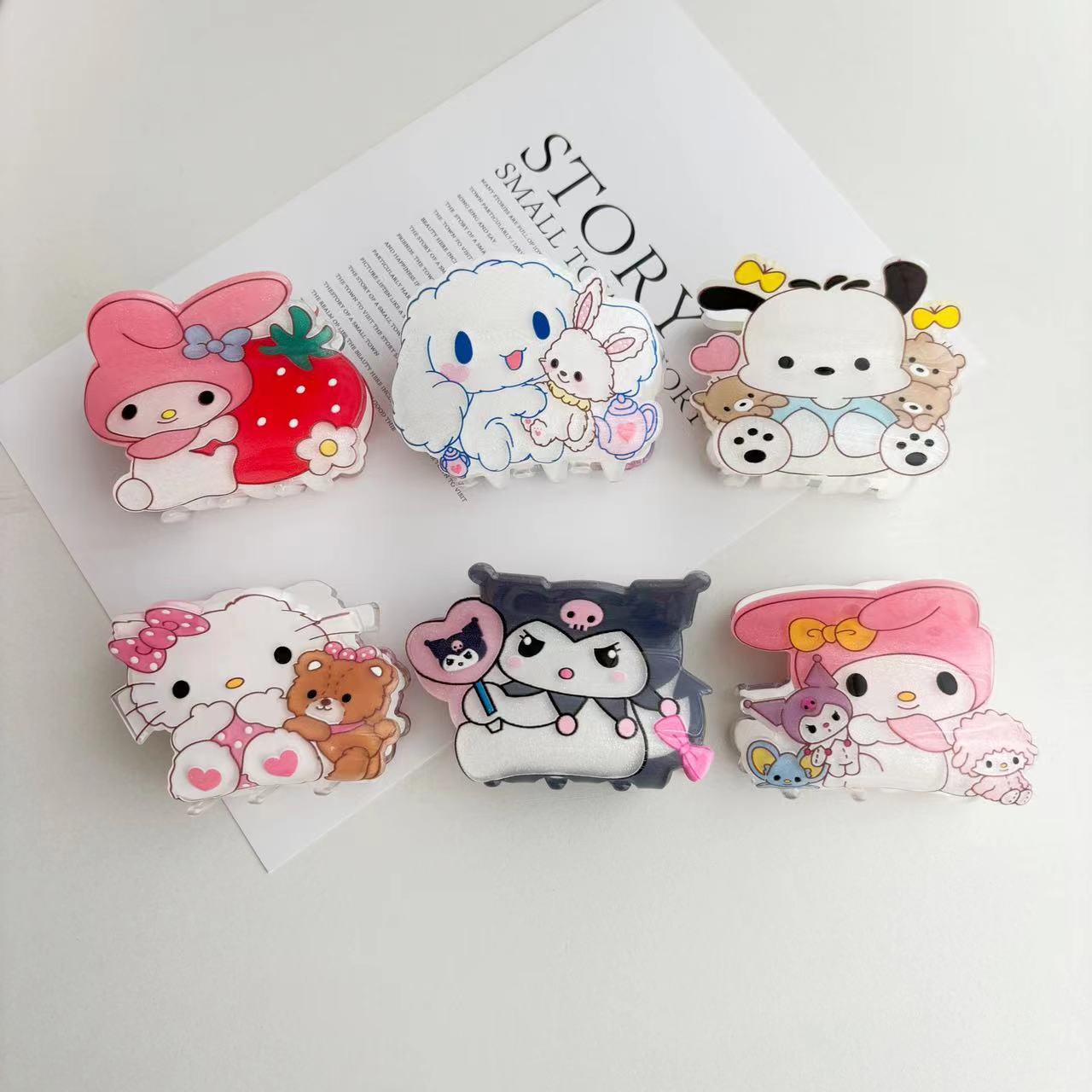 아크릴 산리오 뒤 머리 그라스 클립 메를로 쿨로 미 귀여운 만화 구이 개 소녀 어린이 머리 그라스스토어 가기