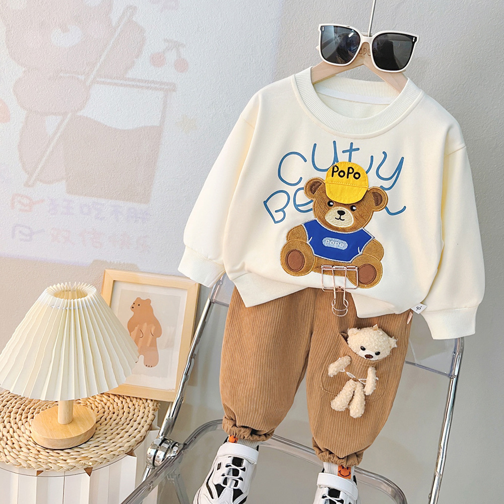 2024 어린이 가을 의류 1-5 세 소년 소녀 만화 승무원 목 조끼는 2 피스 캐주얼 어린이 세트스토어 가기