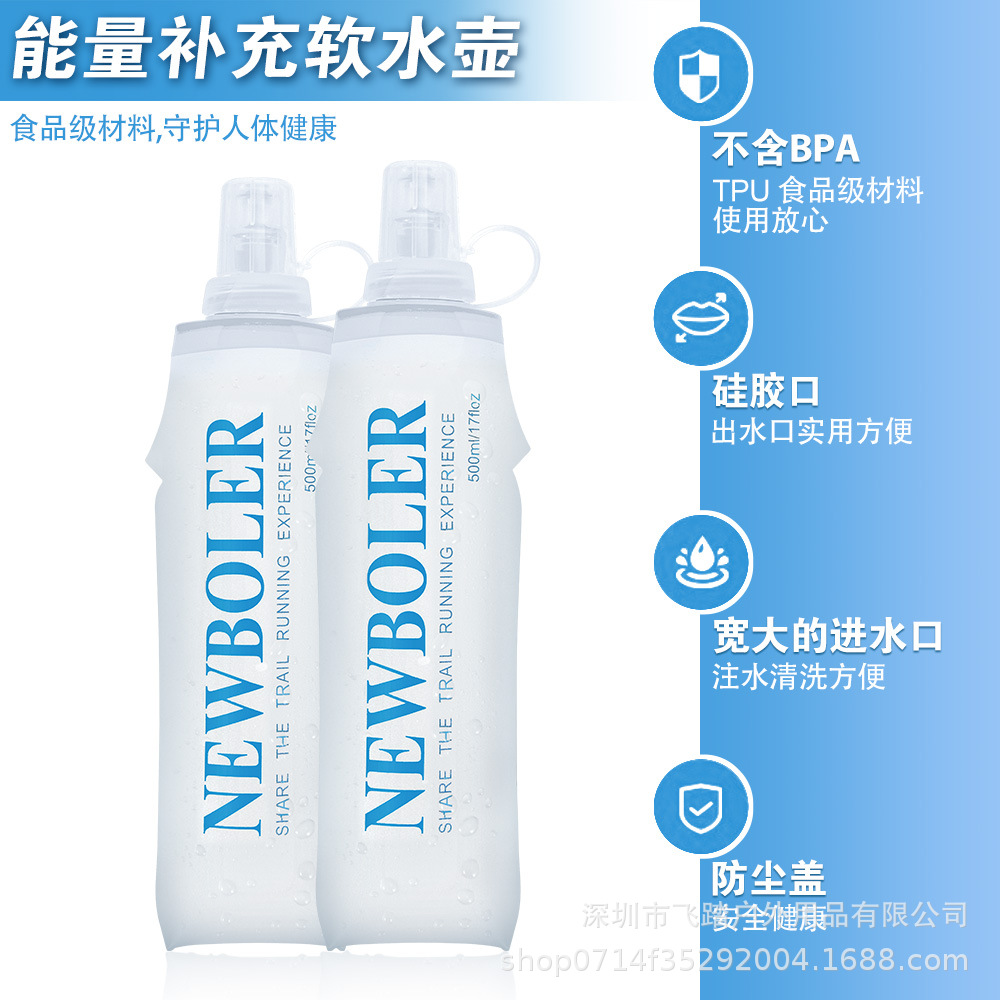 NEWBOLER 야외 소프트 주전자 화이트 환경 보호 누출 방지 휴대용 접이식 달리기 등산 마라톤