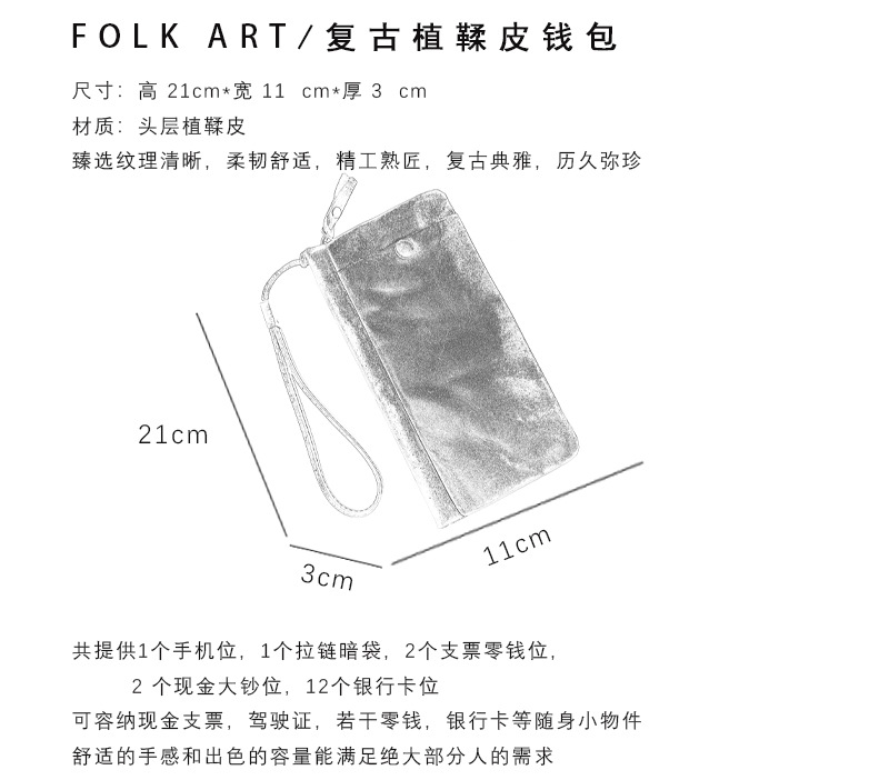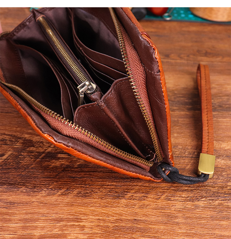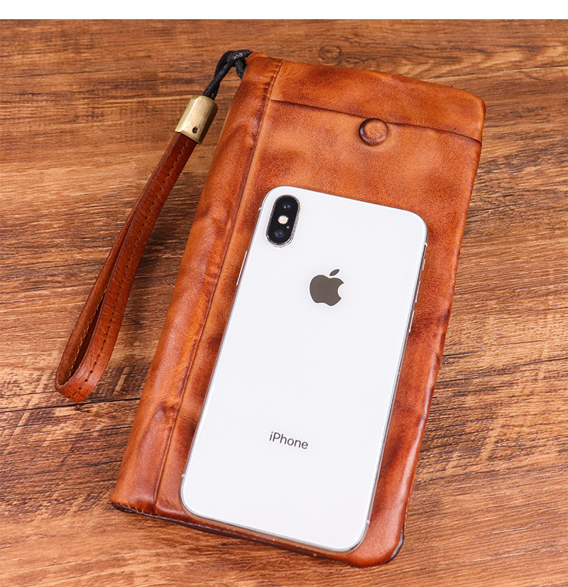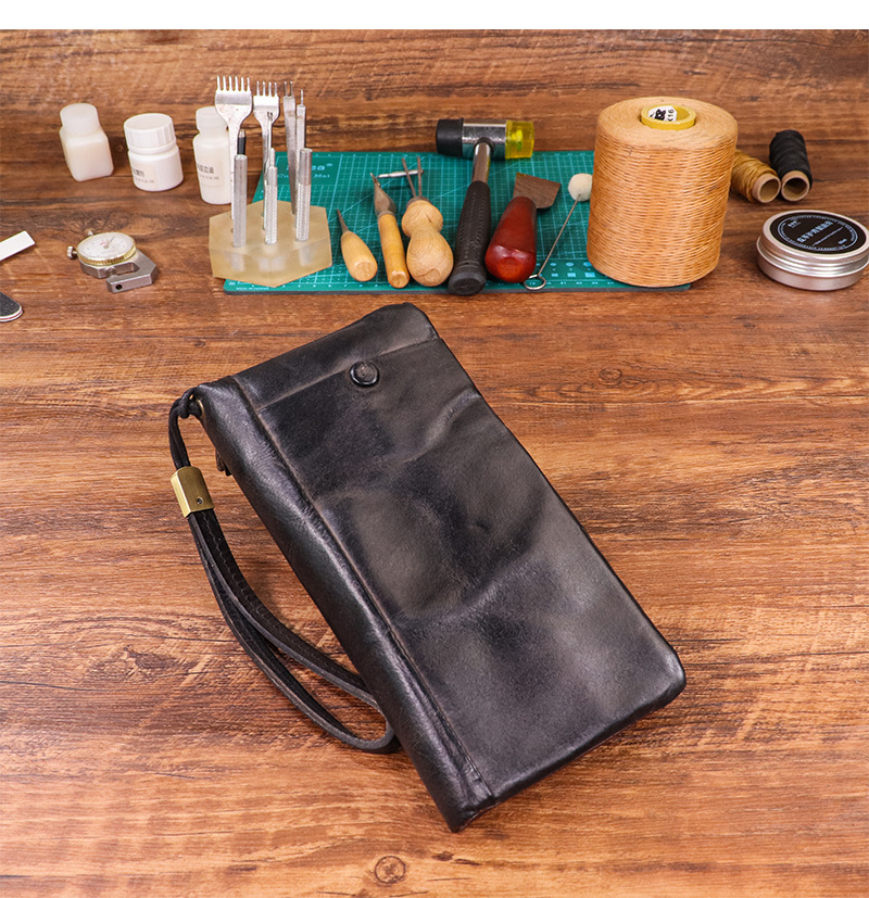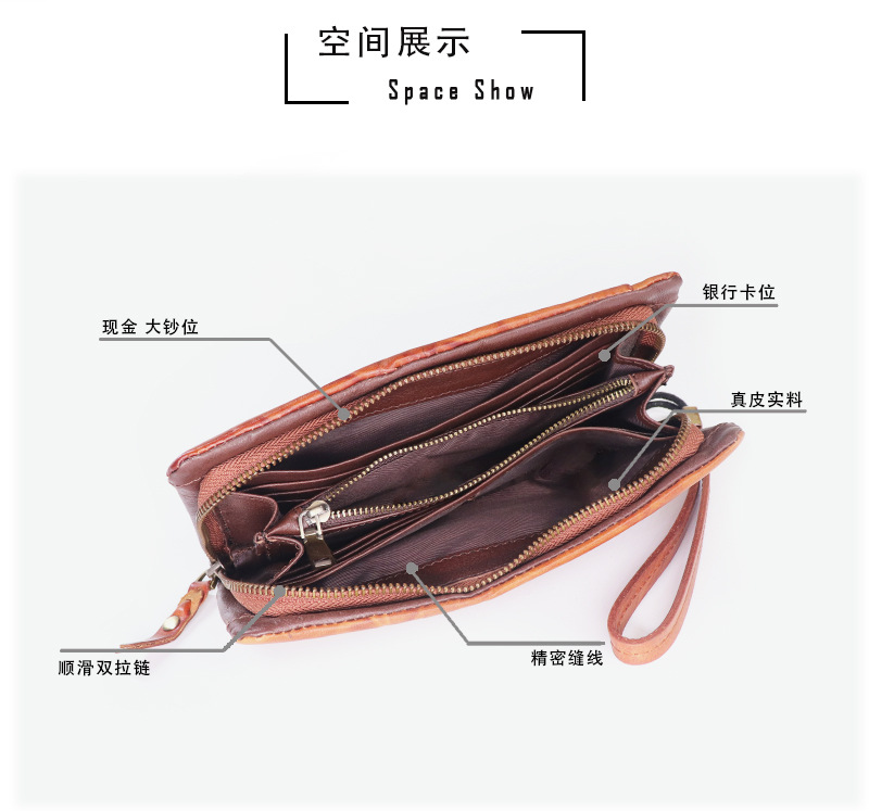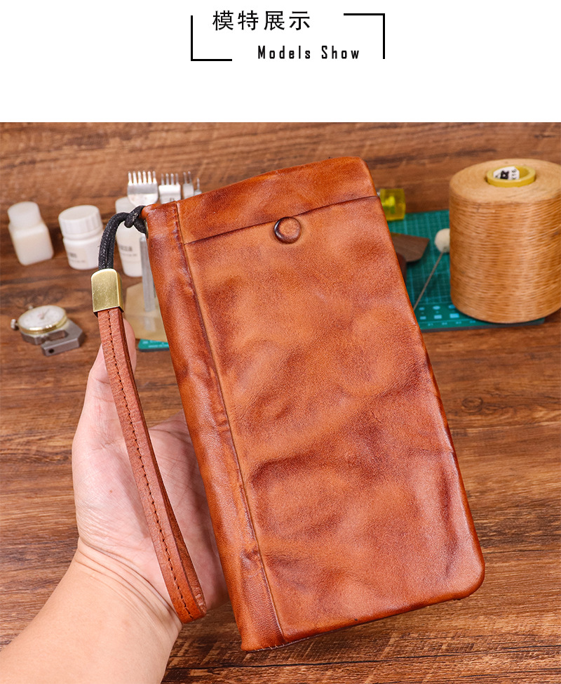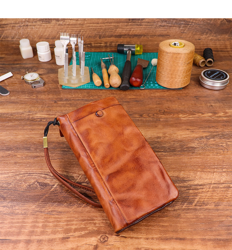 톱 레이어 Cowhide 수제 대용량 야채 태닝 가죽 오래 된 남성 지갑 긴 지퍼 남성용 다기능 레트로 핸드백스토어 가기