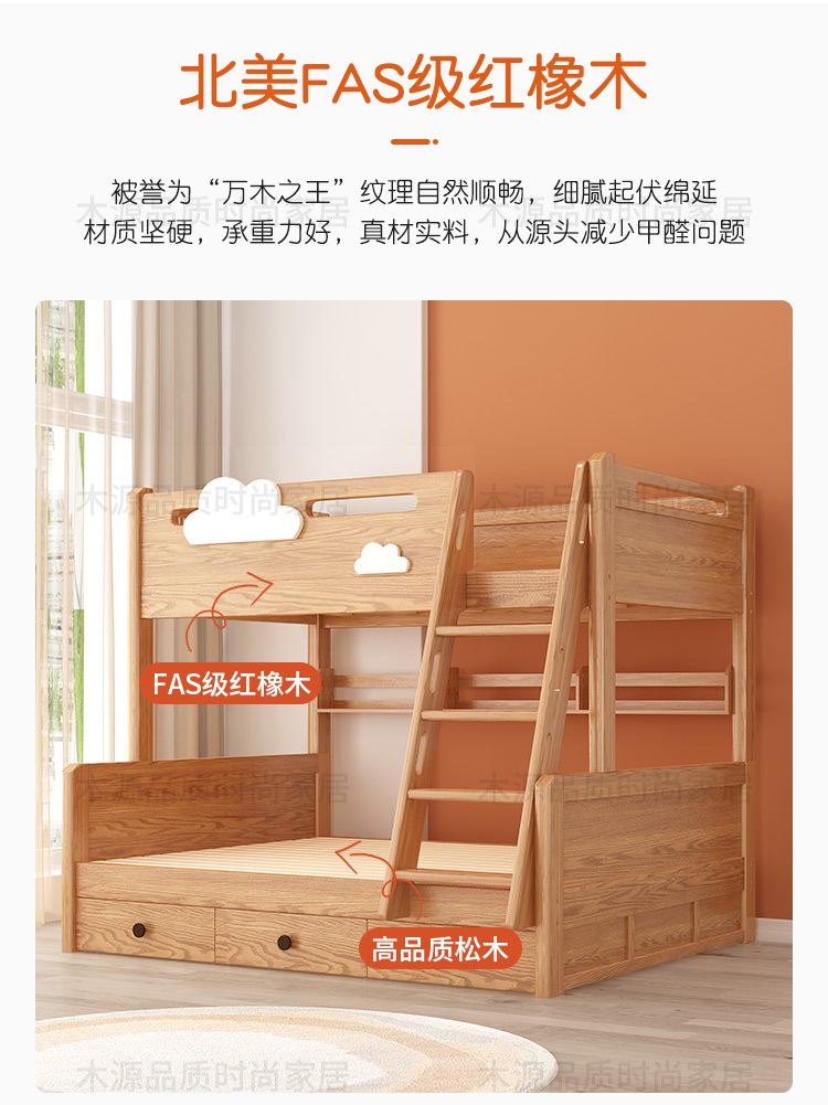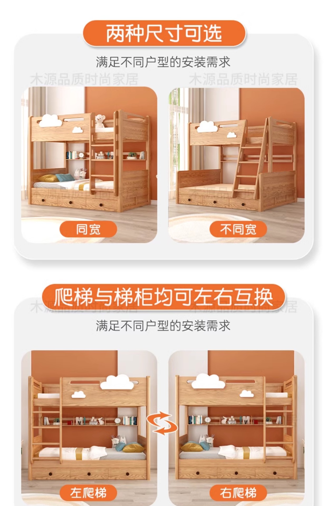 풀 솔리드 우드 상하 이층 침대 2 층 상하 침대 작은 아파트 어린이 높고 낮은 침대 어머니 침대 같은 폭 평행 침대