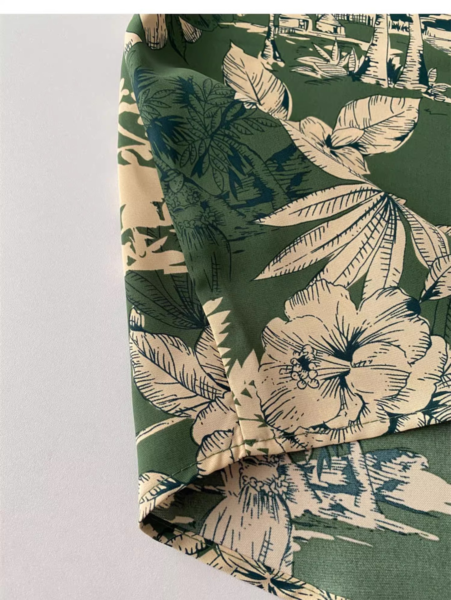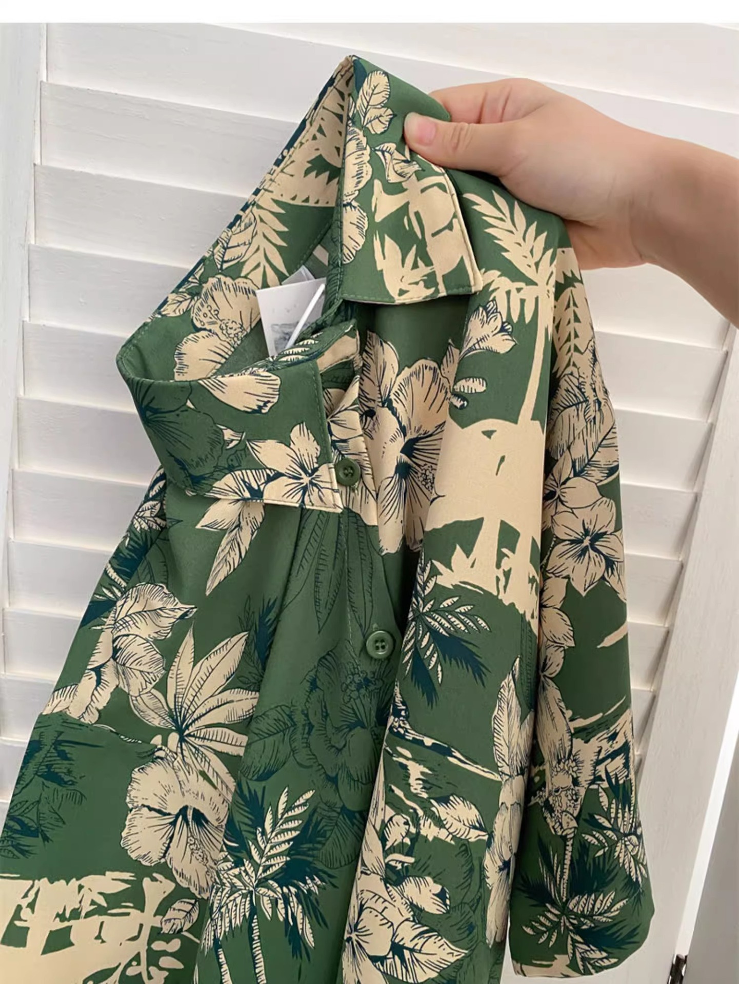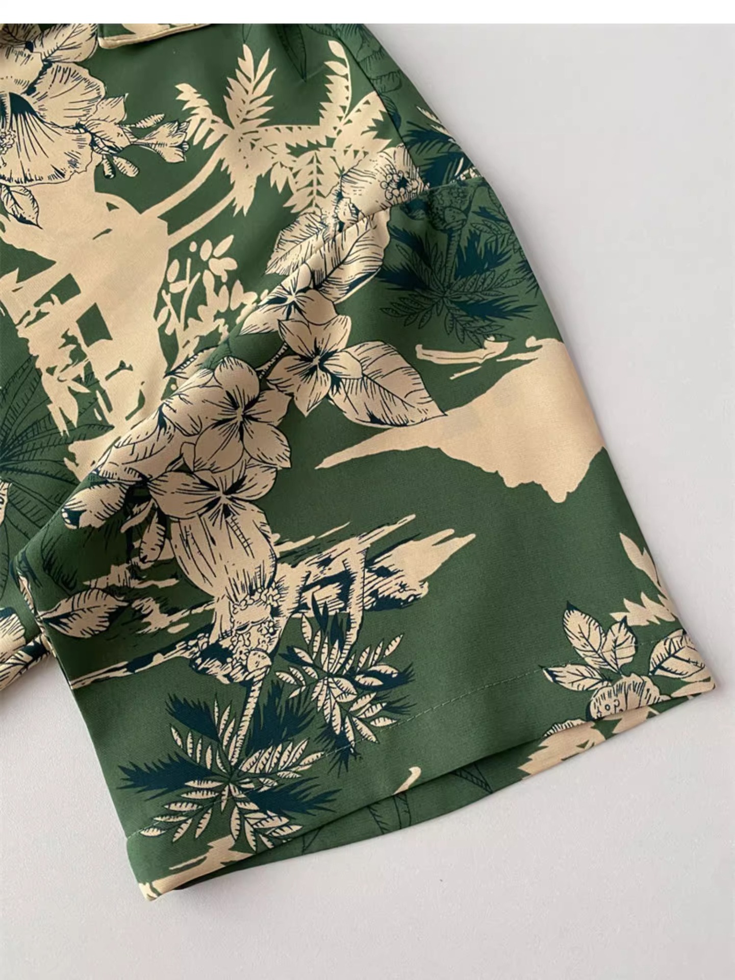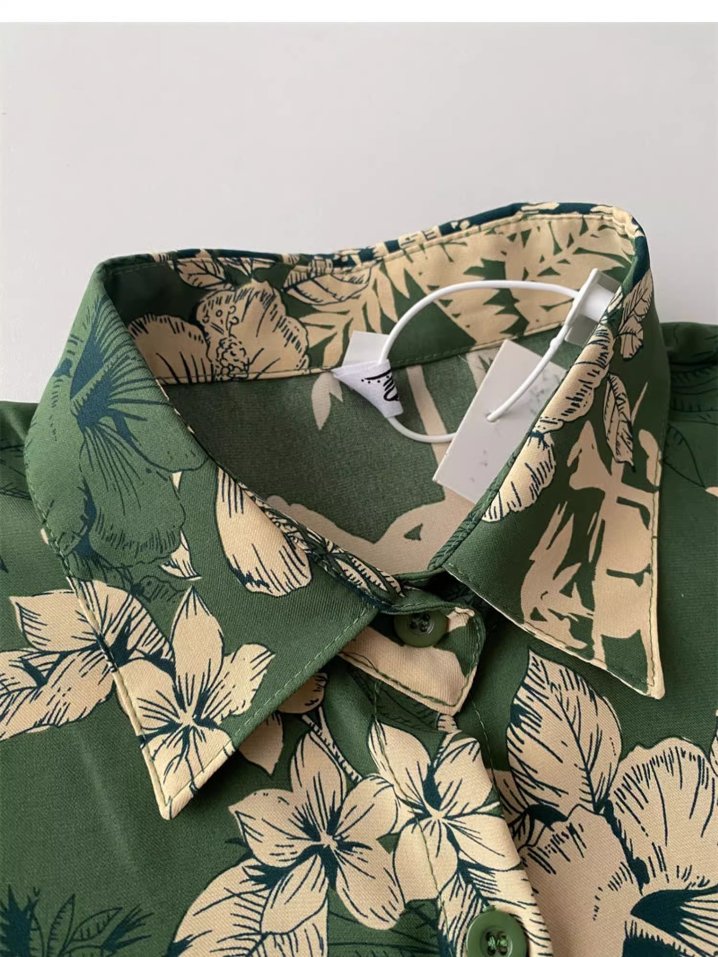 녹색 꽃 셔츠 여성 디자인 감각 틈새 여름 한국식 새로운 느슨한 중간 길이 휴가 반팔 카디건 탑스토어 가기