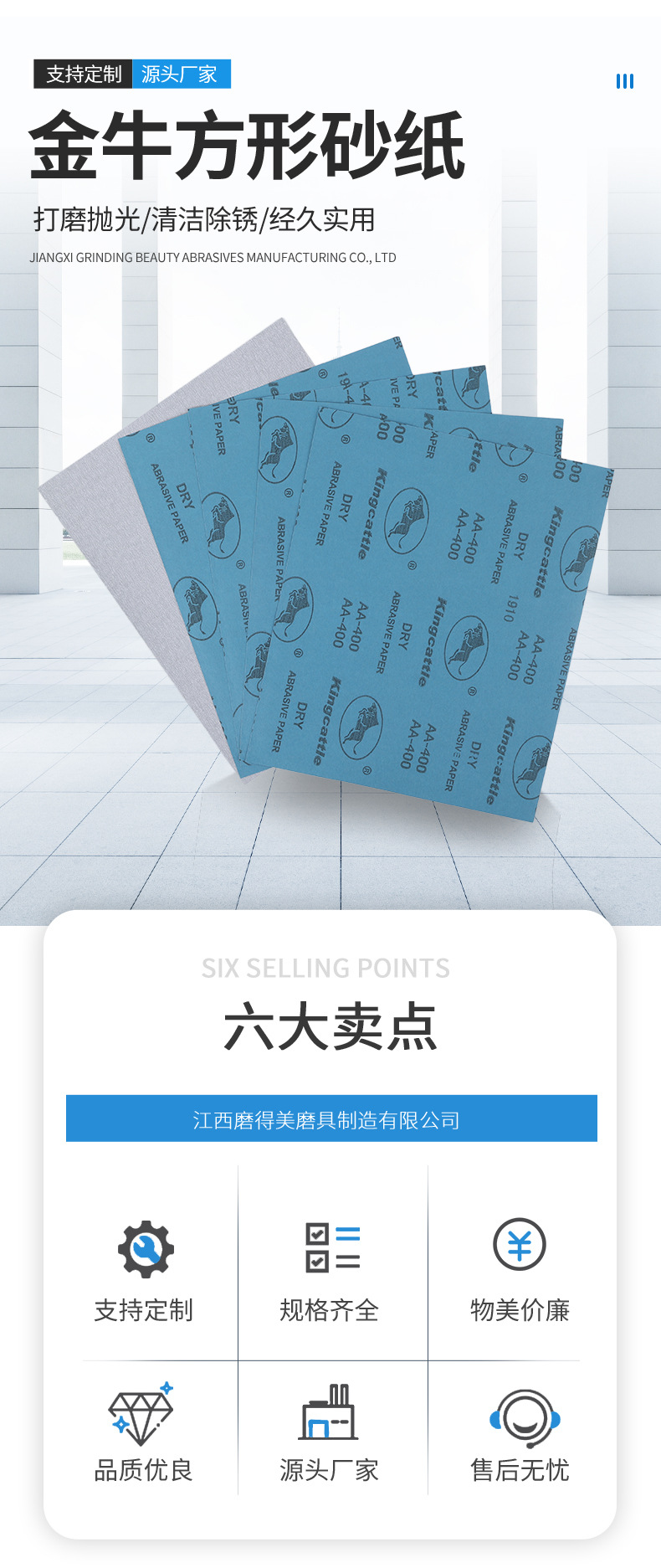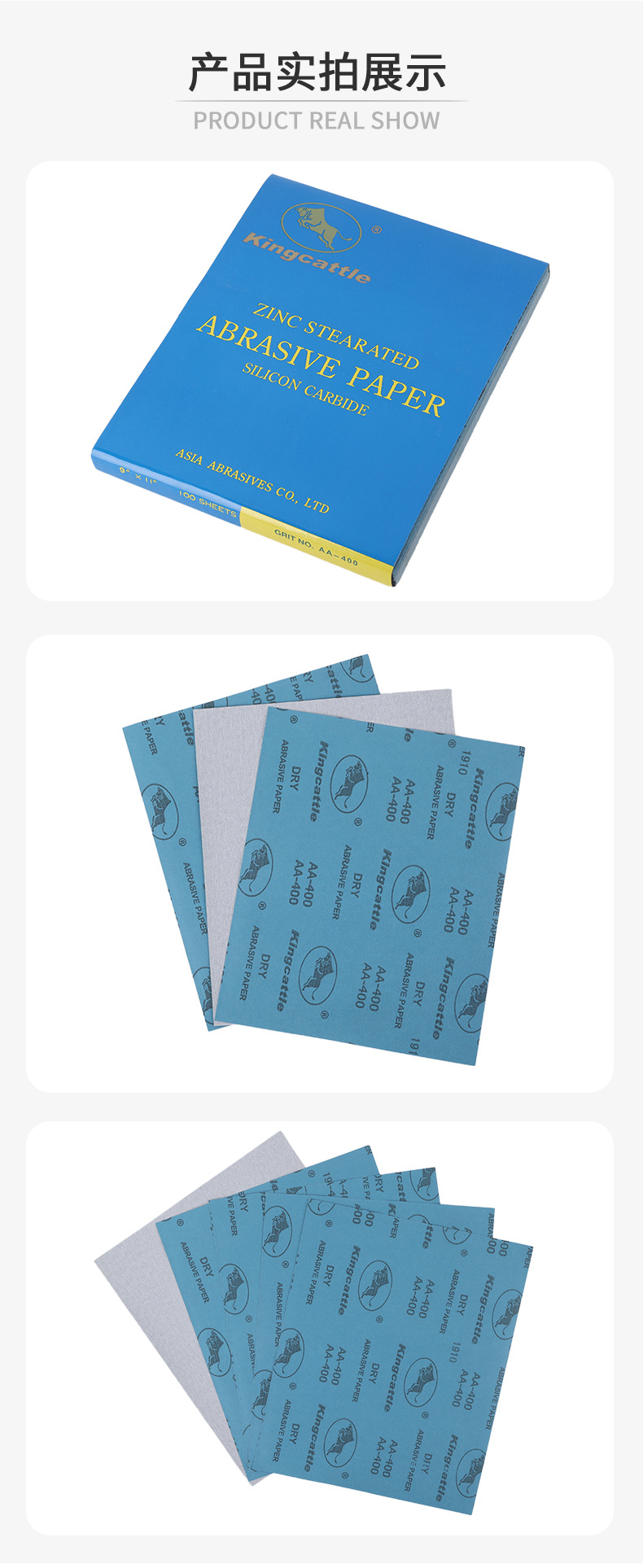 KingCattle Taurus 사각형 사포 건식 연삭 자동차 코팅 모래 금속 알루미늄 부품 연마 알루미나 흰색 사포스토어 가기