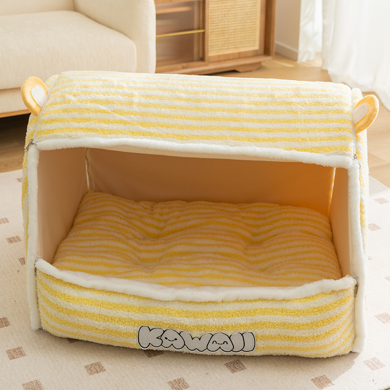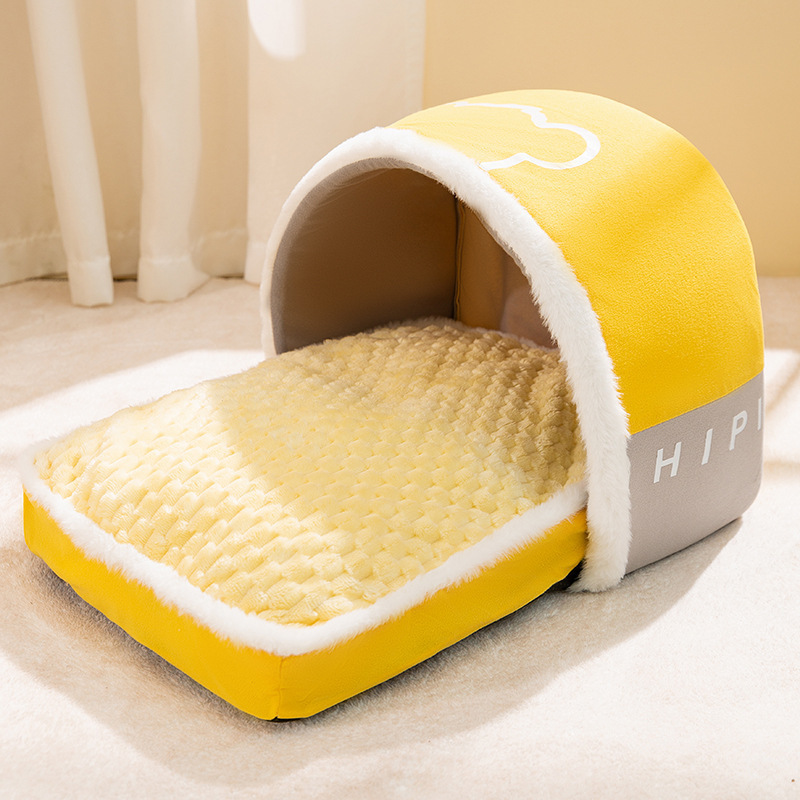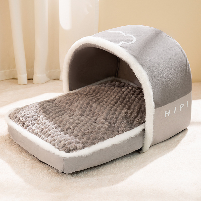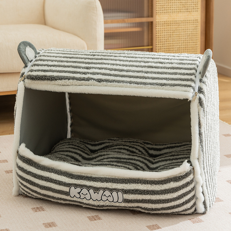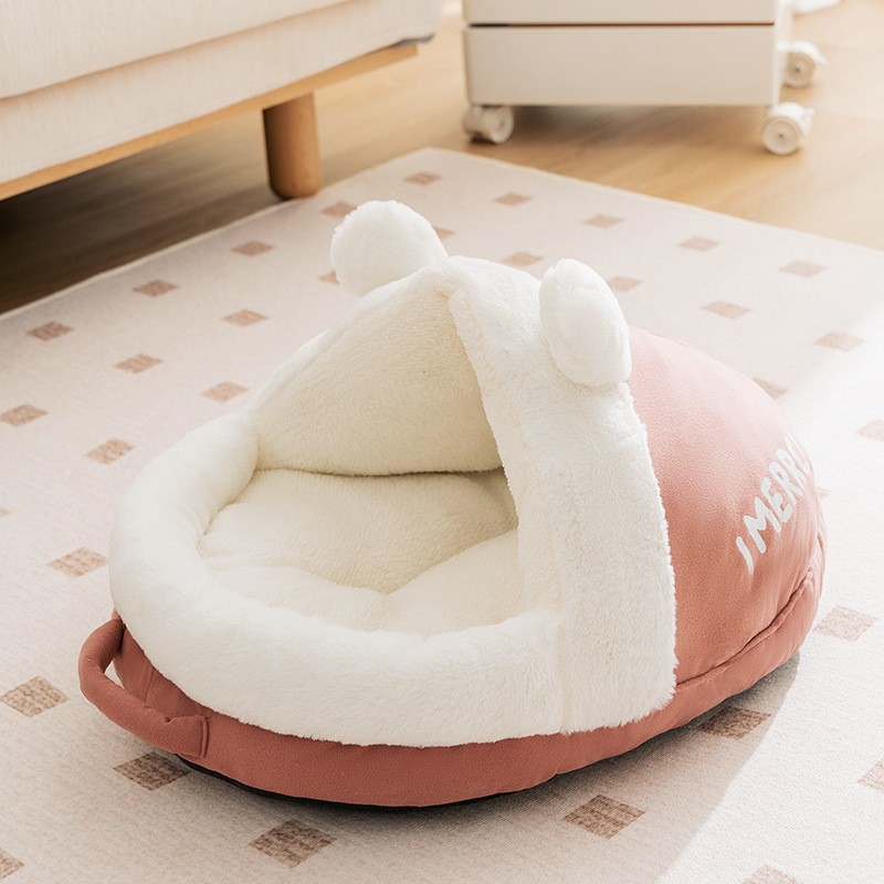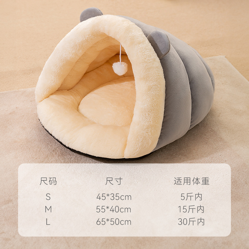 가을과 겨울 고양이 둥지 귀여운 동물 슬리퍼 둥지 고양이 둥지 따뜻한 사육장 개 침대 폐쇄 집 둥지 애완 동물 둥지