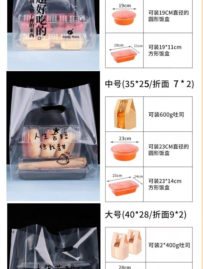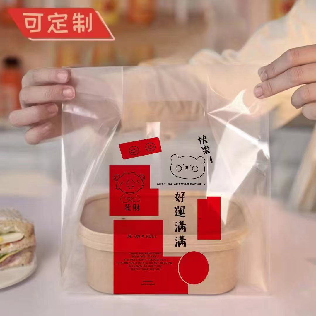 두꺼운 플라스틱 테이크 아웃 포장 가방 투명 식품 포장 가방 빵 굽기 케이크 디저트 토트 백