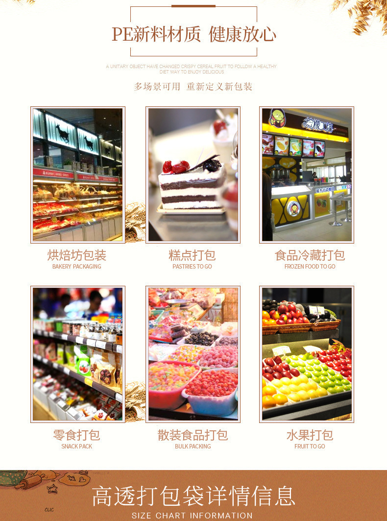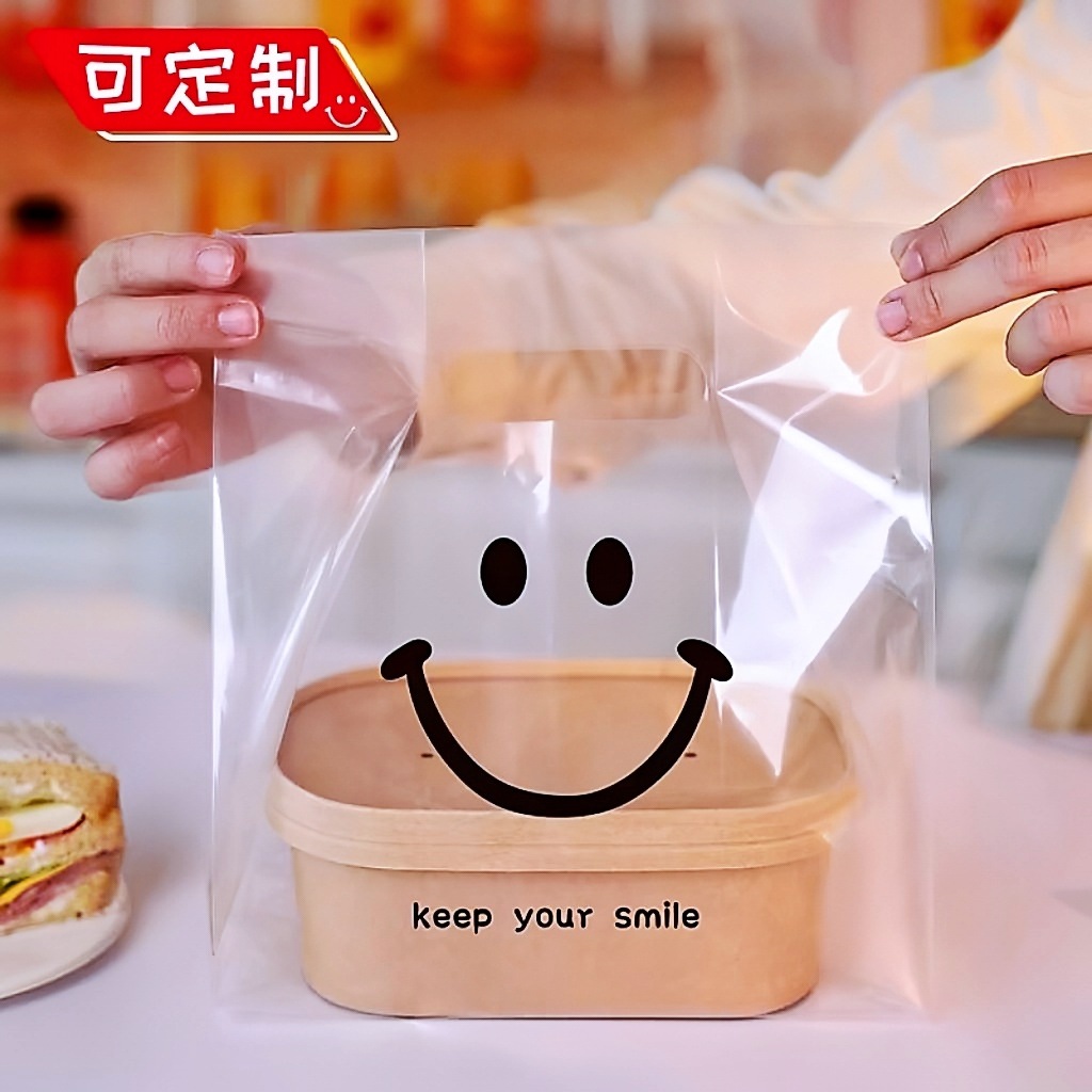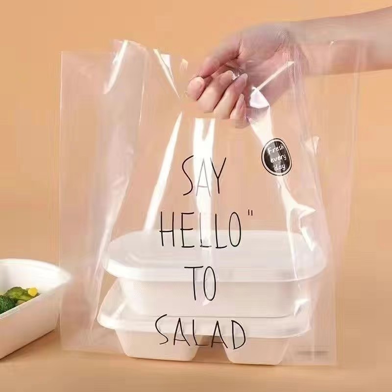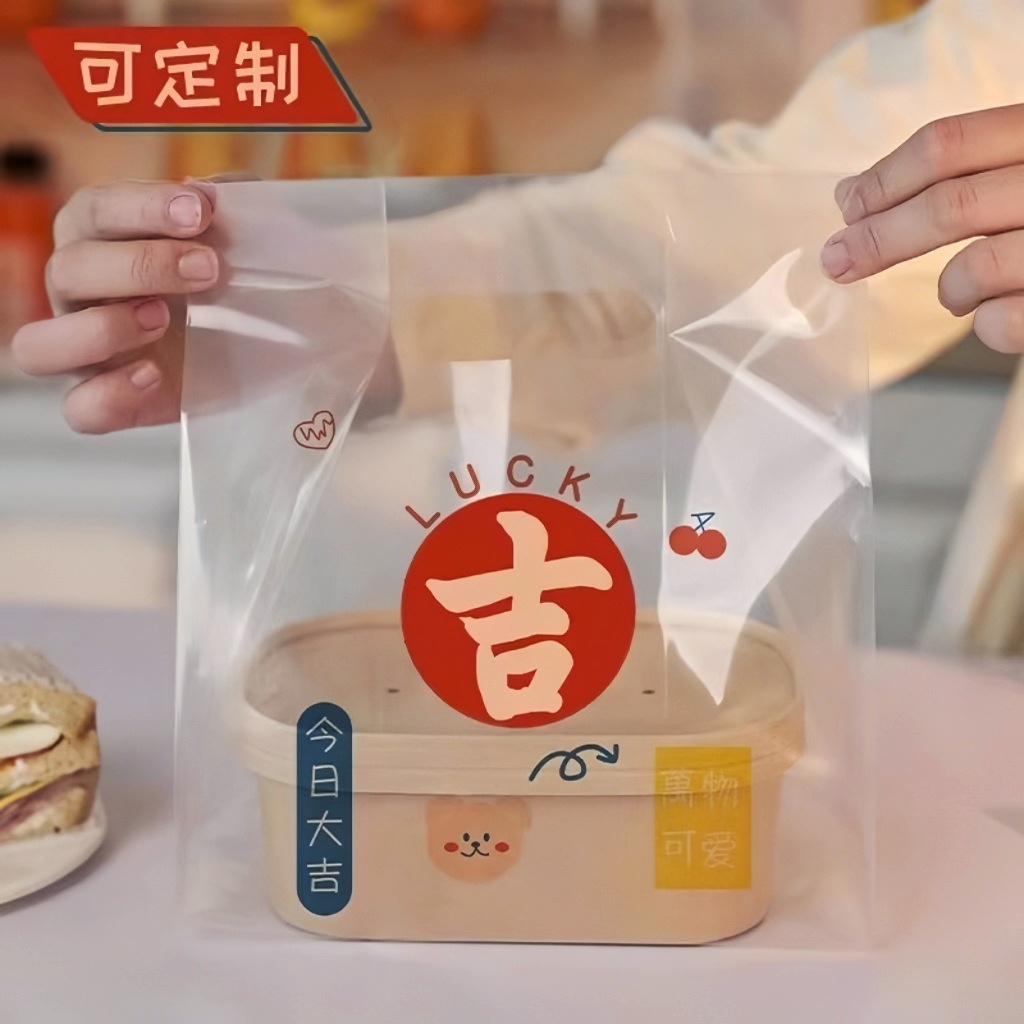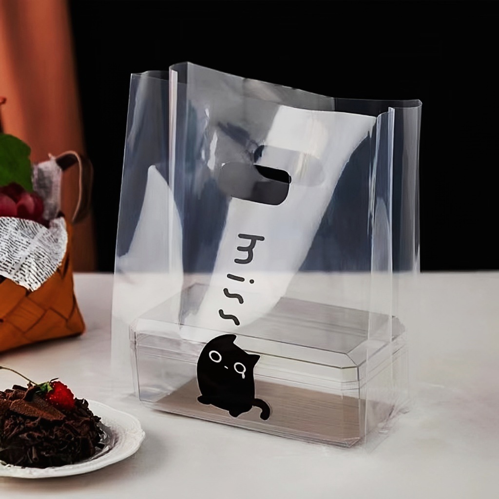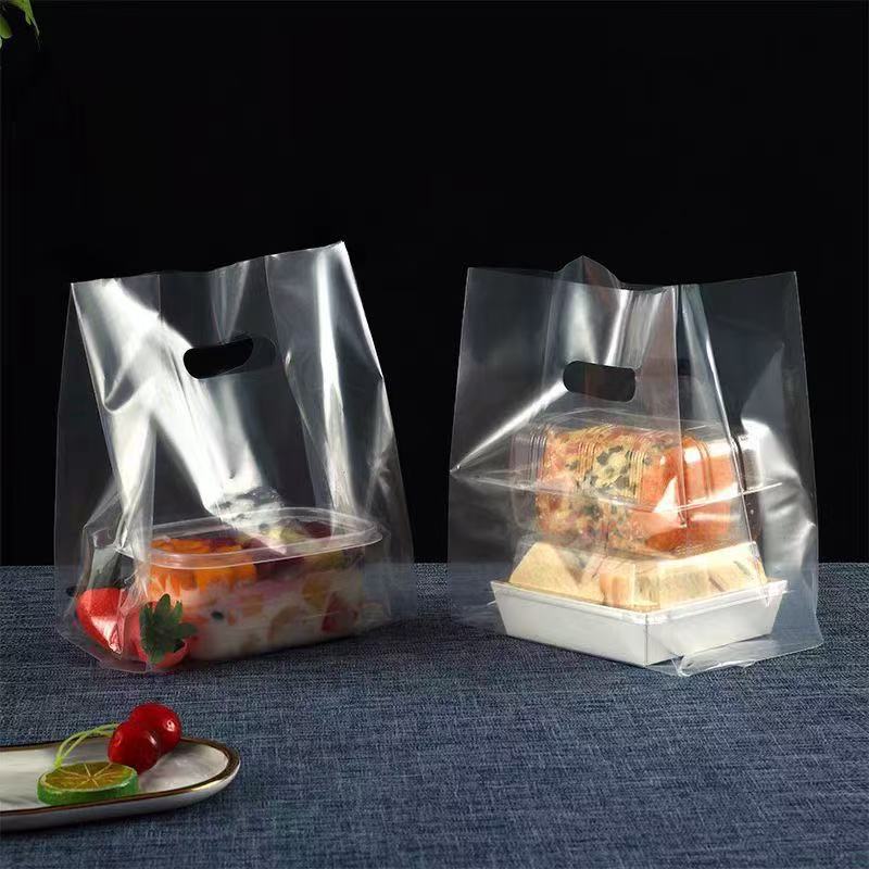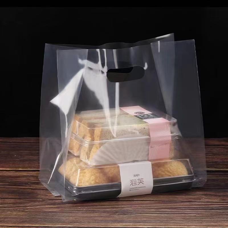 두꺼운 플라스틱 테이크 아웃 포장 가방 투명 식품 포장 가방 빵 굽기 케이크 디저트 토트 백스토어 가기