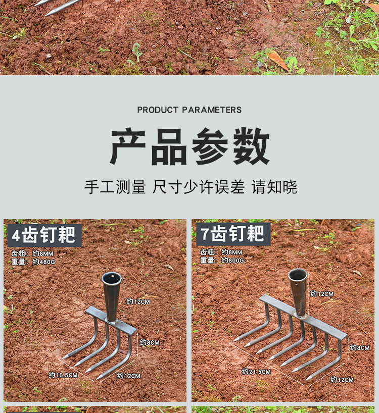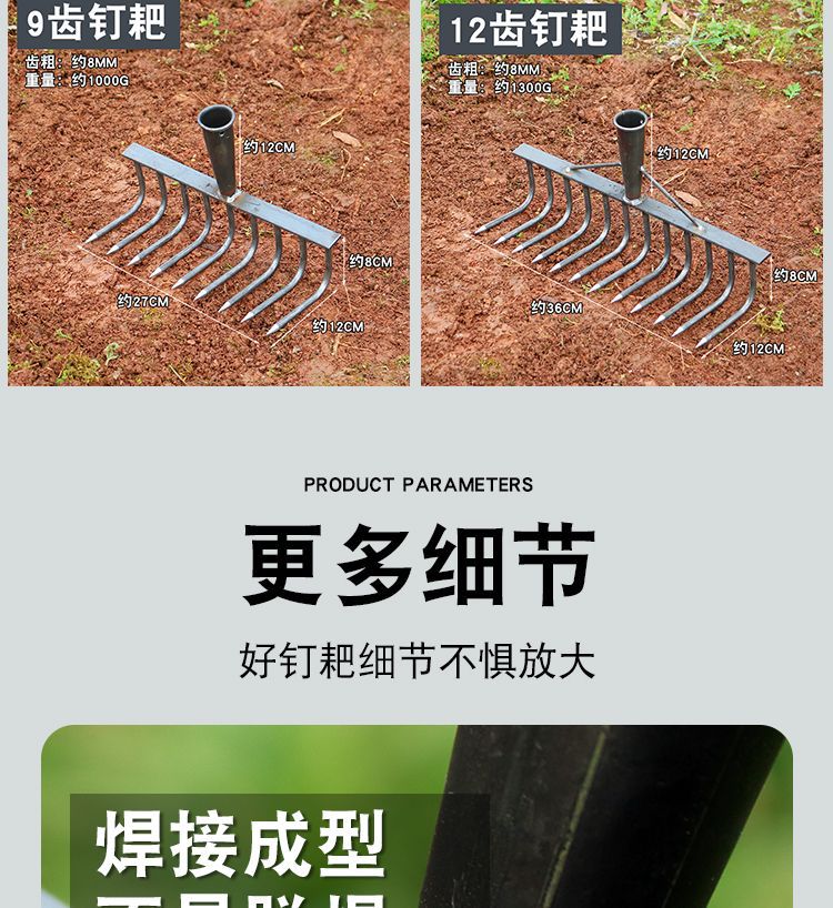 농업 철 갈퀴 잔디 긁기 도구 다기능 잔디 긁기 도구 9 치아 갈퀴 농업 도구