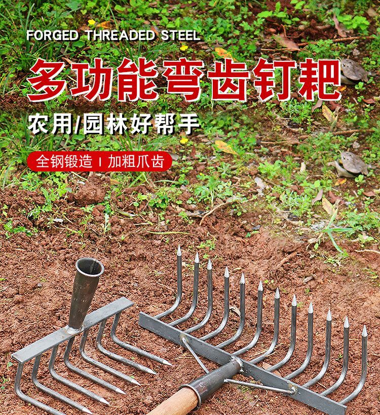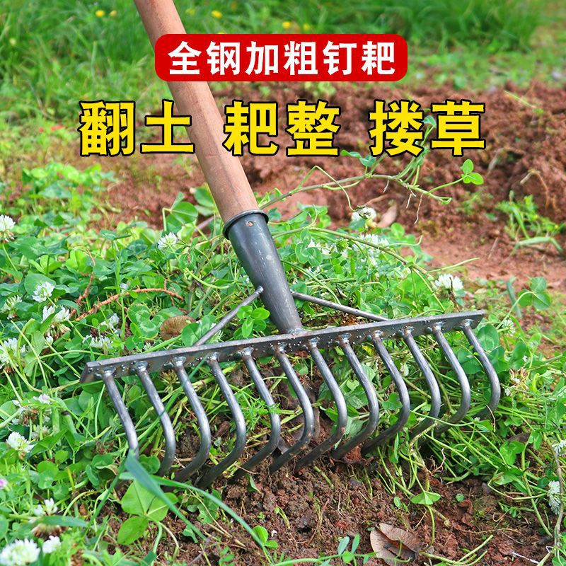농업 철 갈퀴 잔디 긁기 도구 다기능 잔디 긁기 도구 9 치아 갈퀴 농업 도구스토어 가기