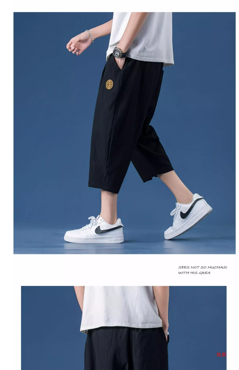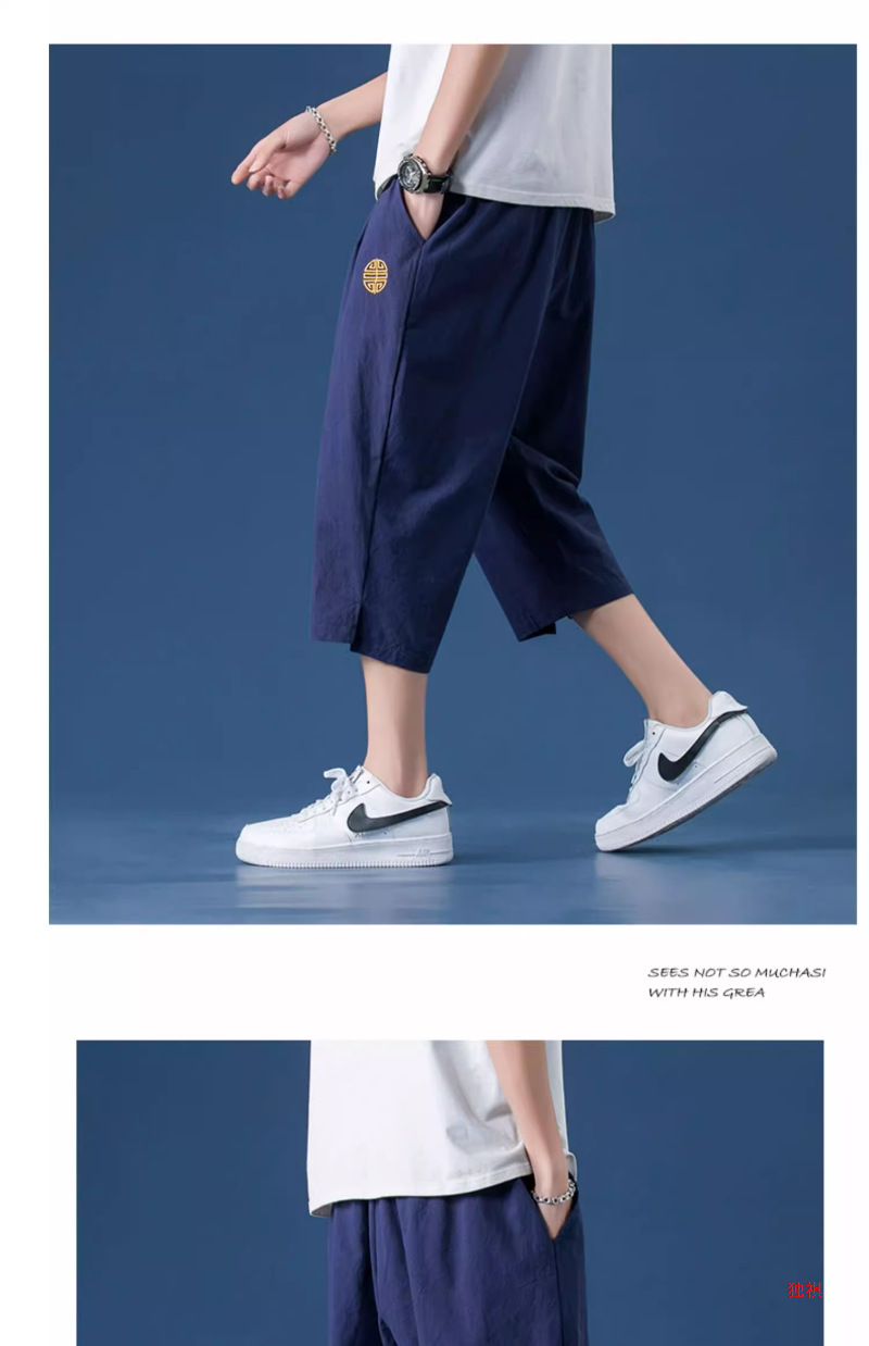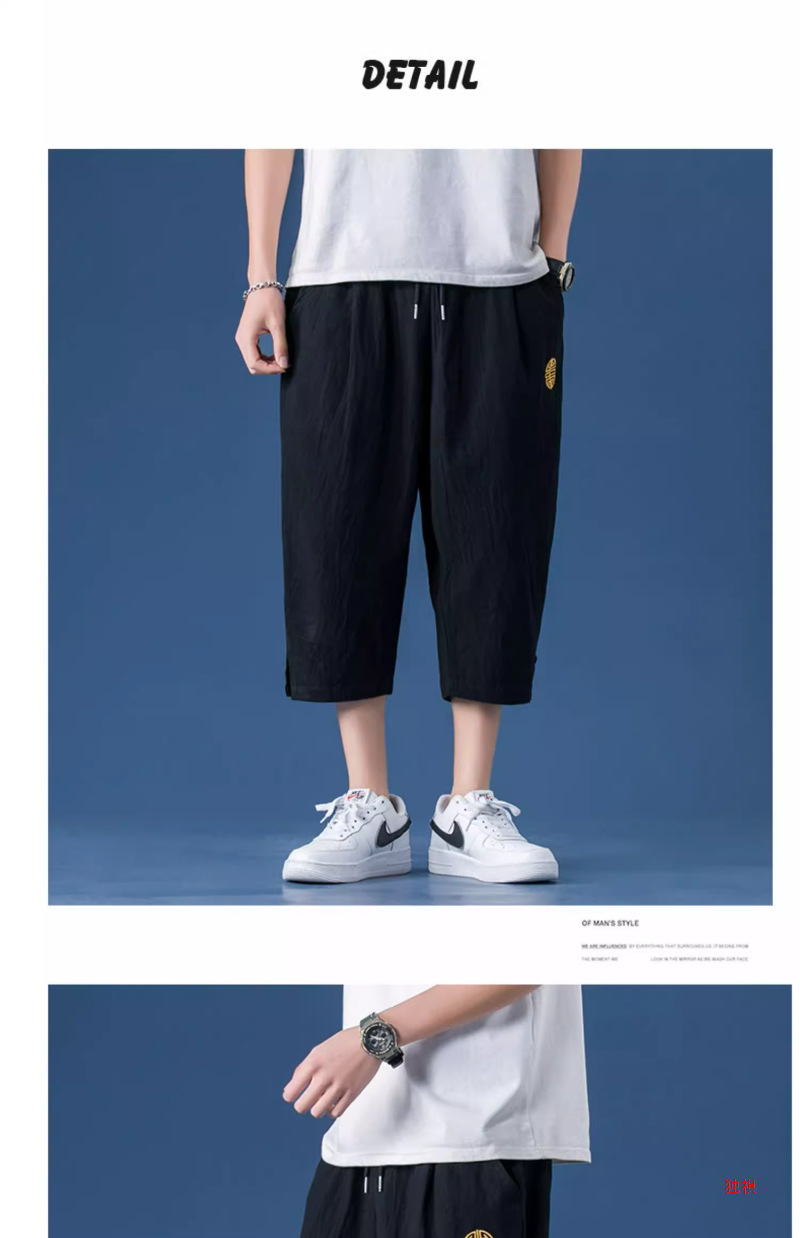 카프리 바지 남자 여름 리넨 남자 바지 반바지 청소년 스포츠 바지 스트레이트 루즈 바지 코튼 리넨 캐주얼 바지스토어 가기