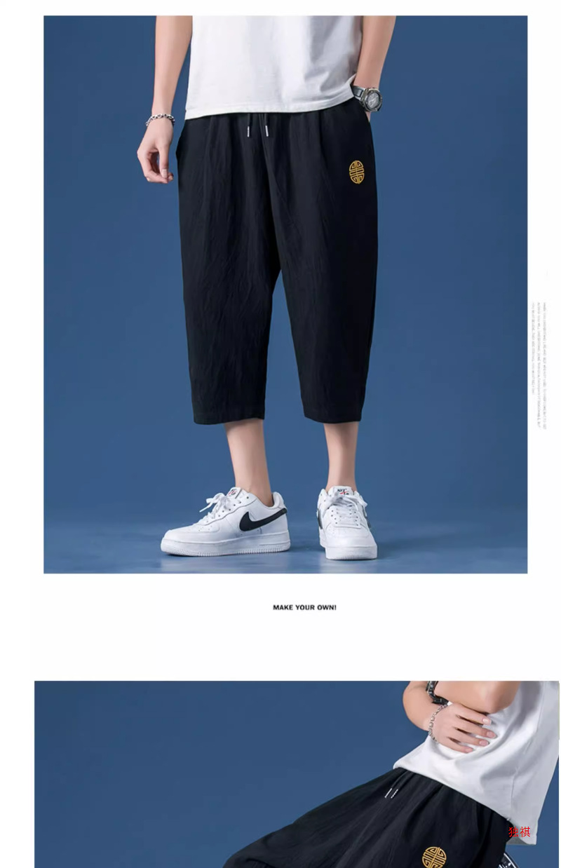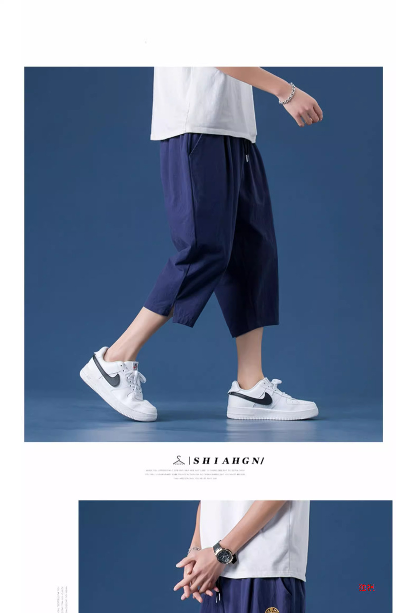 카프리 바지 남자 여름 리넨 남자 바지 반바지 청소년 스포츠 바지 스트레이트 루즈 바지 코튼 리넨 캐주얼 바지