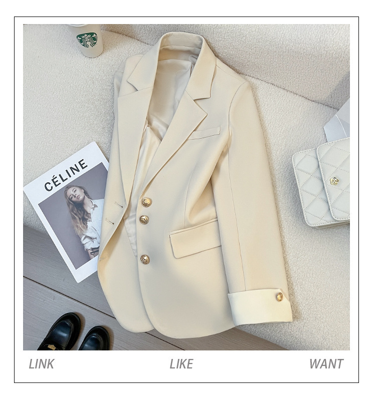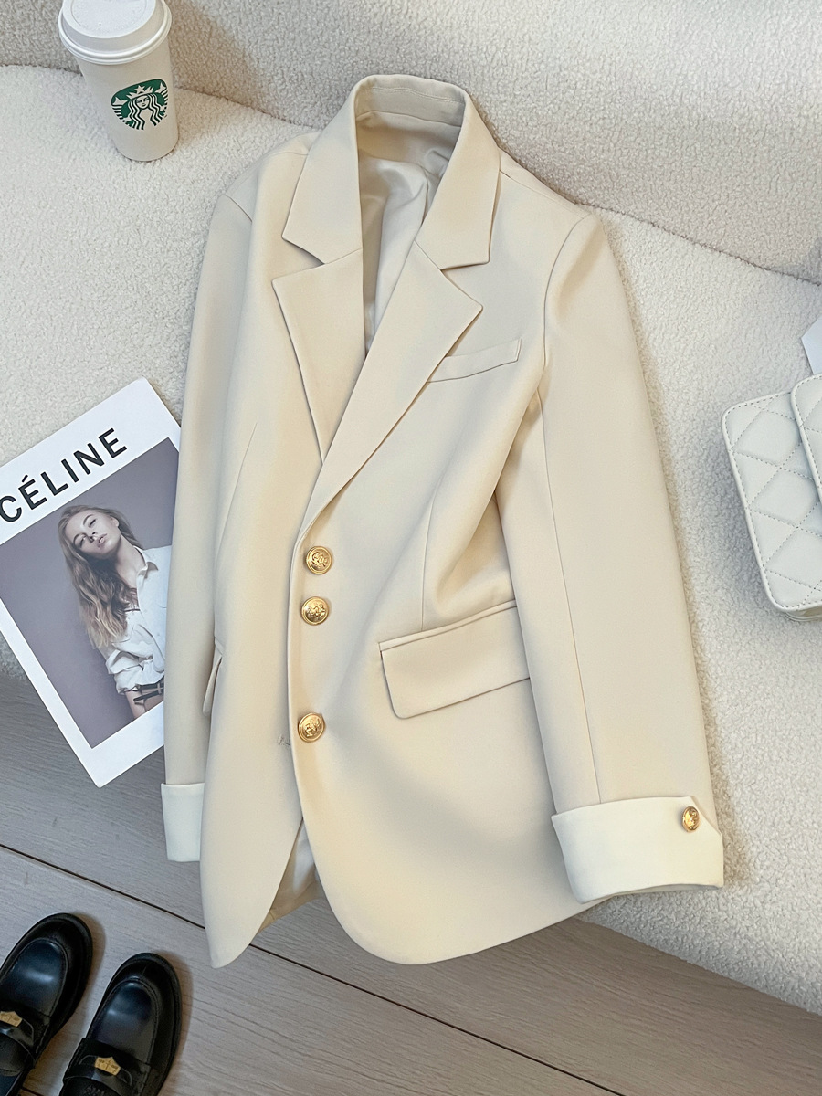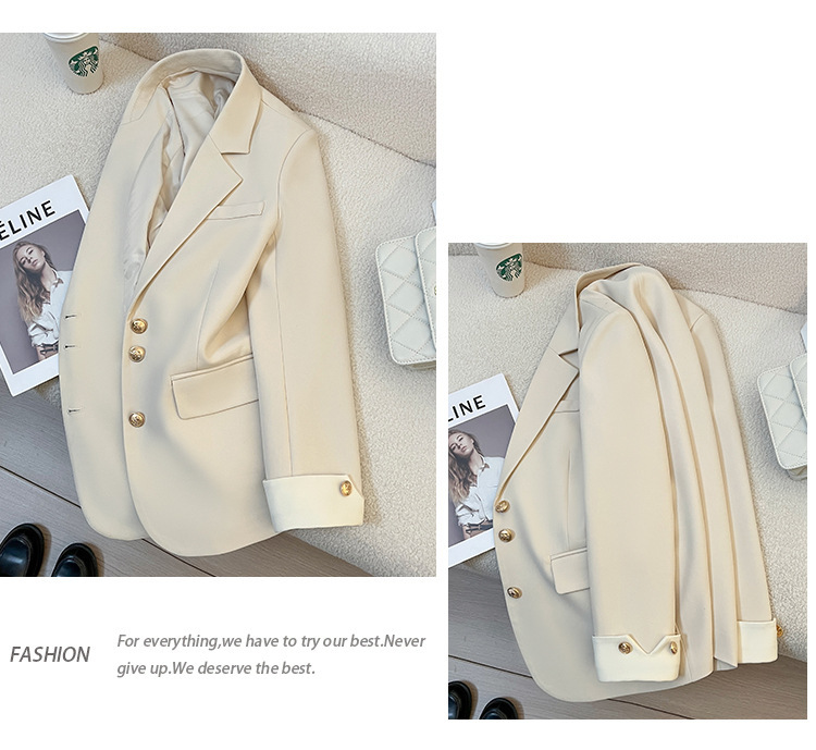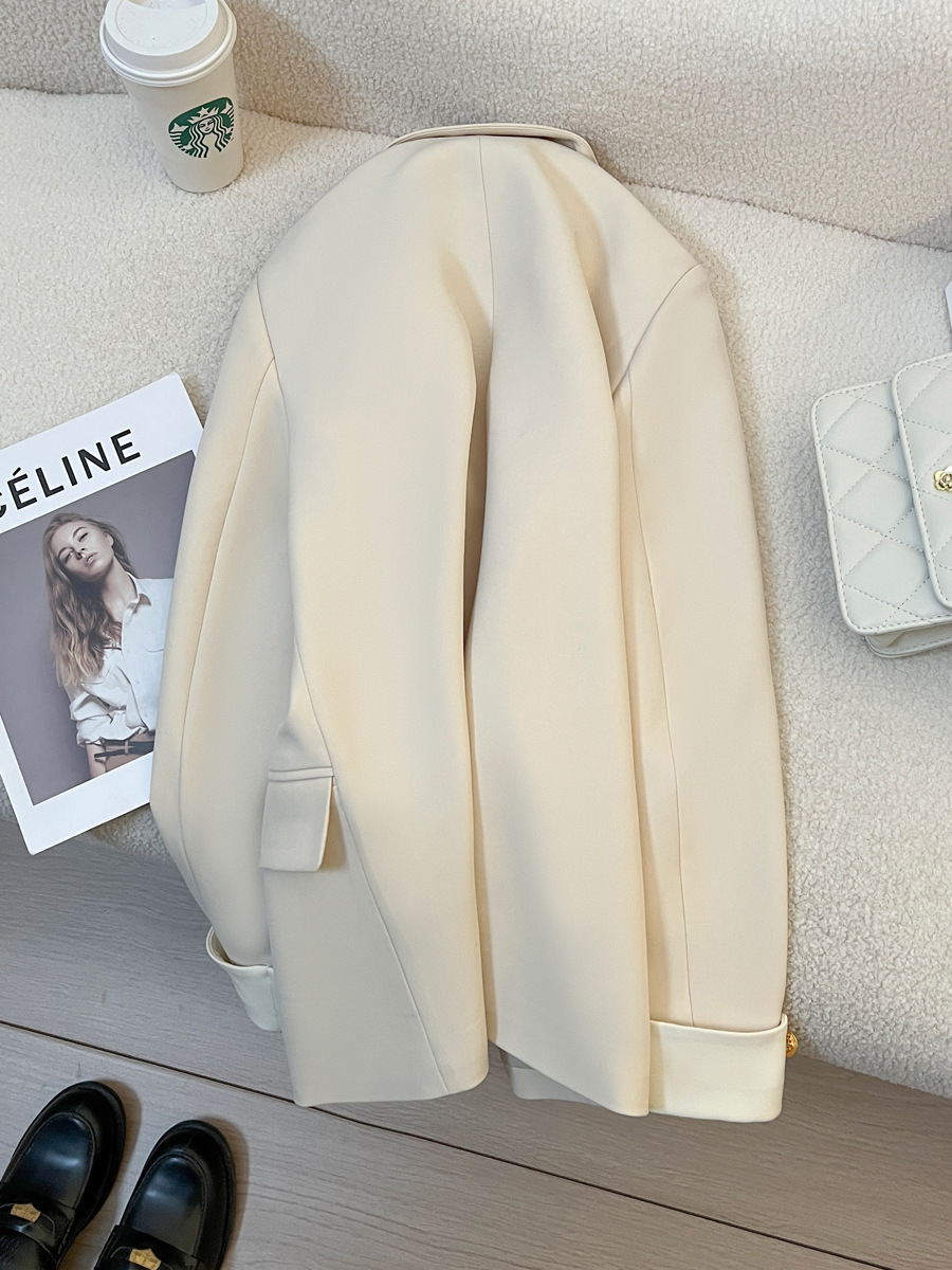 奶油色西装外套女2024春季新款韩版设计感小众时尚气质通勤小西服