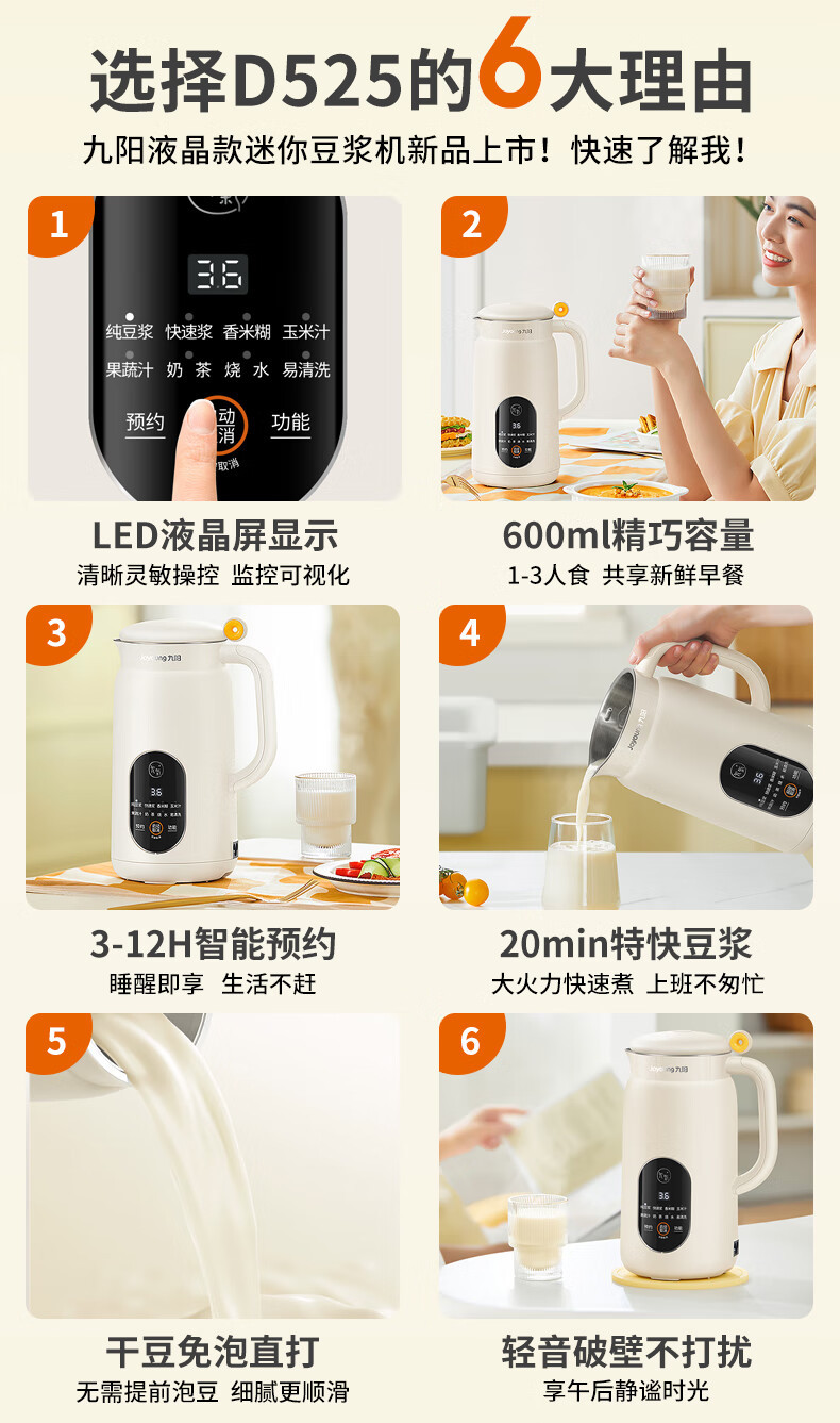 Jiuyang 두유 기계 DJ06X-D525 두유 기계 작은 새 가정 자동 비 끓는 벽 깨는 미니 비 필터링스토어 가기
