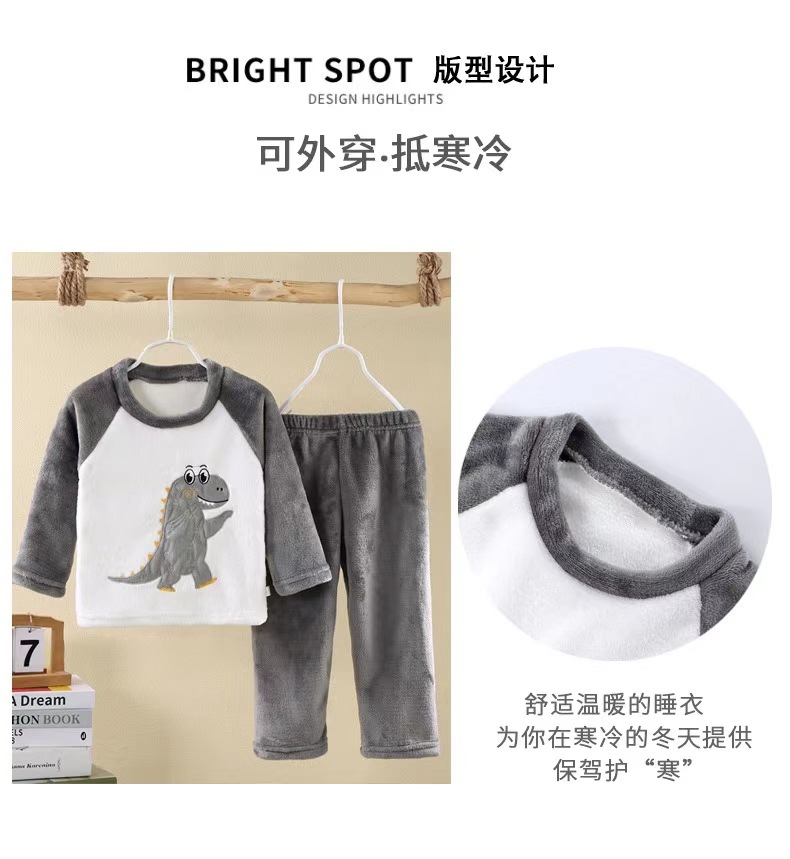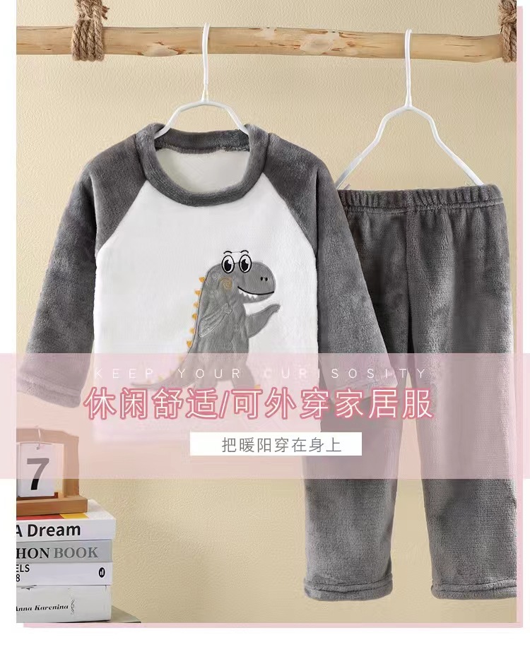 가을과 겨울 어린이 플란넬 파자마 세트 기모 두꺼운 남학생과 여학생 가정 옷 중대형 어린이 따뜻한 산호 양털스토어 가기