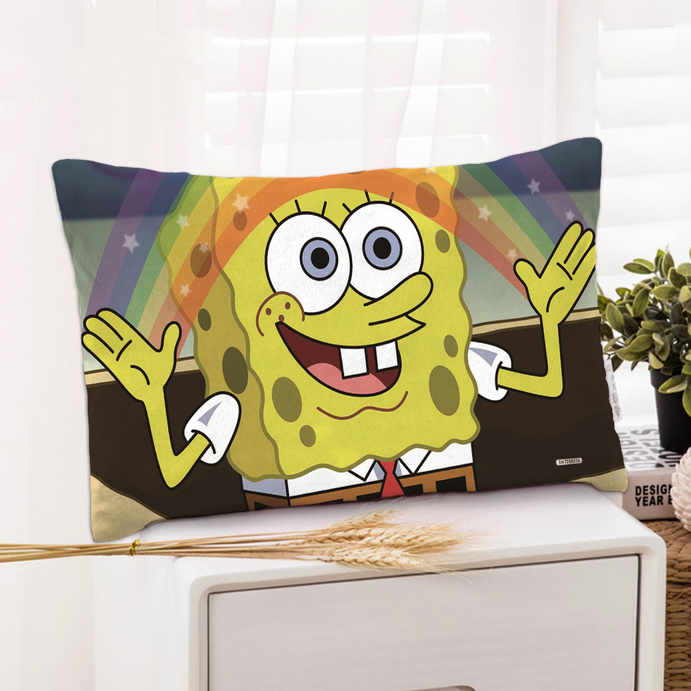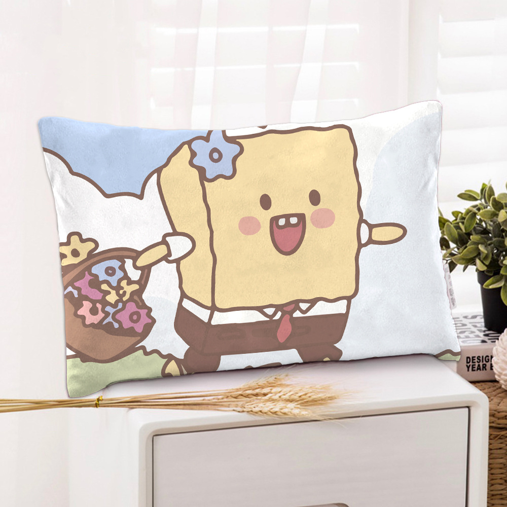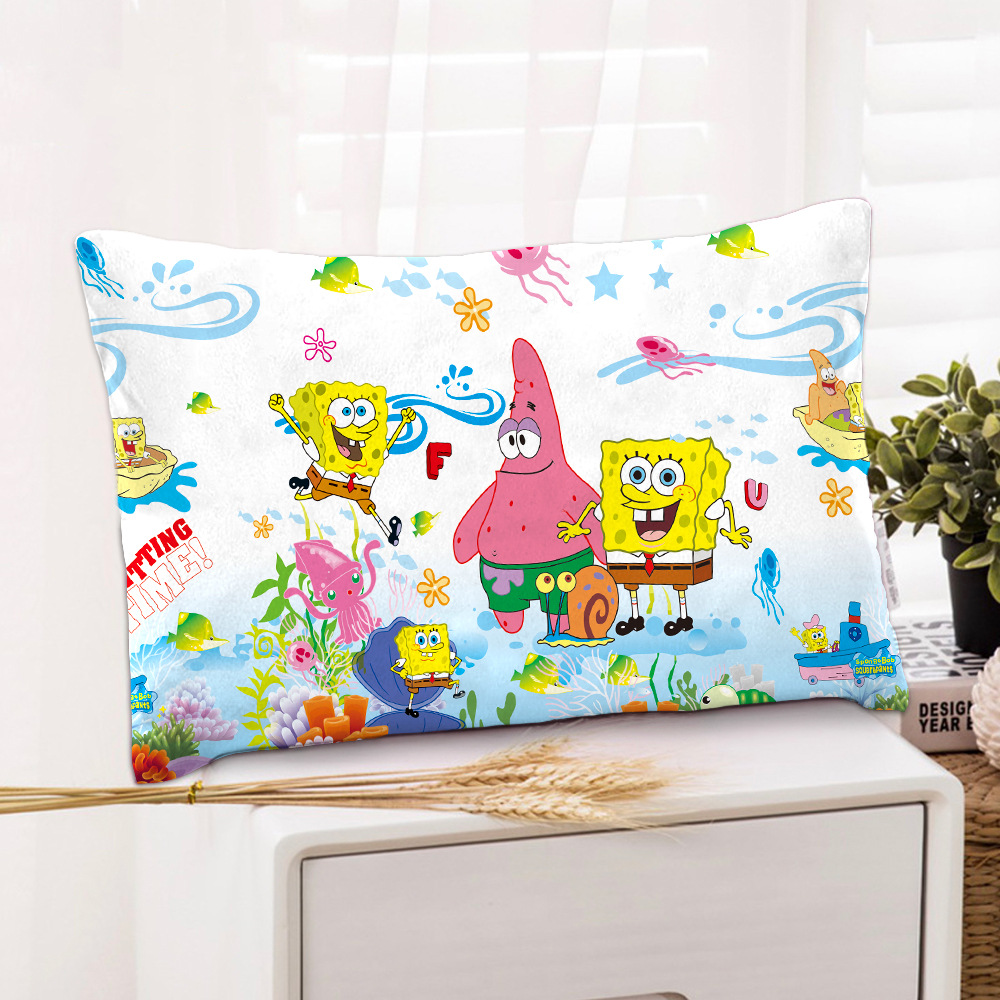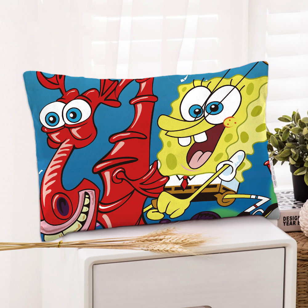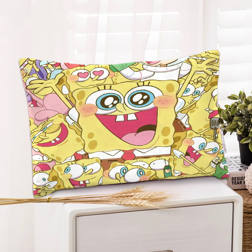 스폰지 밥 새 만화 베개 케이스 48x74 양면 피부 친화적 인 인쇄 지퍼 귀여운 어린이 베개 케이스스토어 가기
