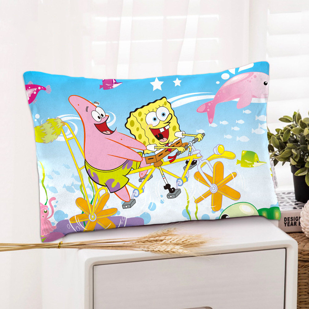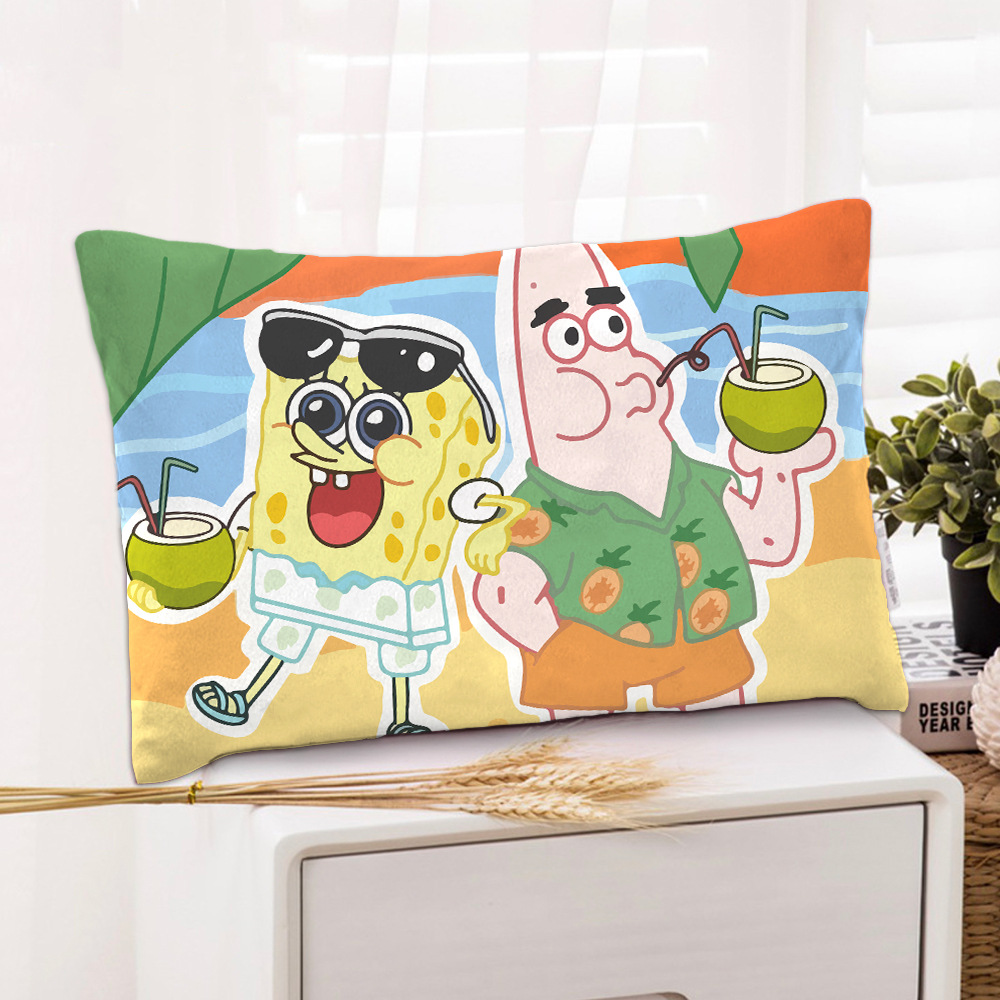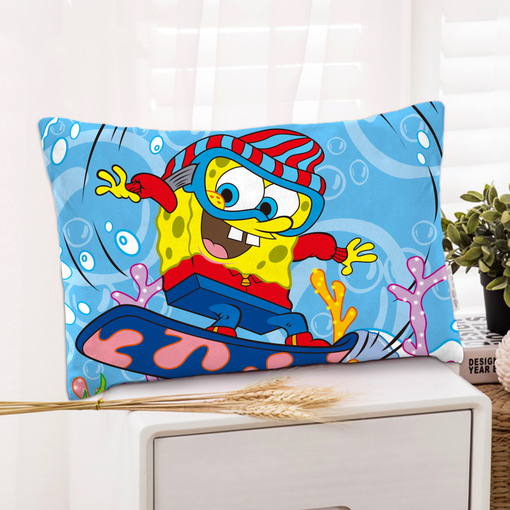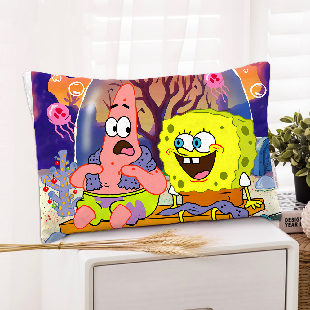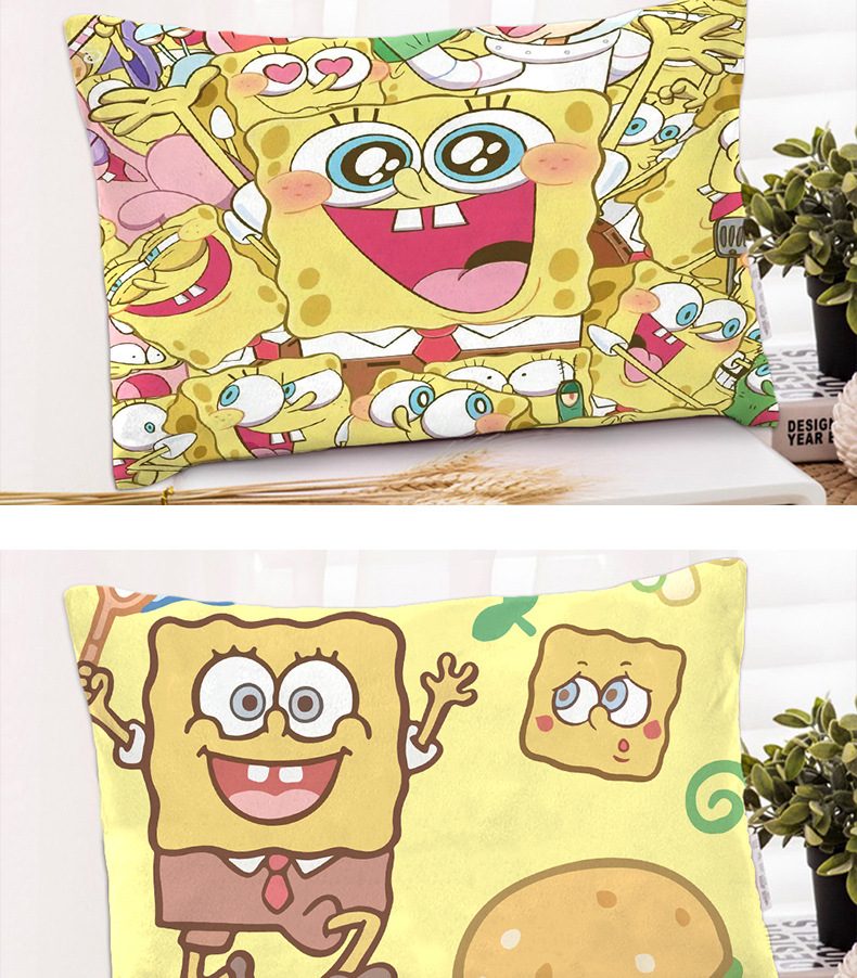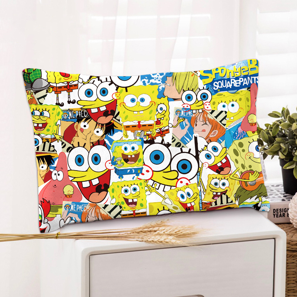 스폰지 밥 새 만화 베개 케이스 48x74 양면 피부 친화적 인 인쇄 지퍼 귀여운 어린이 베개 케이스스토어 가기