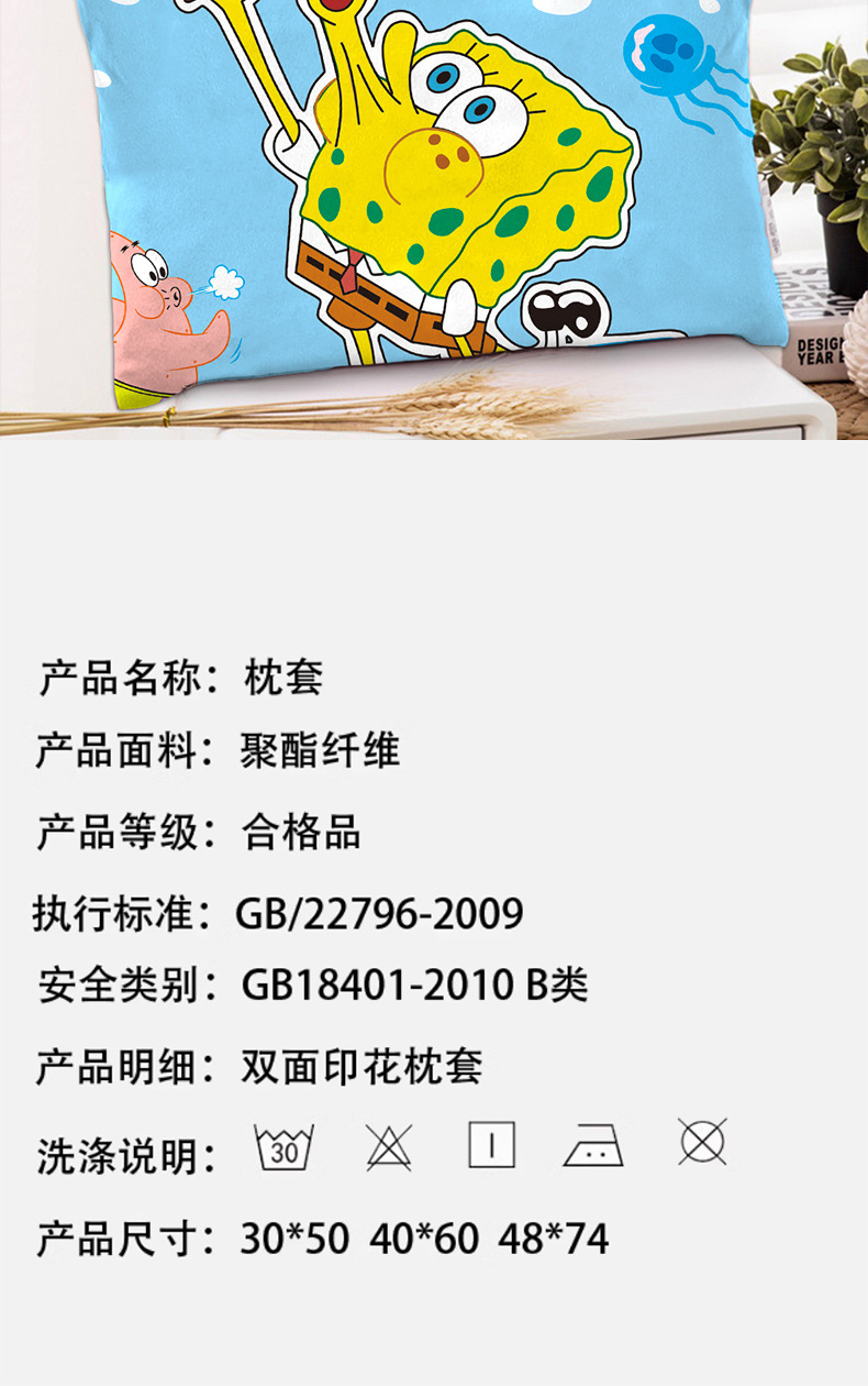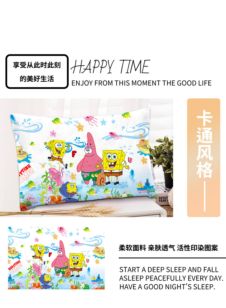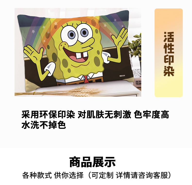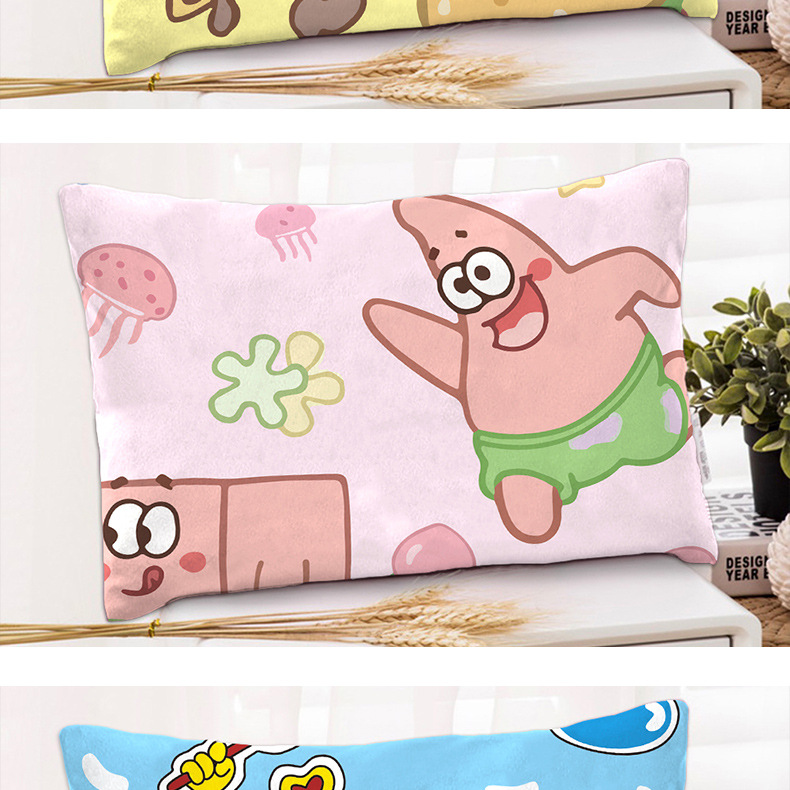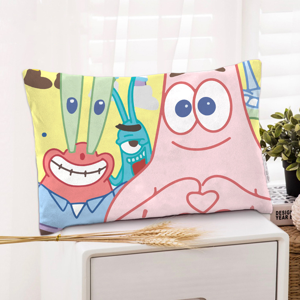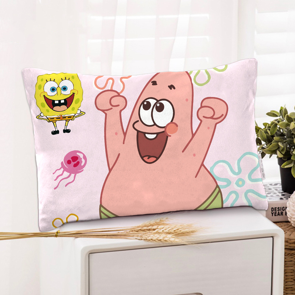 스폰지 밥 새 만화 베개 케이스 48x74 양면 피부 친화적 인 인쇄 지퍼 귀여운 어린이 베개 케이스스토어 가기