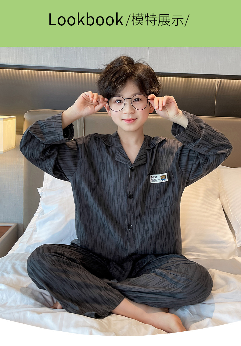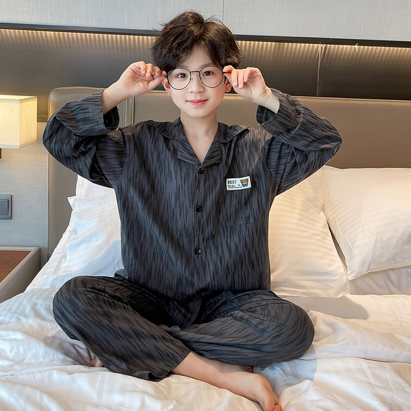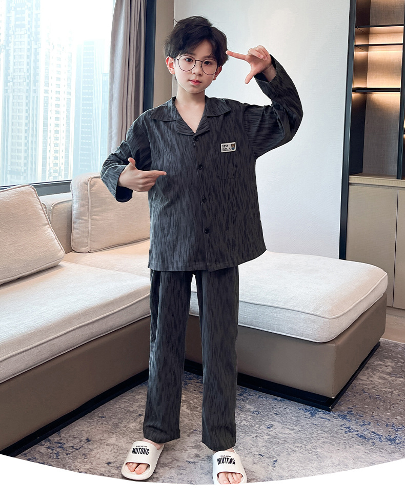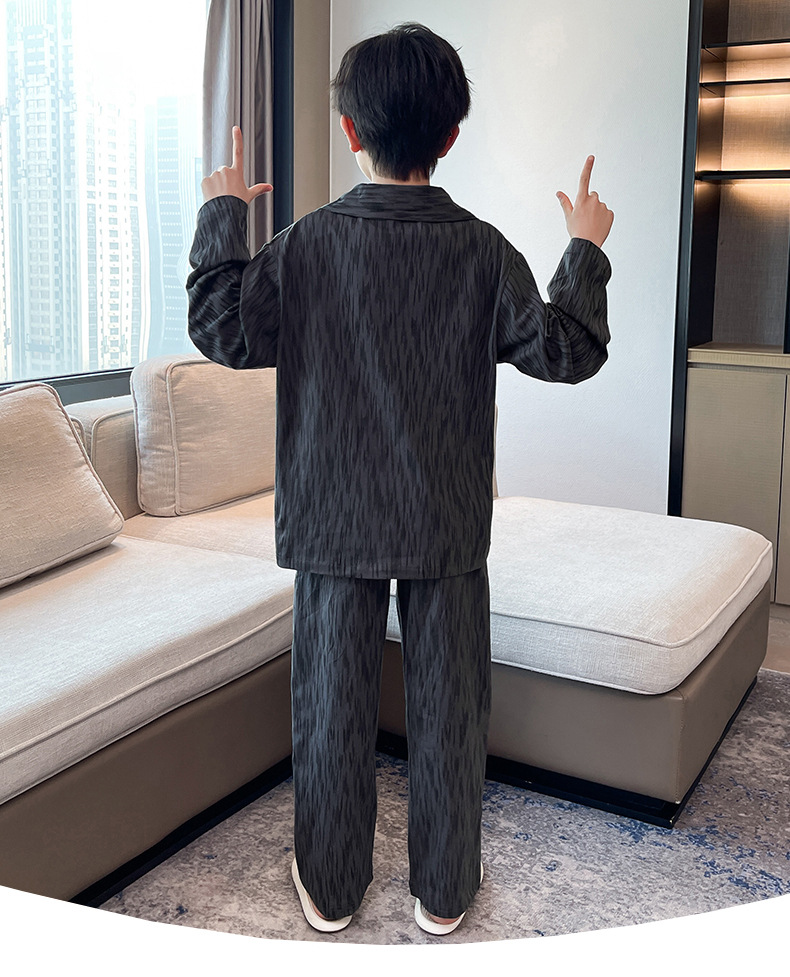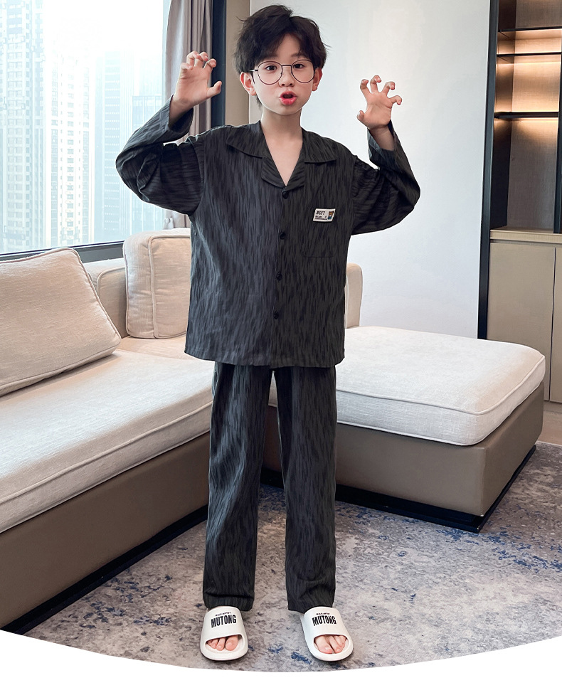 남학생 잠옷 봄과 가을 어린이 가정 옷 세트 2024 새로운 스타일 중대형 소년 캐주얼 트렌디 쿨 롱 슬리브 핸들