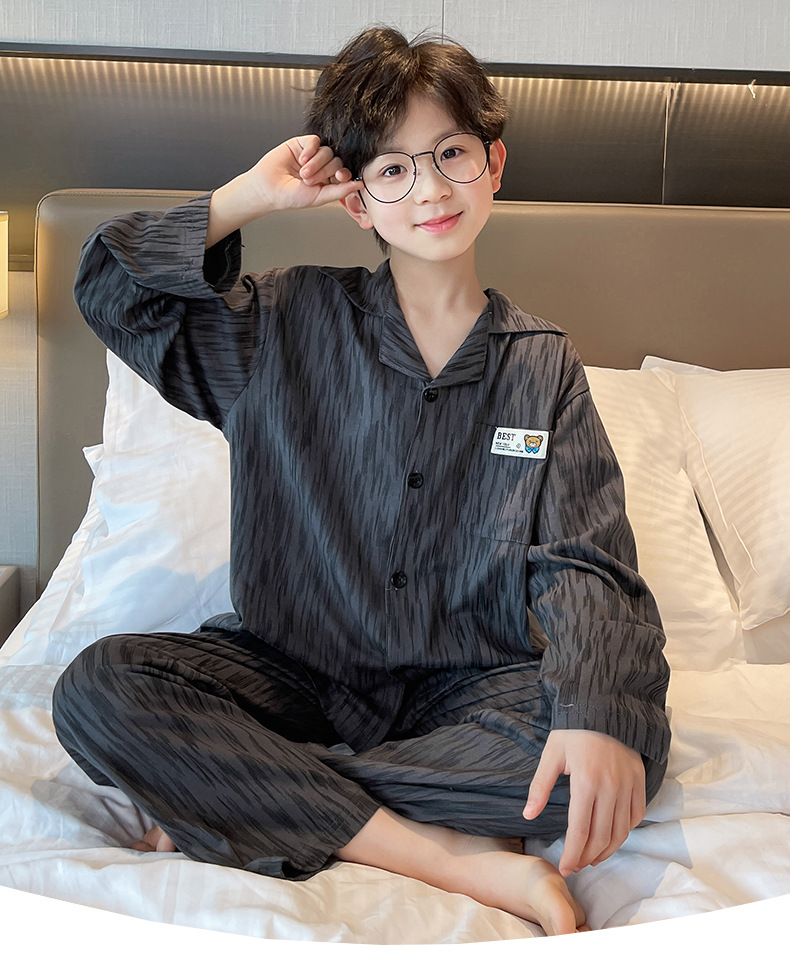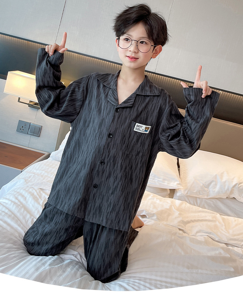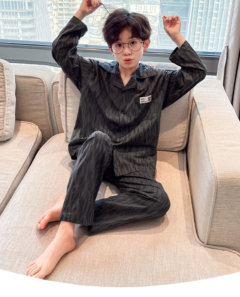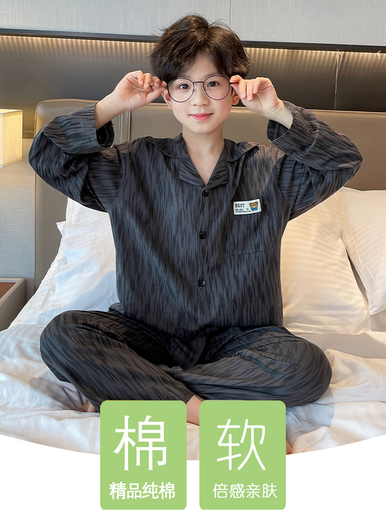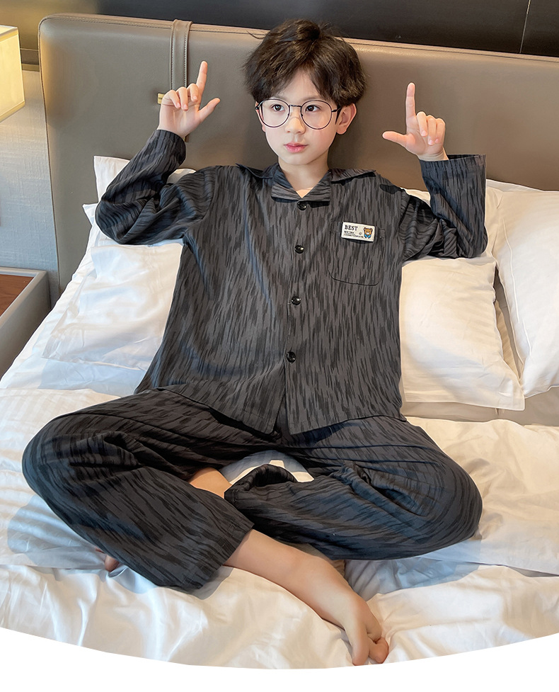 남학생 잠옷 봄과 가을 어린이 가정 옷 세트 2024 새로운 스타일 중대형 소년 캐주얼 트렌디 쿨 롱 슬리브 핸들