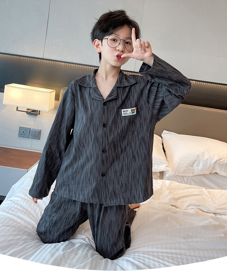 남학생 잠옷 봄과 가을 어린이 가정 옷 세트 2024 새로운 스타일 중대형 소년 캐주얼 트렌디 쿨 롱 슬리브 핸들스토어 가기