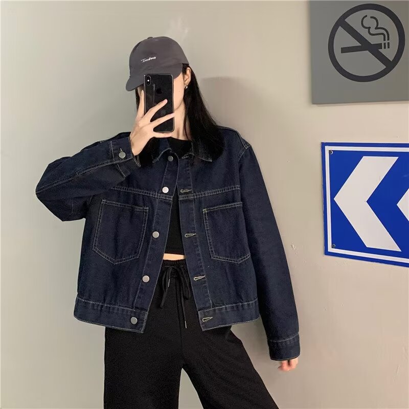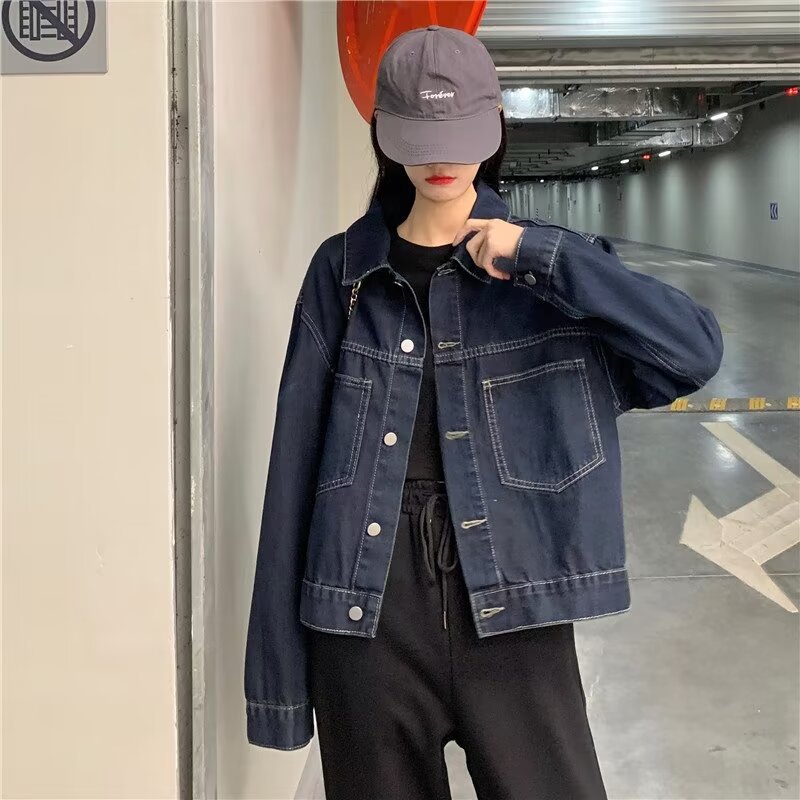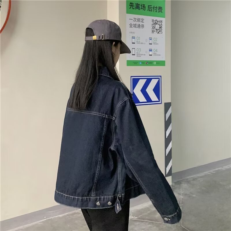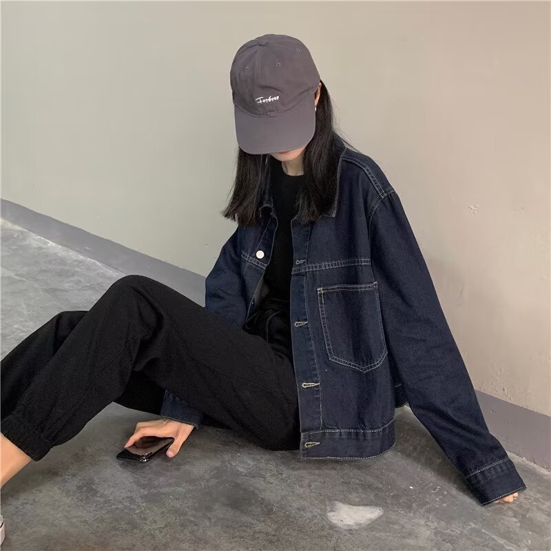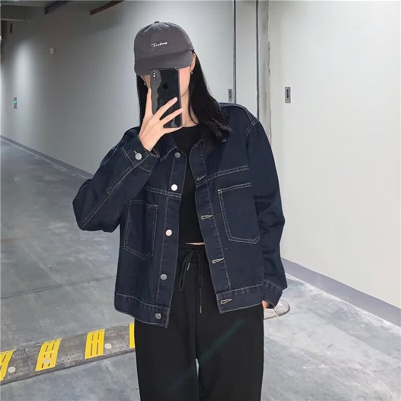 플러스 사이즈 빈티지 다크 블루 데님 재킷 여성 통통녀 가을 신간 한국 느슨한 긴팔 재킷 탑스토어 가기