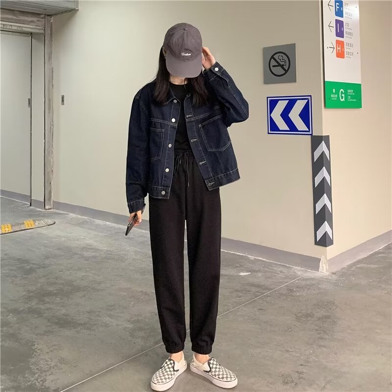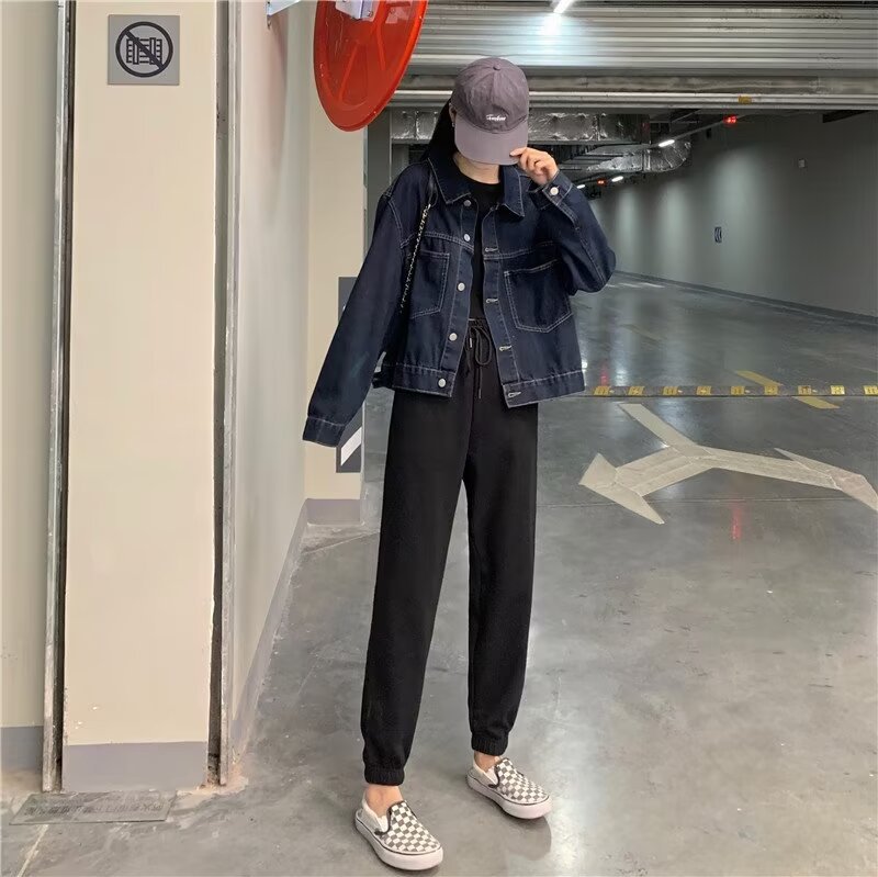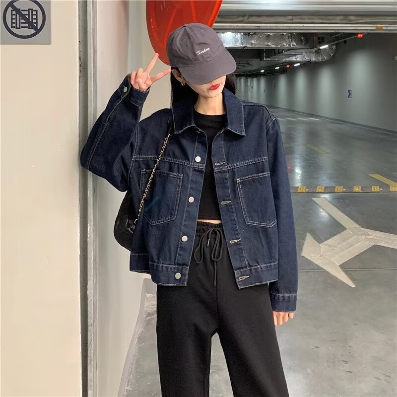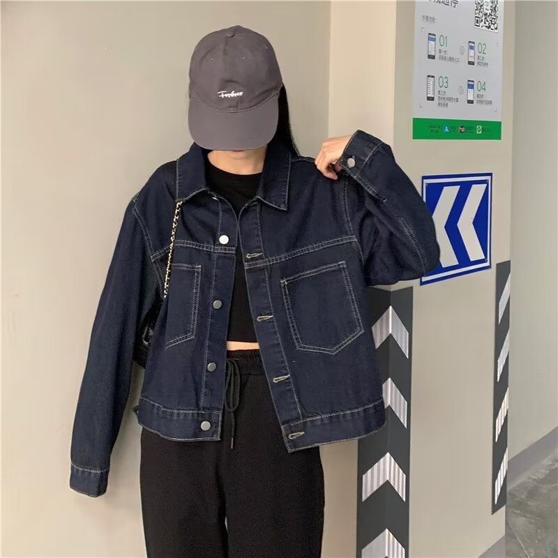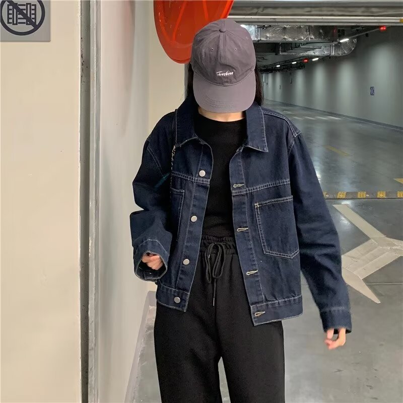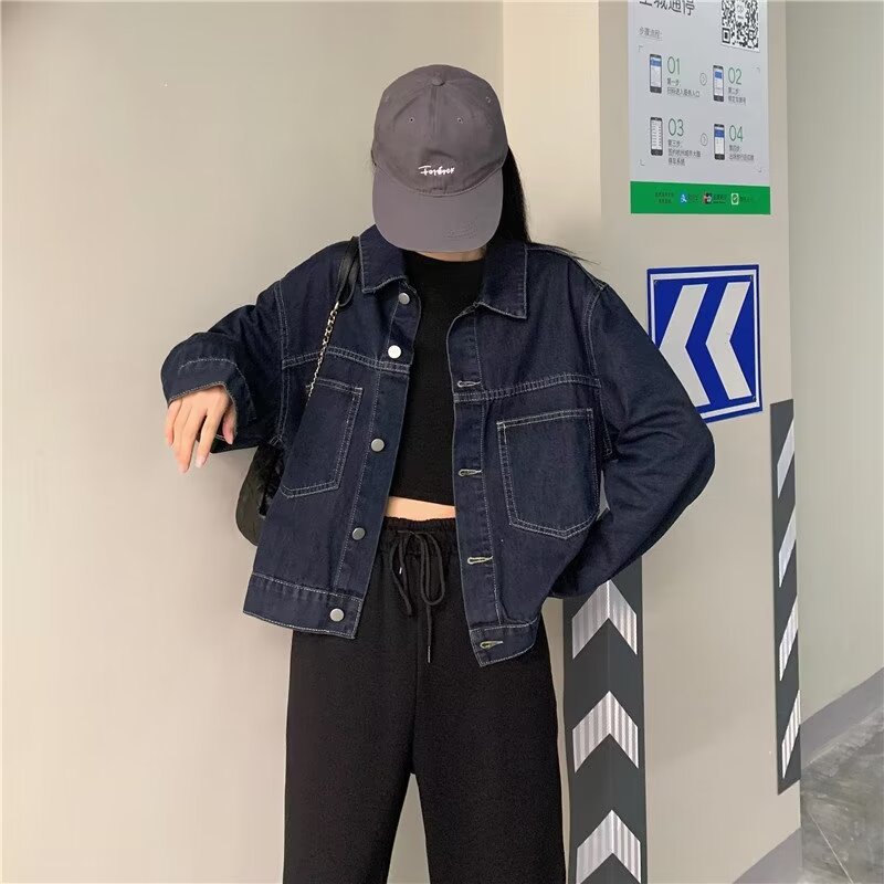 플러스 사이즈 빈티지 다크 블루 데님 재킷 여성 통통녀 가을 신간 한국 느슨한 긴팔 재킷 탑스토어 가기