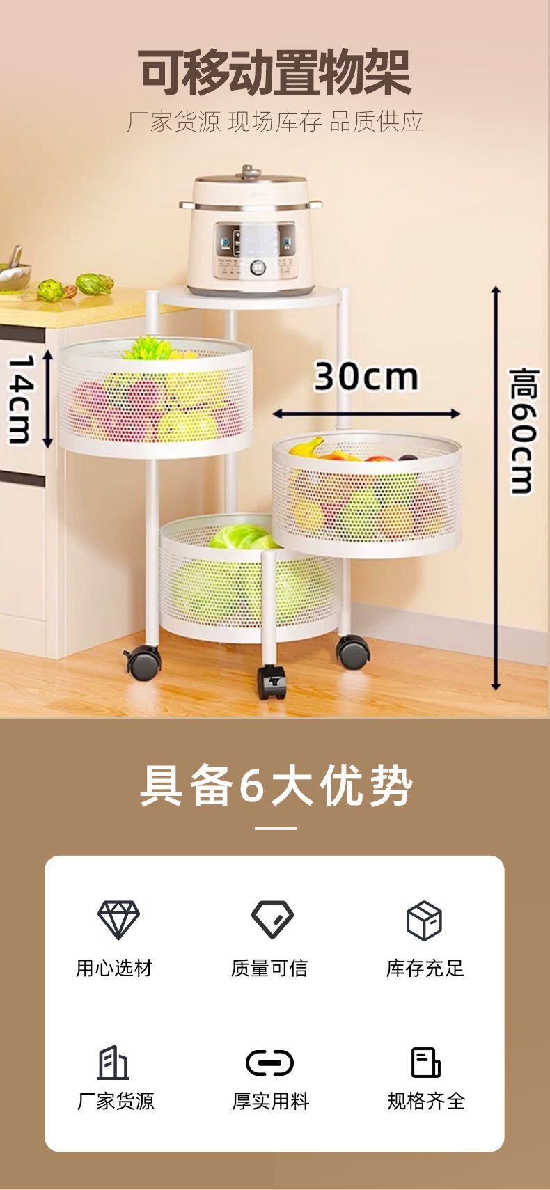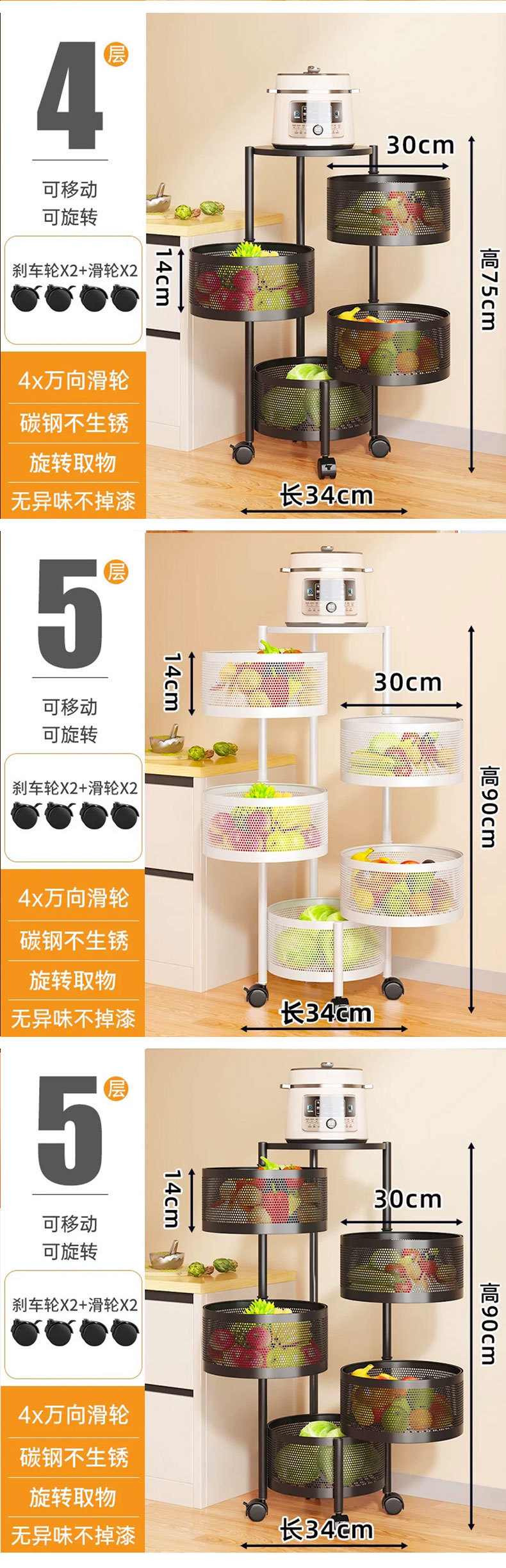 회전 가능한 설치 무료 자기 흡입 바닥 주방 랙 재고 가정용 멀티 레이어 야채 랙