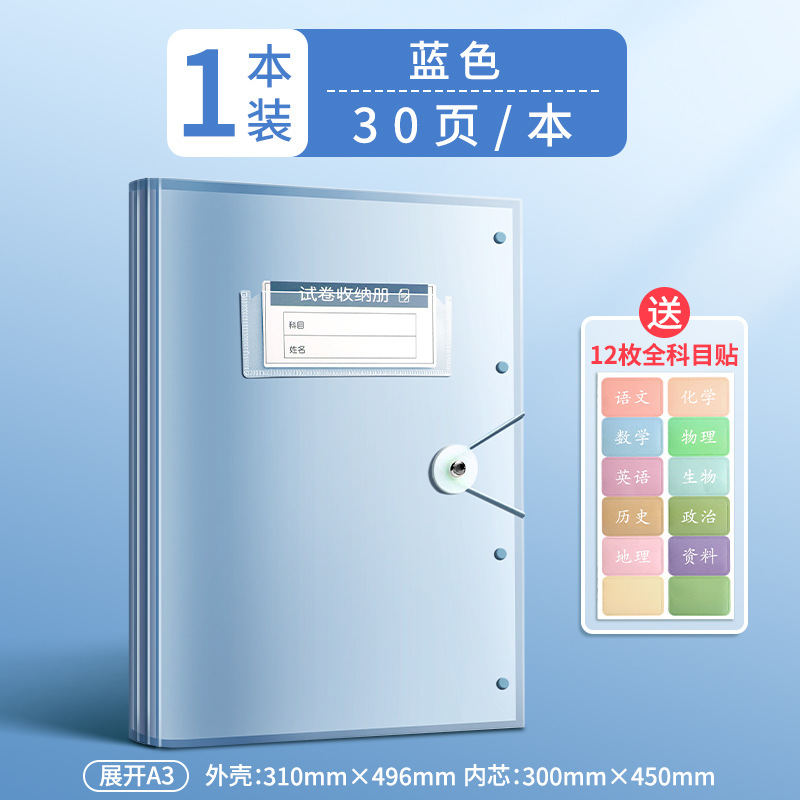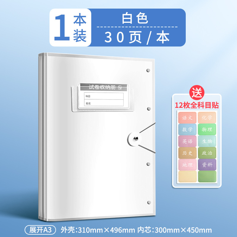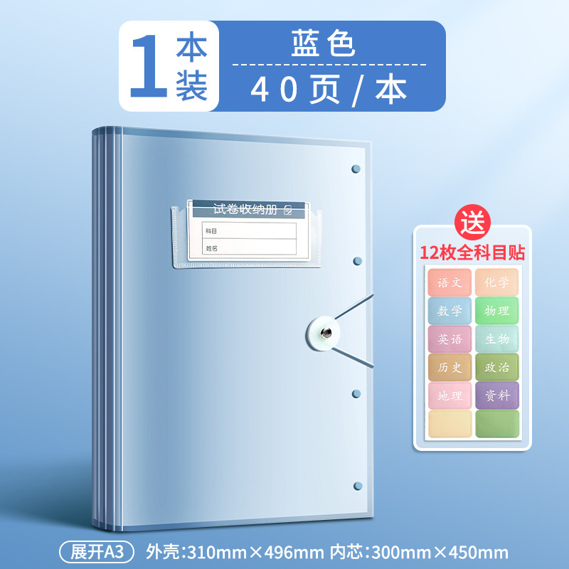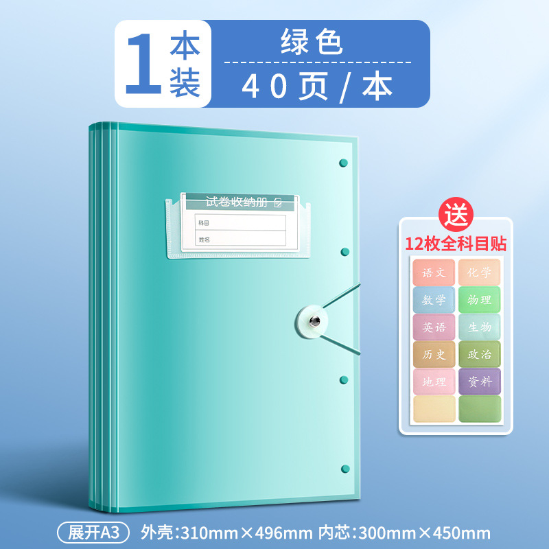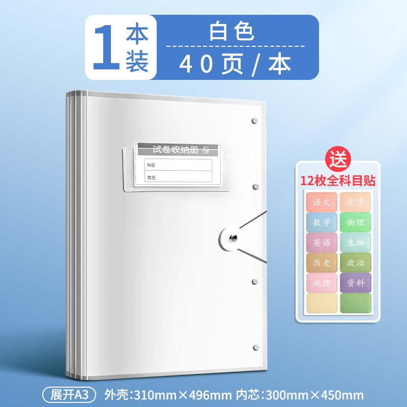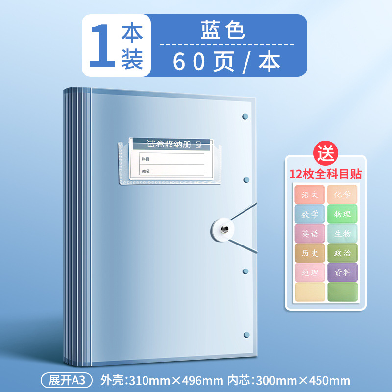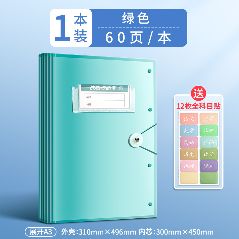 시험 용지 저장 폴더 A3 가방 60 페이지 초등학생 조기 완료 고등학교 대용량 주제 분류 생성