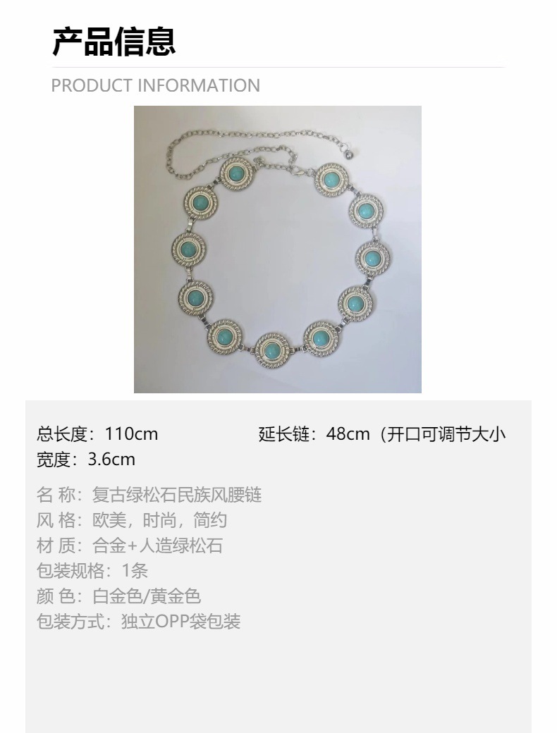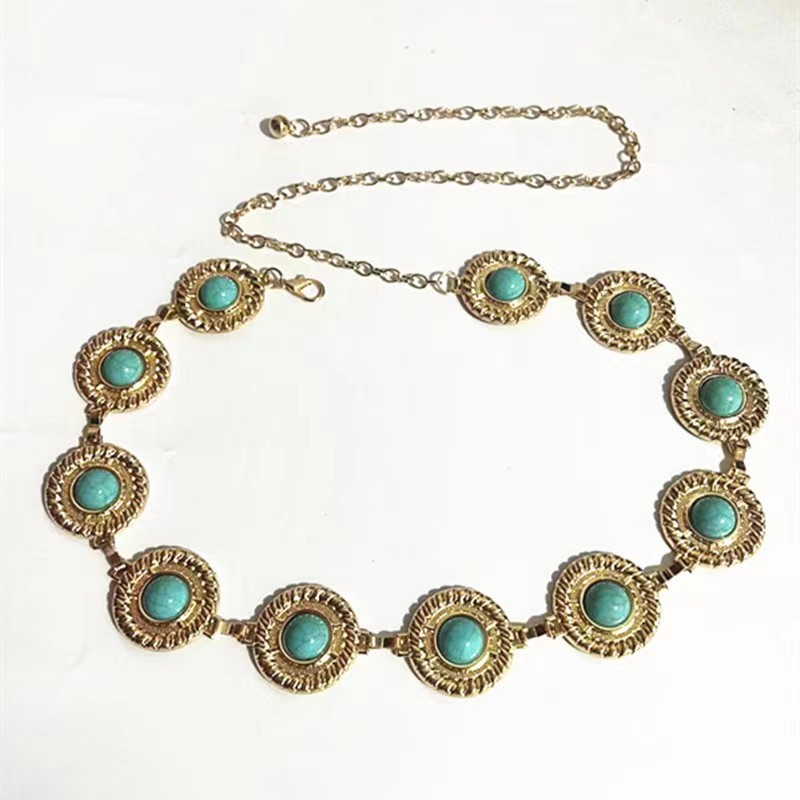 국경 간 레트로 청록색 허리 체인 조각 민족 스타일 장식 원피스 스커트 유럽과 미국의 올 매치 메탈 벨트스토어 가기