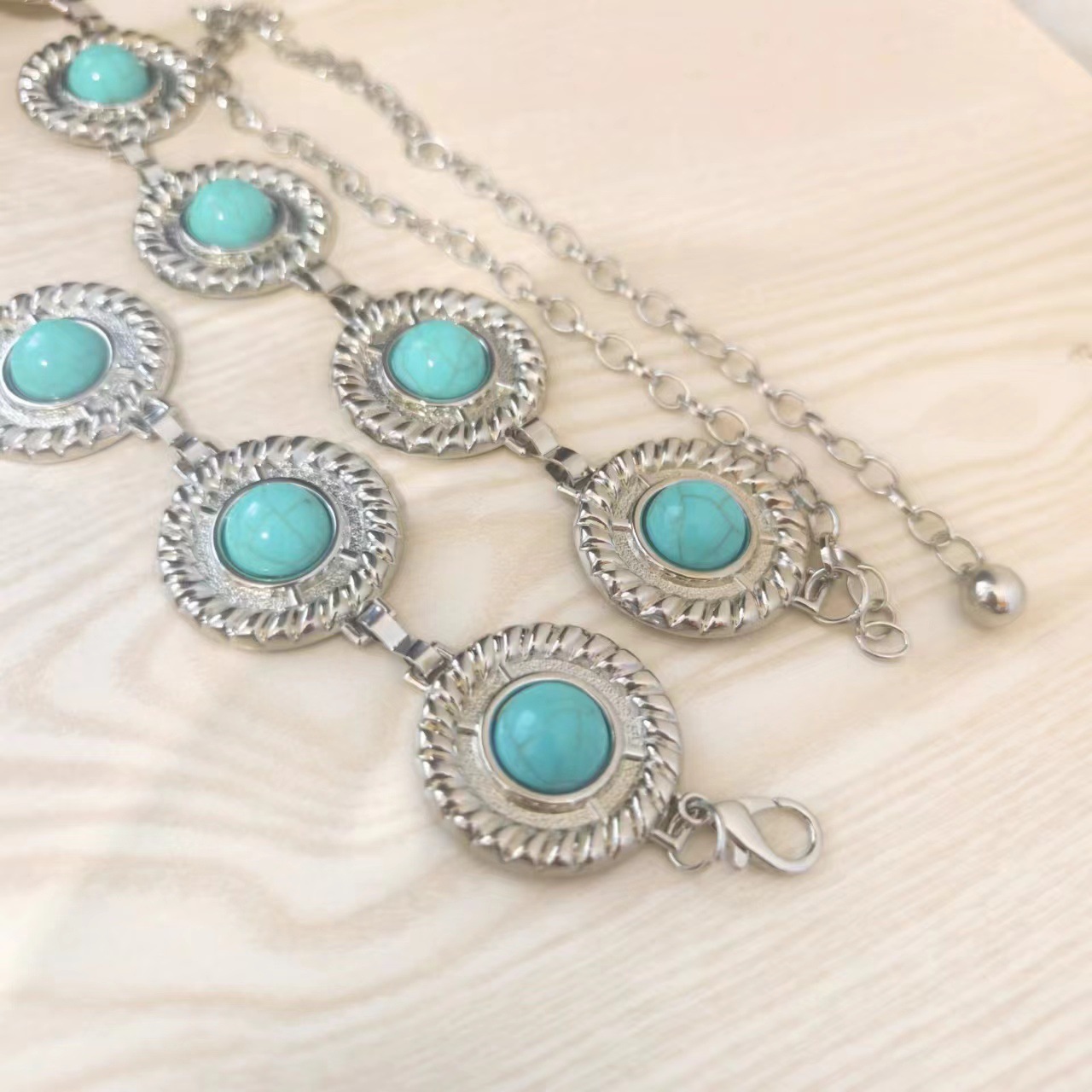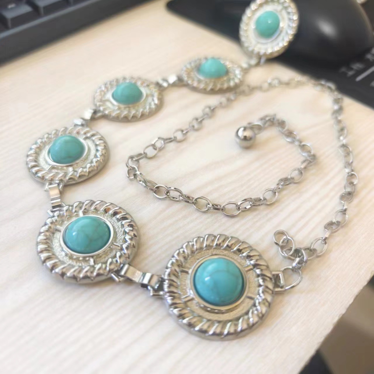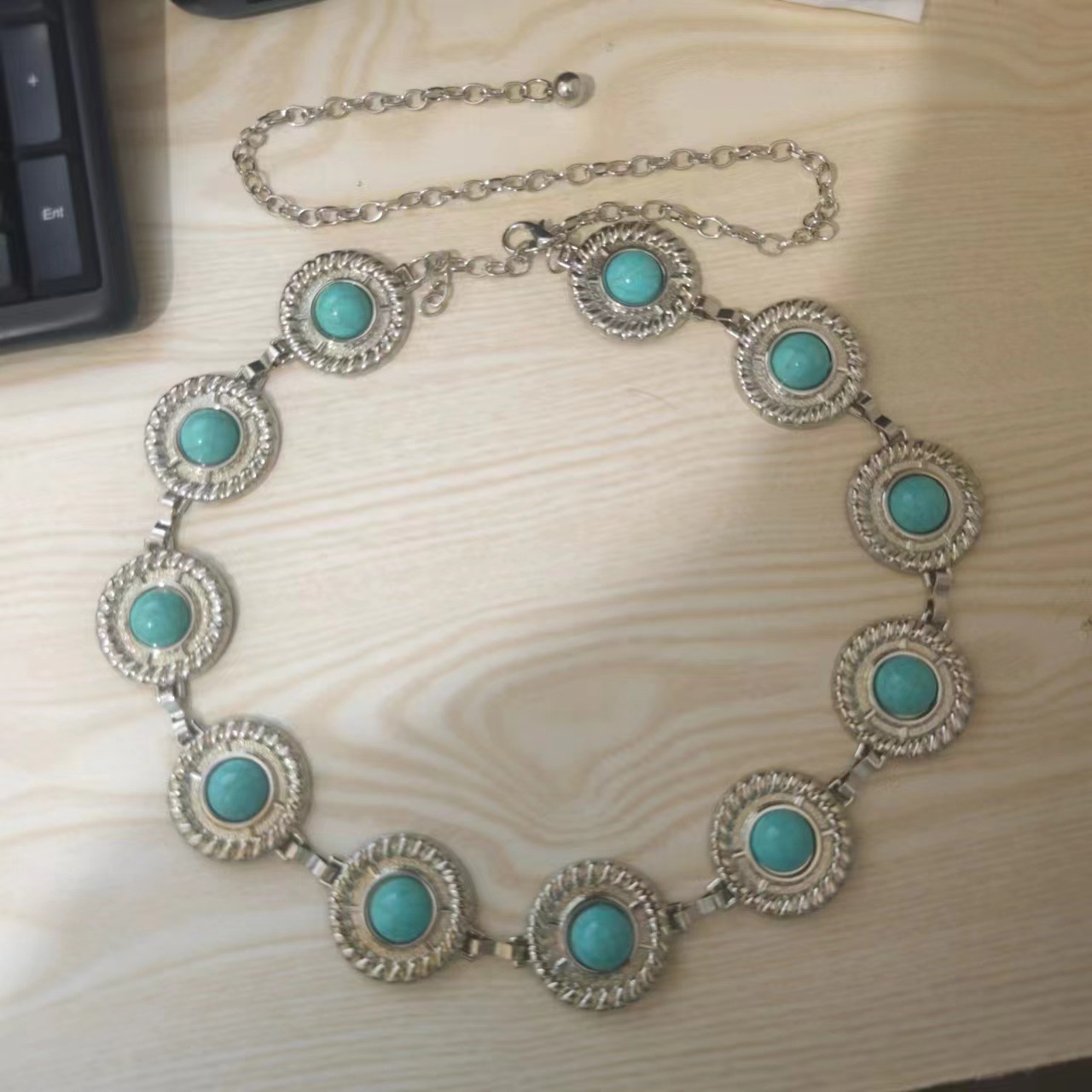 국경 간 레트로 청록색 허리 체인 조각 민족 스타일 장식 원피스 스커트 유럽과 미국의 올 매치 메탈 벨트