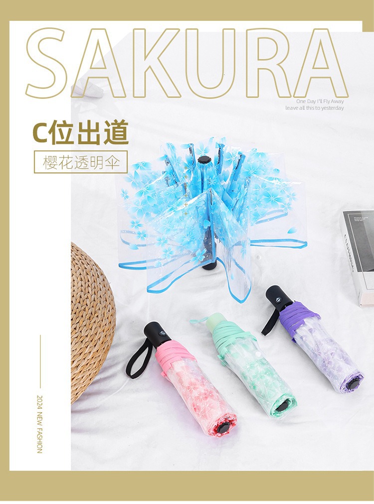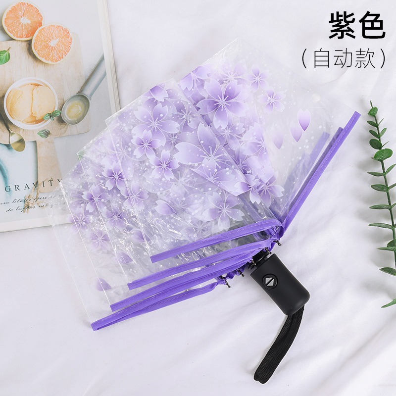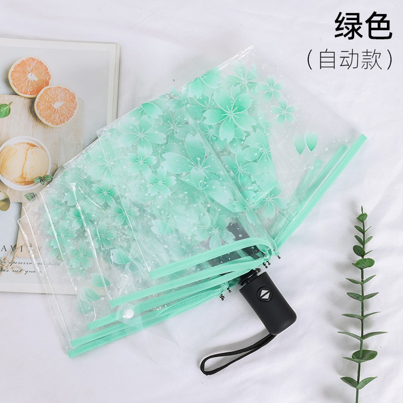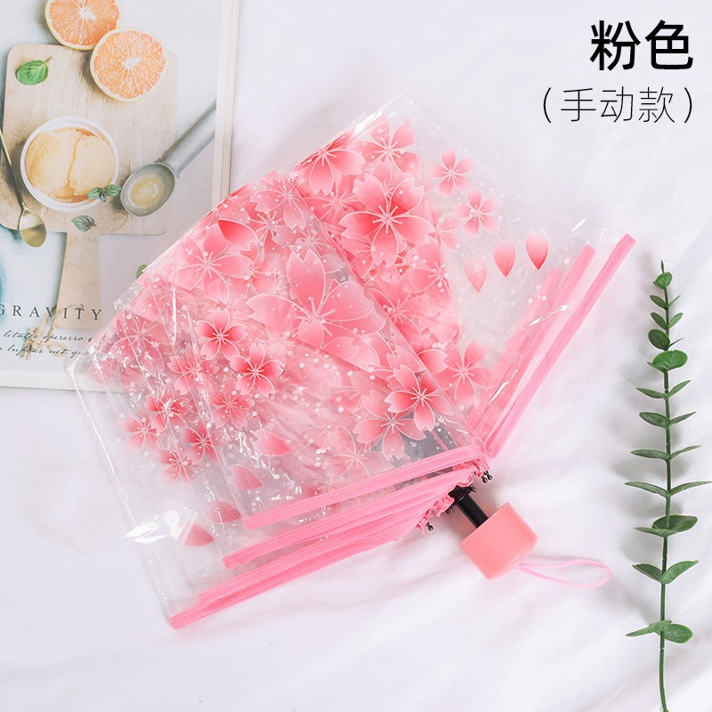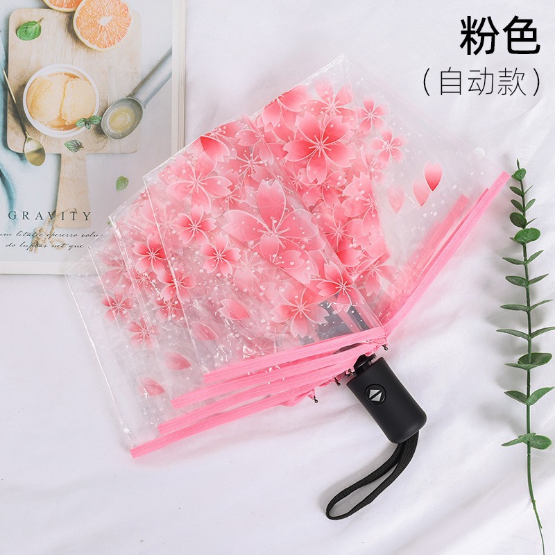 벚꽃 투명 여신 부드러운 자매 3 배 접는 우산 자동 우산 소녀 심장 재고 도매스토어 가기