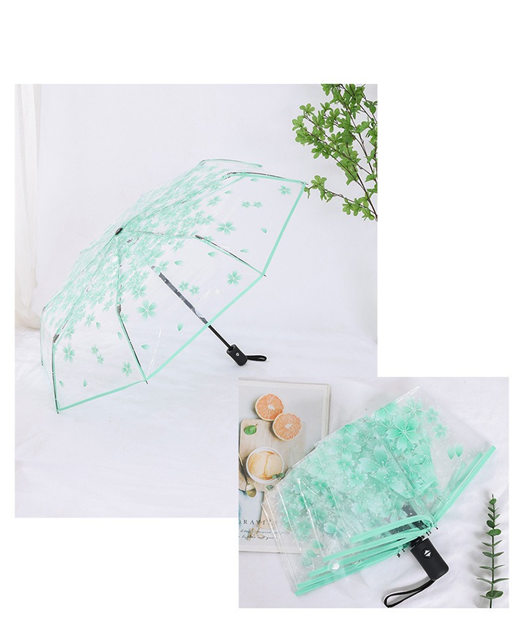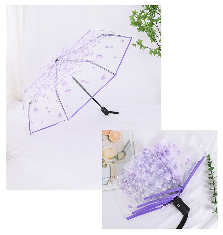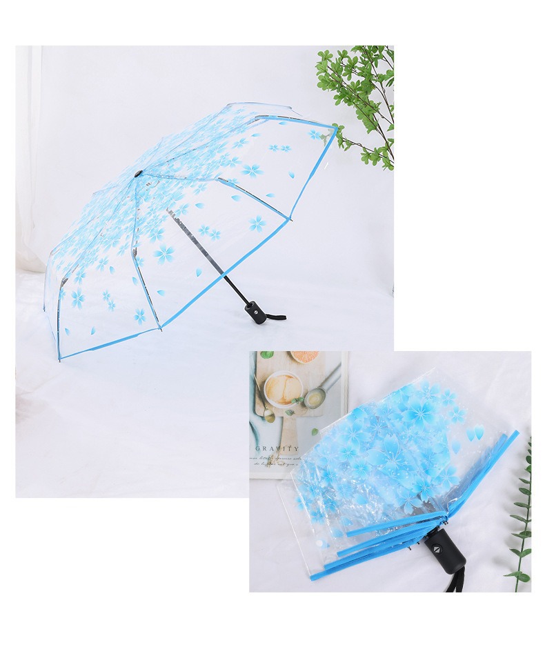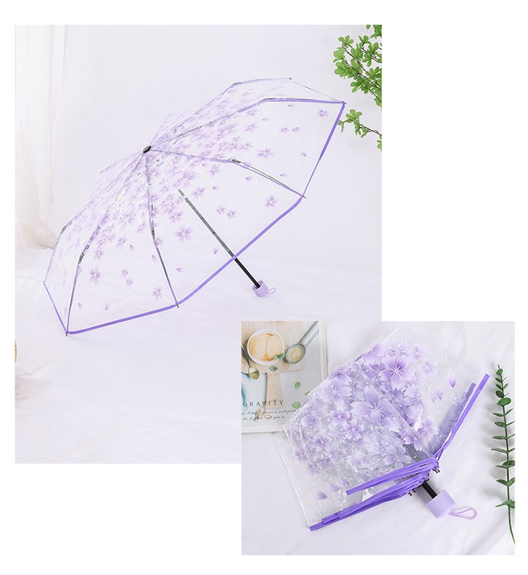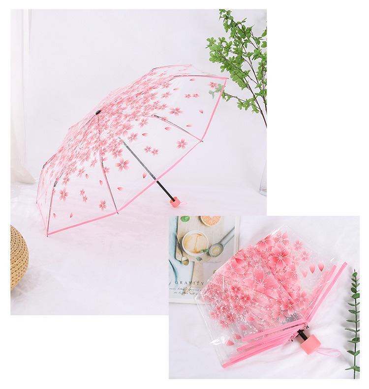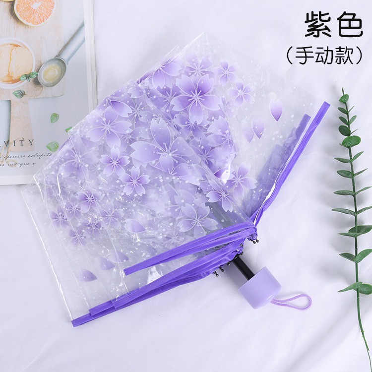 벚꽃 투명 여신 부드러운 자매 3 배 접는 우산 자동 우산 소녀 심장 재고 도매스토어 가기