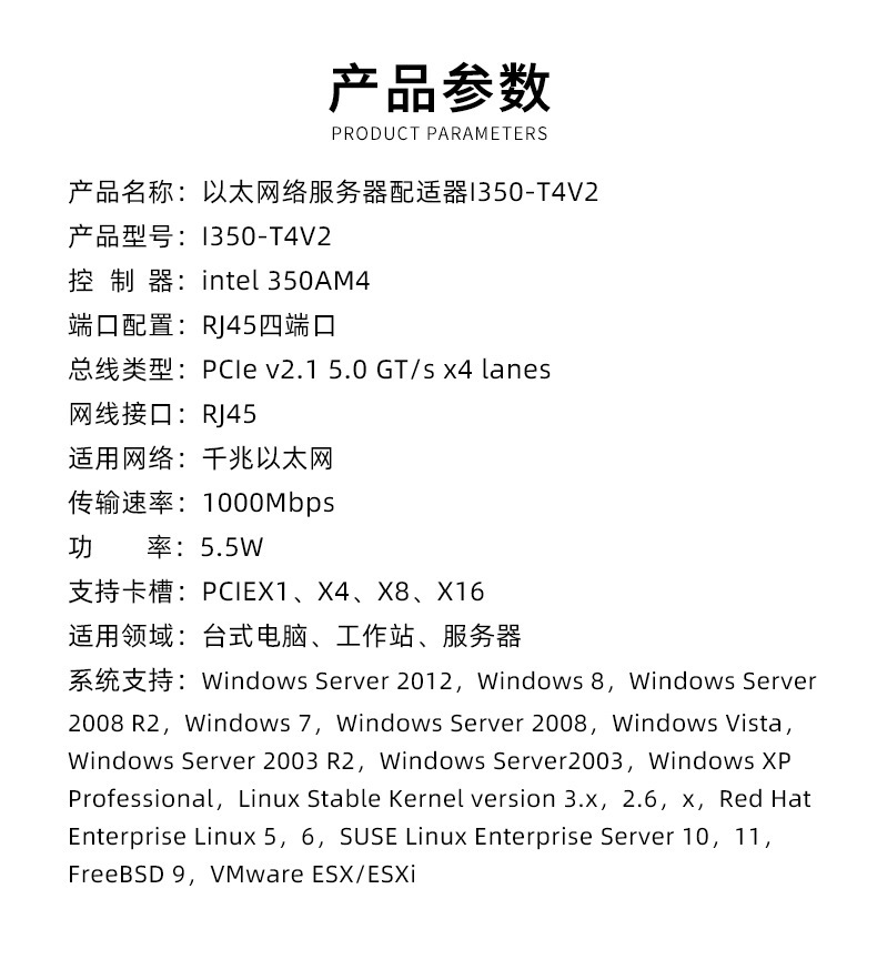 PCI-E4X 서버 4 포트 2 포트 기가비트 네트워크 카드 i350t4 컴퓨터 데스크톱 이더넷 소프트 라우팅
