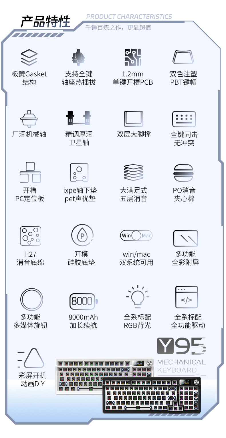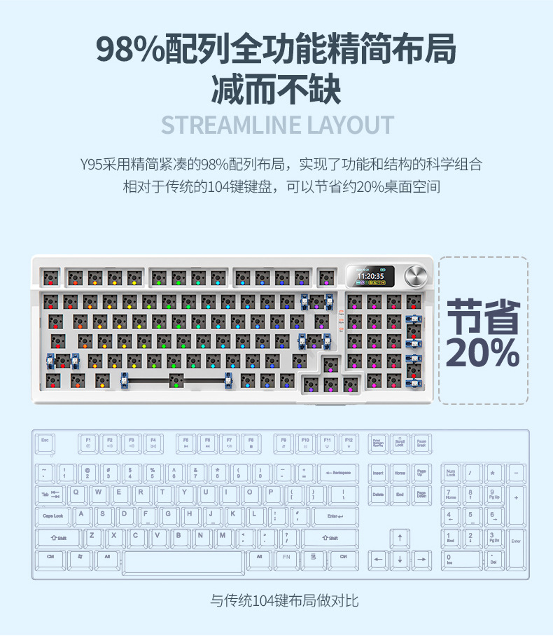 실버 조각 Y95 RGB 유선 게임 개스킷 키트와 맞춤형 무선 블루투스 3 모드 기계식 키보드 98스토어 가기