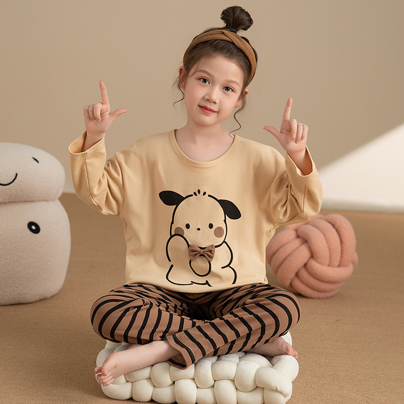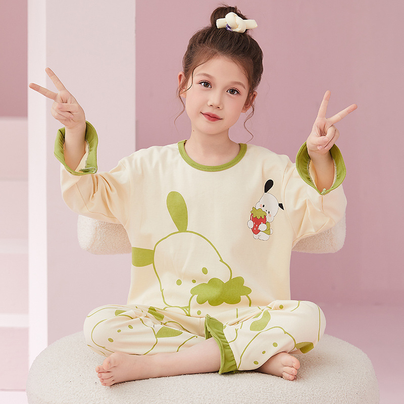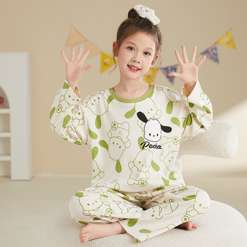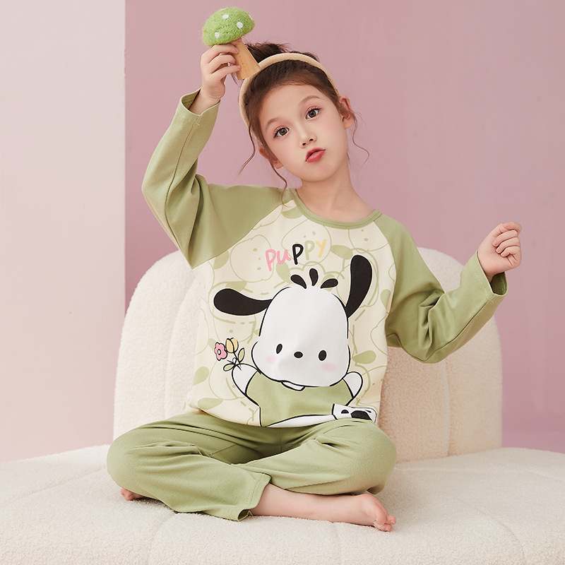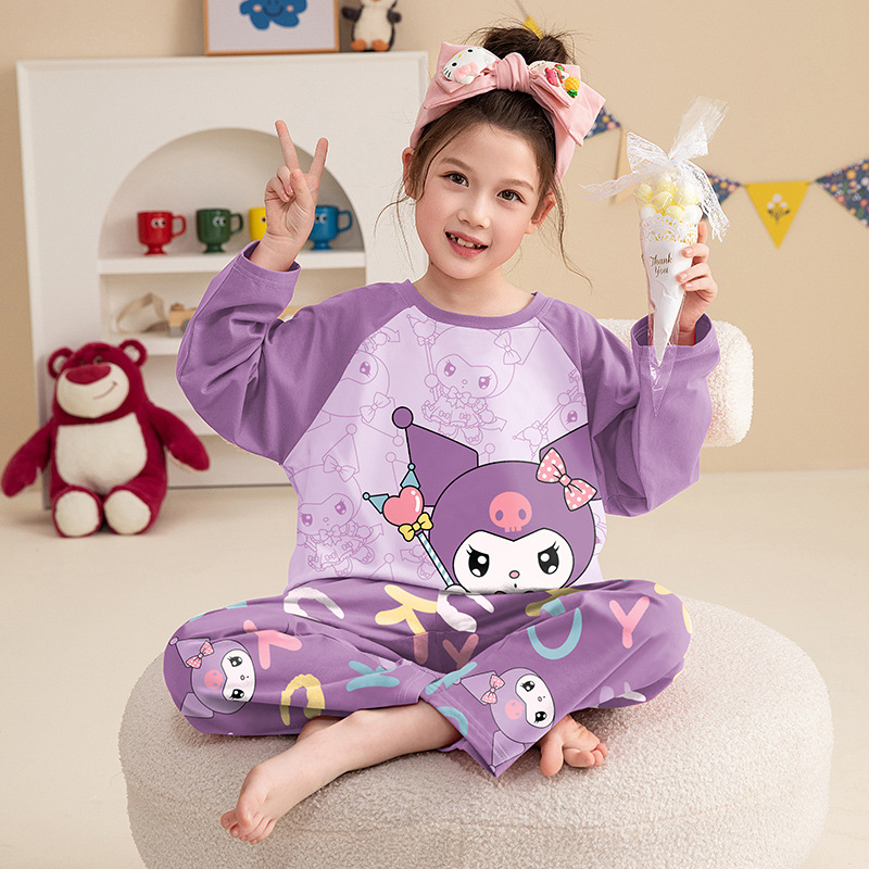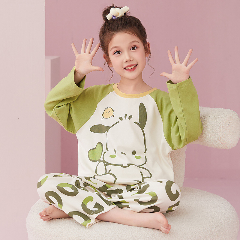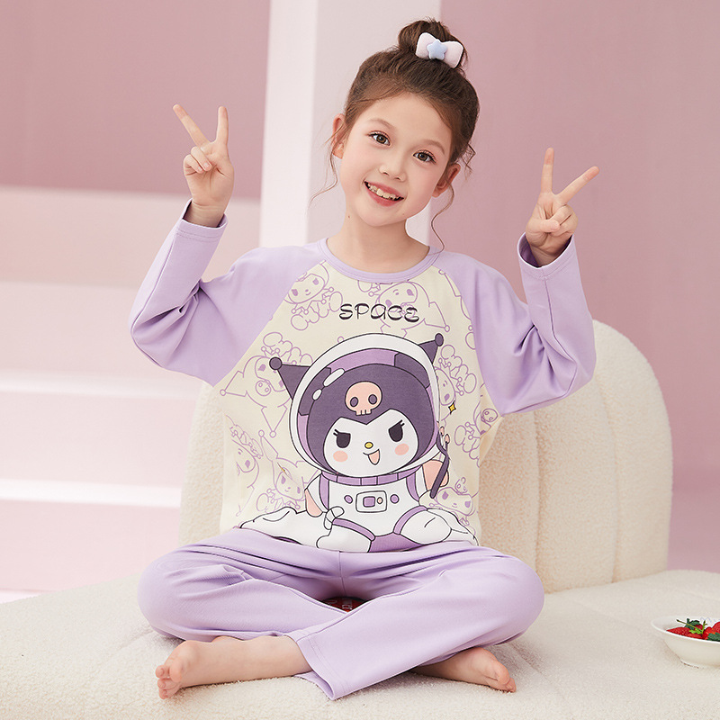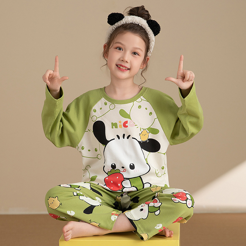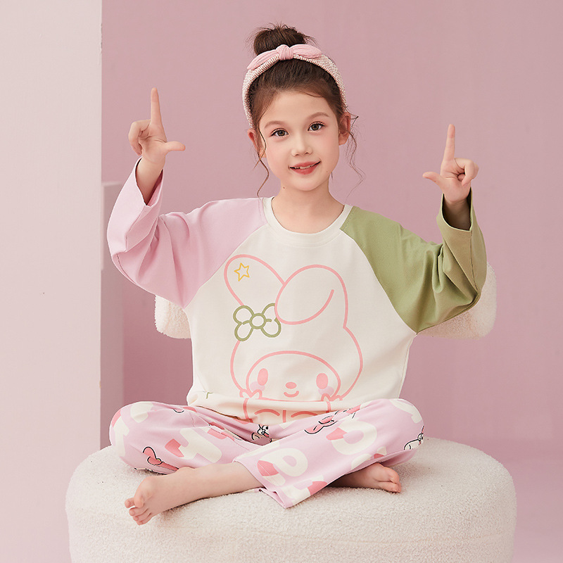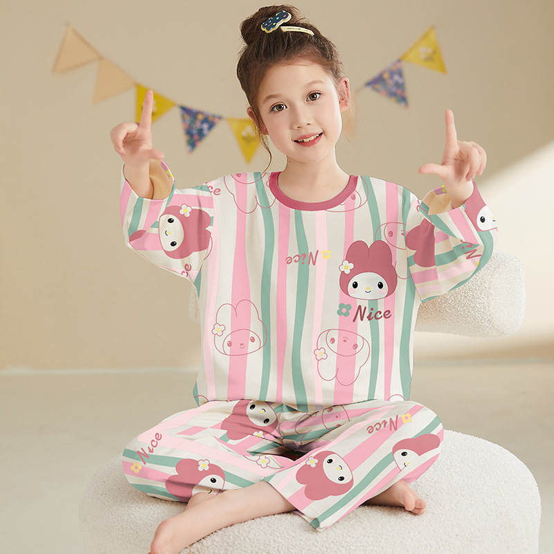 소녀 잠옷 2024 봄과 가을면 긴 소매 아기 소녀 귀여운 인터넷 축하 만화 세트 어린이 홈 옷스토어 가기