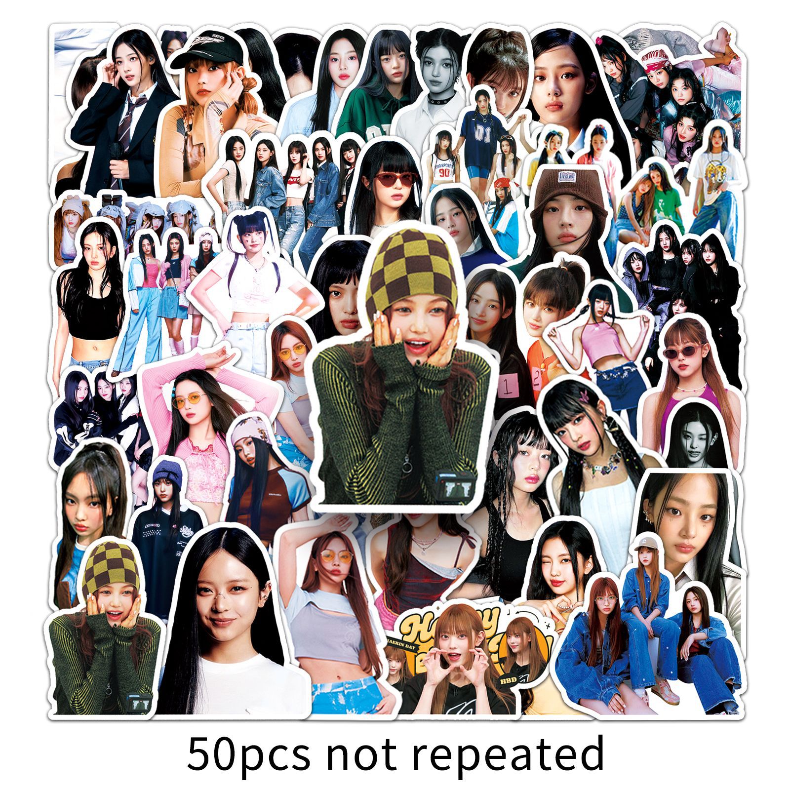 50 개의 새로운 청바지 스티커 한국 여성 그룹 스타는 주변 방수 장식 휴대 전화 케이스 컵 스티커를 도와야합니다.